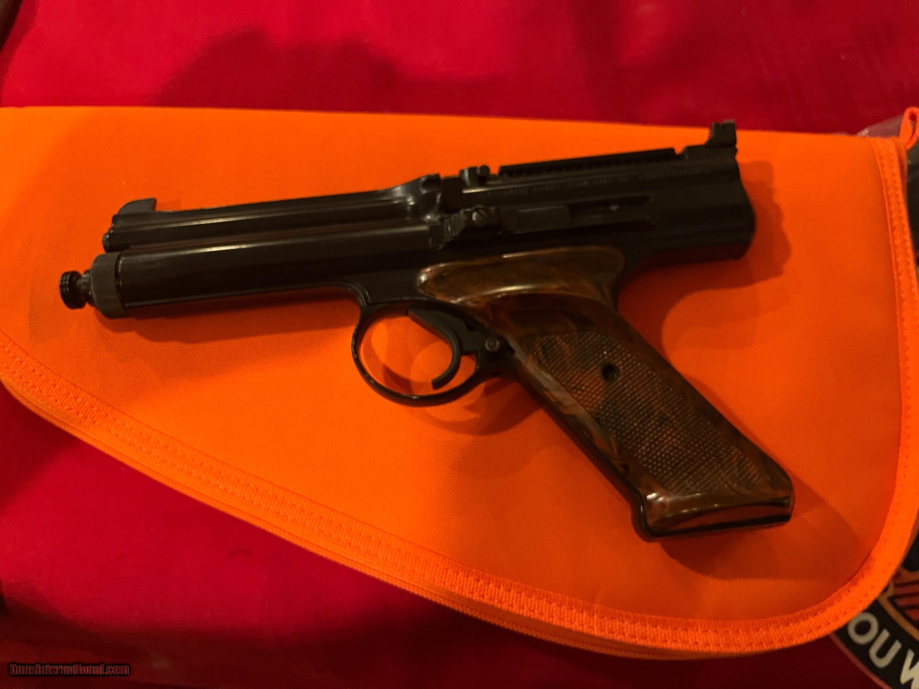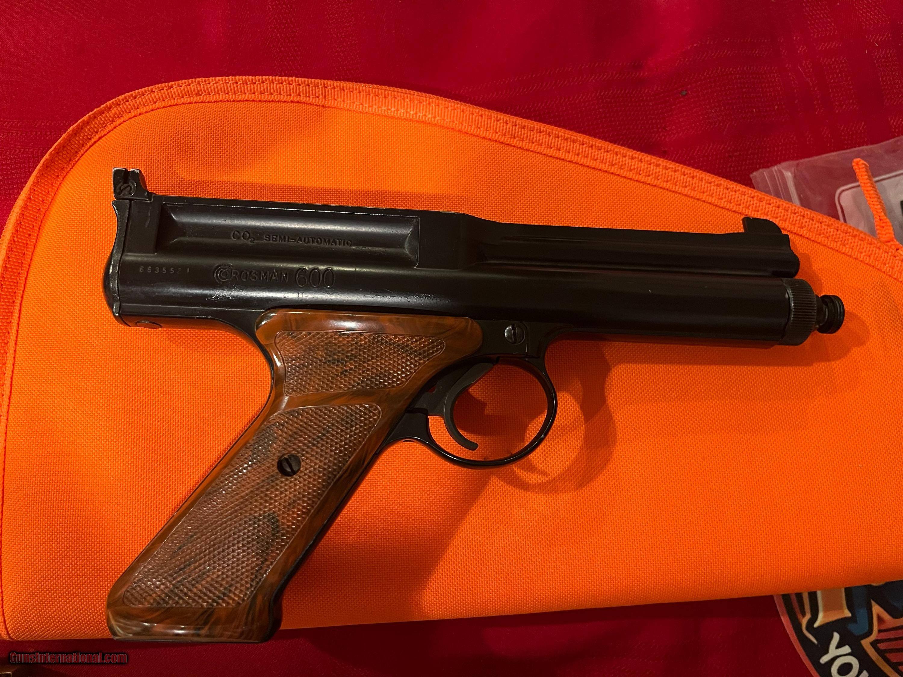 Description: 22 caliber Crosman 600 air pistol. Fully functional. Good seals. 10 shot repeater.Good cosmetics. NO FFL. SOLD |