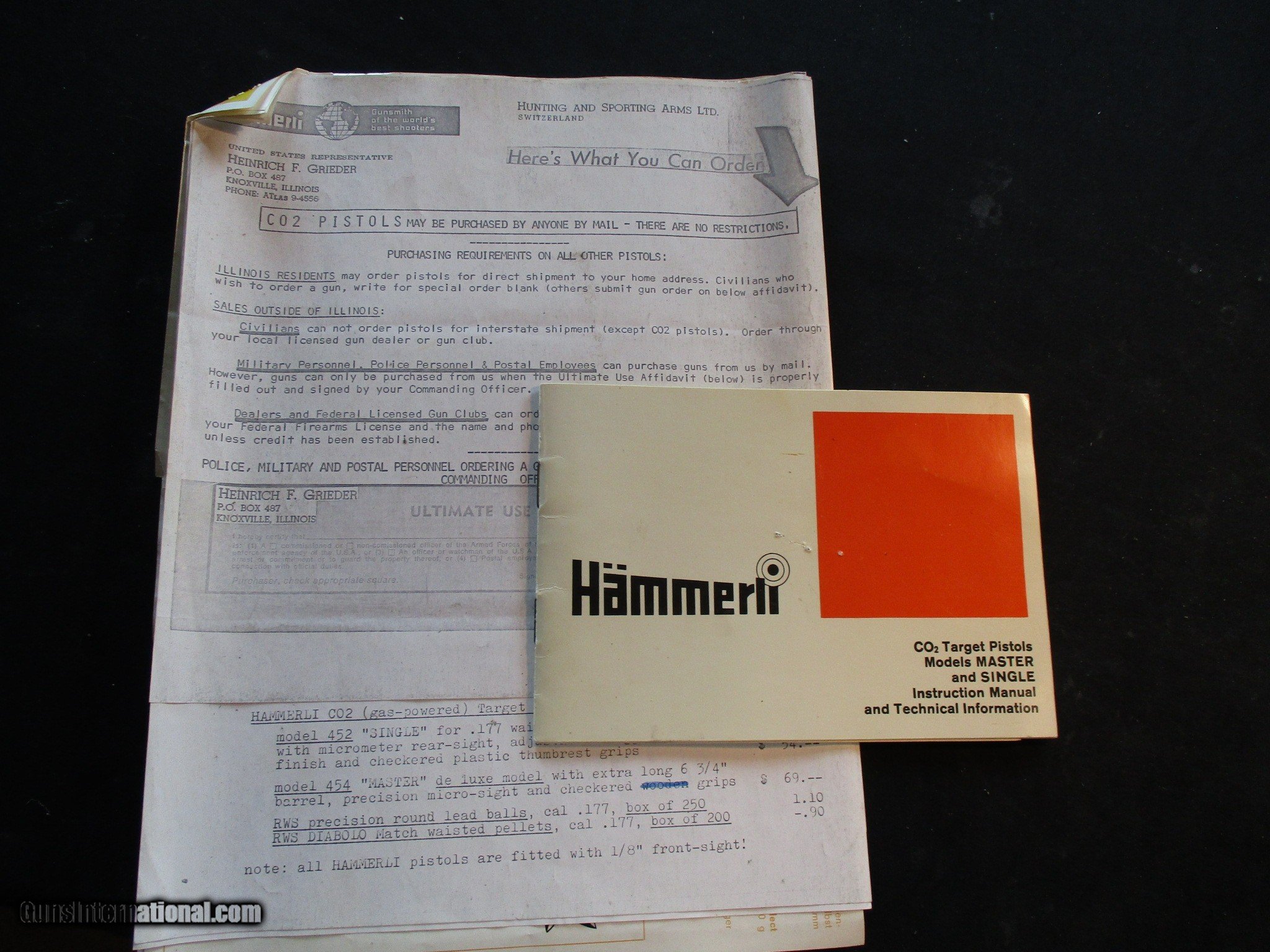 Description: Hammerli Single, .177, used air pistol, in the factory box with some CO2 cylinders! $15 Shiping in the USA. No FFL requried. SOLD |