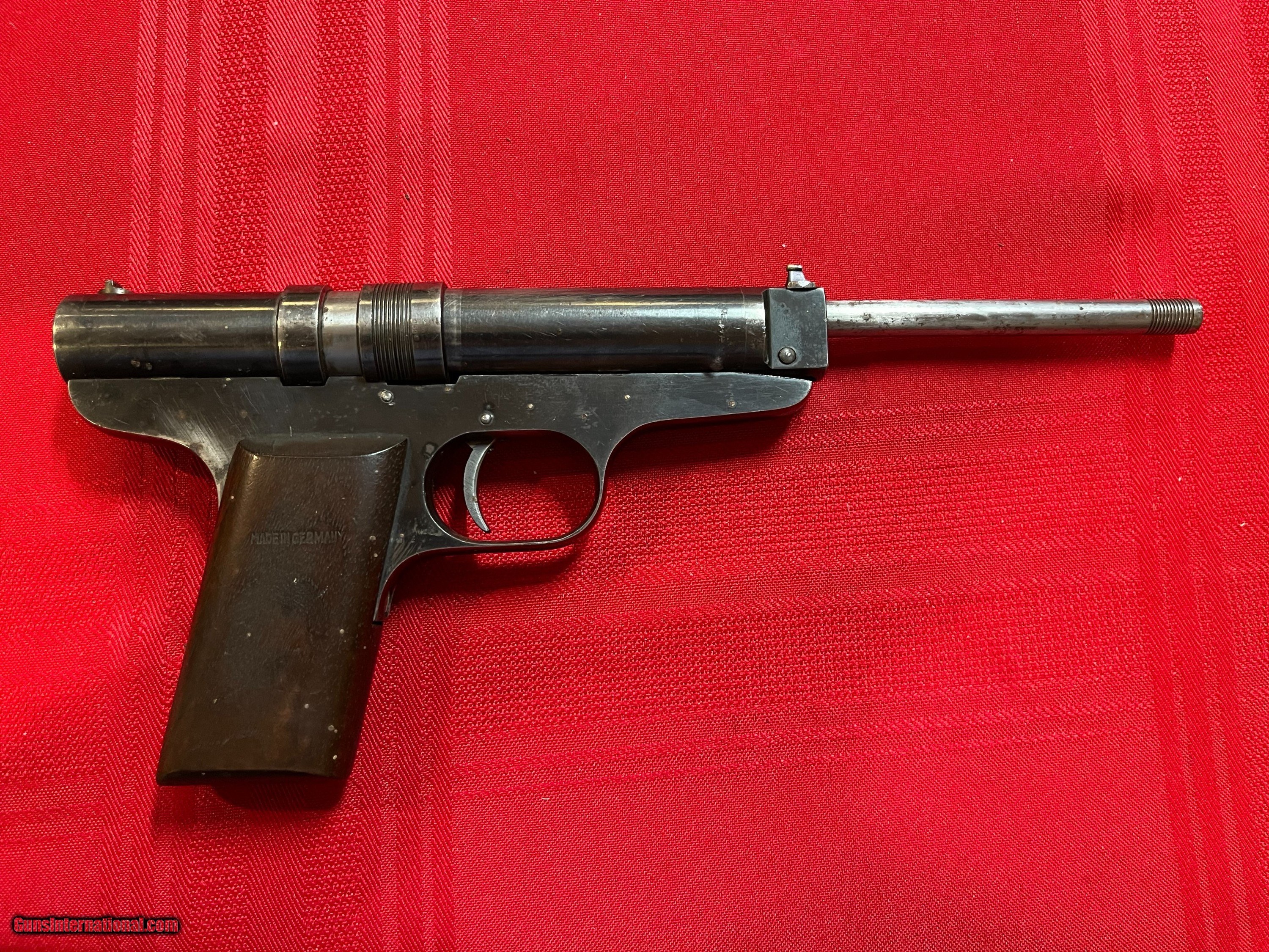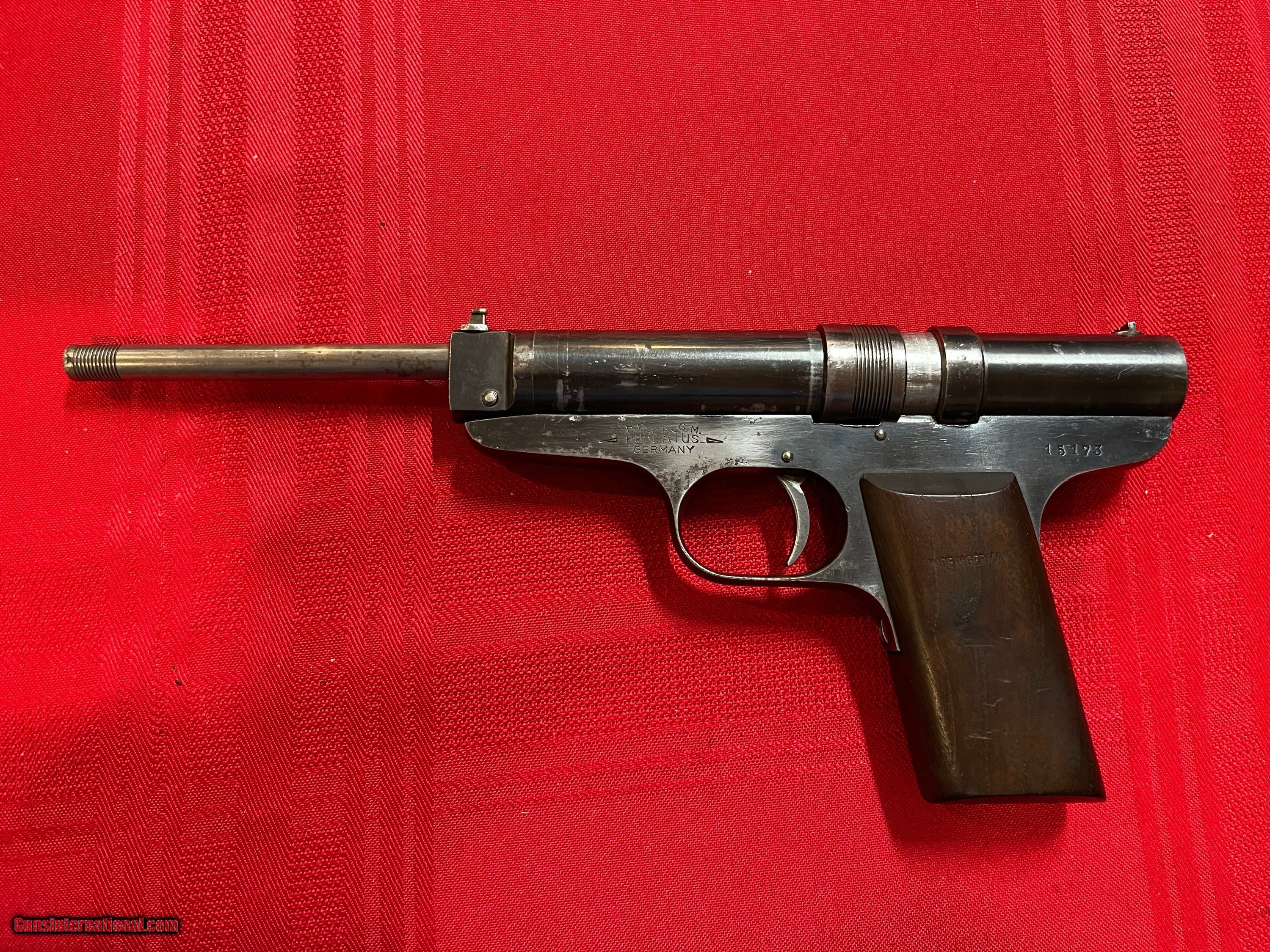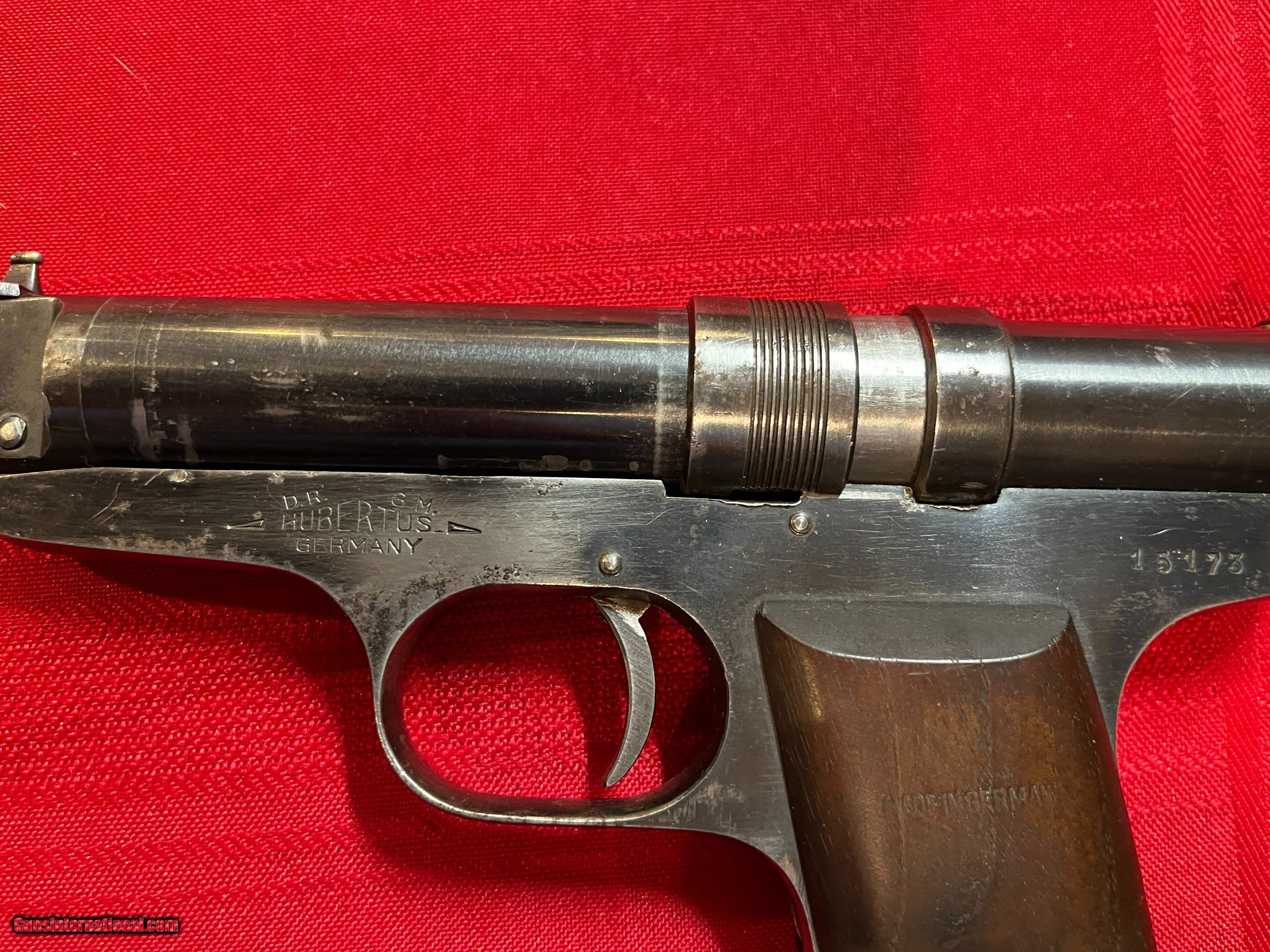 Description: Functioning Hubertus 177 caliber air pistol. Very nice wooden grips. Some blue wear.Made between wars. SOLD |