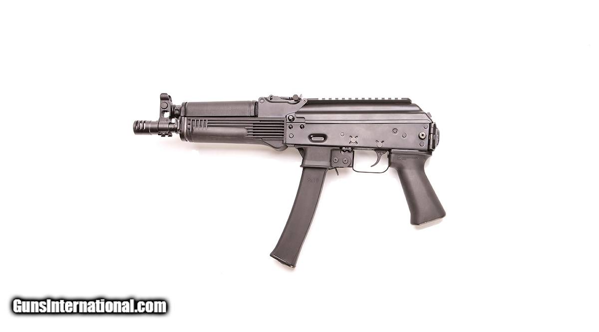 Description: Guns Listing ID: 51004 The KP-9 is a U.S. manufactured 9mm semi-automatic AK style pistol. It is based on the Russian Vityaz-SN submachine gun, has a 9.25\" barrel and accepts 30 round double stack Kalashnikov USA magazines. The KP-9 has a hinge block with a quick detach swivel mount and is SBR ready. This makes it a must have for the individual that would like to be able to shoot while waiting for their SBR paperwork to be approved by the BATFE, or for someone that just really doesn t desire the extra length the stock and barrel of the KR-9 add to the platform. It comes with a hinged top cover with attached Picatinny rail and a .5\"-28 threaded flash suppressor. SOLD Manufacturer: KALASHNIKOV Model: KP-9 Caliber Info: 9MM LUGER (9X19 PARA) Condition: new |