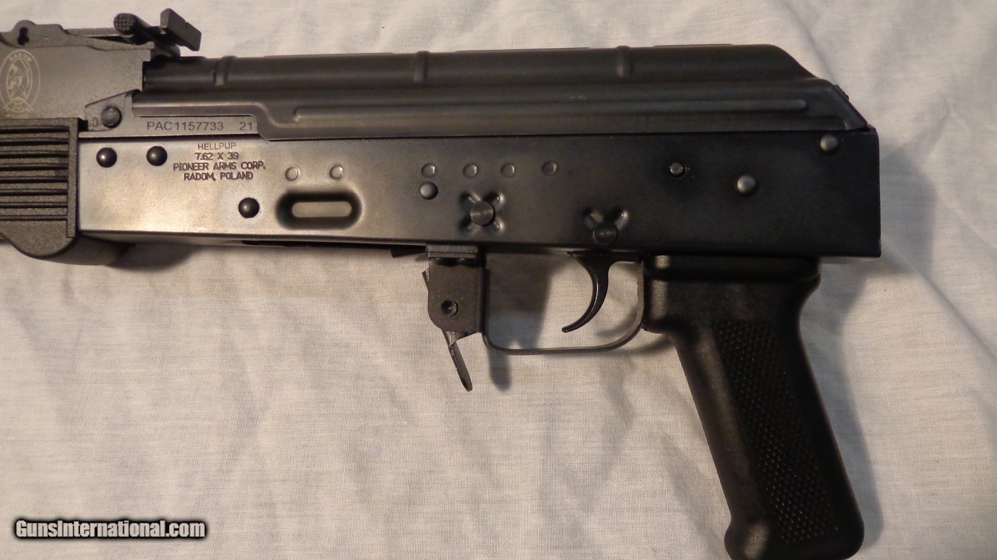 Description: Guns Listing ID: 499299 This gun is in excellent, possibly unfired condition. The box and three magazines are included. SOLD Manufacturer: PIONEER ARMS Model: Hellpup Caliber Info: 7.62X39 MM Condition: Used - Non-Certified Barrels: 12 BARREL Finish: BLUED |