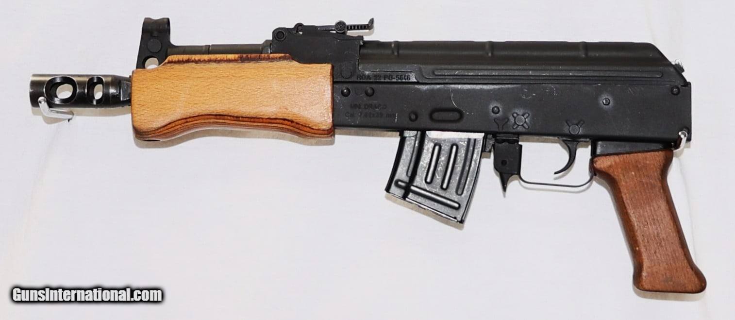 Description: Guns Listing ID: 581339 This is an older model Mini Draco. The wood stock, grip and muzzle brake are all indicative of an older production than the modern-day Draco‚s. This was made in Romania and imported by Century Arms. It comes with two 5 round magazines. Overall good condition, though there are scratches on the metal surfaces. They say a picture is worth a thousand words. These photos are the best statement of condition; please review them carefully before purchasing. Manufacturer: ROMARM/CUGIR Model: mini draco Caliber Info: 7.62X39MM Condition: Used - Non-Certified Barrels: 8" BARREL Action: SEMI AUTOMATIC Finish: black with wood grip Price: $629.99 Contact Seller |