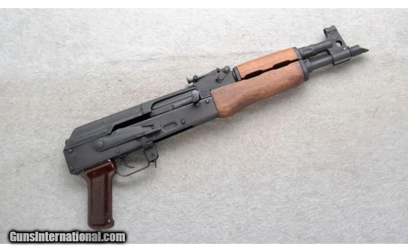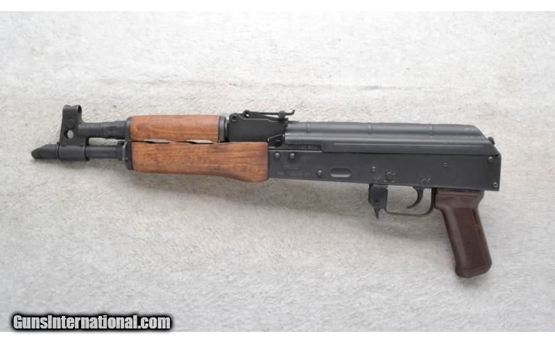 Description: This Romarm Model Draco is a right hand semi-auto pistol in 7.62x39mm Cal. It has a 12 inch barrel. A hooded adjustable front post sight and a numbered sliding adjustable notch middle sight. The pistol grip is a checkered brown composite. The forearm is a smooth grip two piece hardwood. 7.62X39mm SOLD Chambers: Detachable magazine. Metal Condition: Good. Shows some handling/use marks. Wood Condition: Very Good. Bore Condition: Excellent. Barrels: 12 inch. Fore End: Smooth grip two piece hardwood. Weight: 5 lb. 5 oz. Sights: Open top hooded adjustable post front. Numbered sliding adjustable notch middle. Item Location: Richfield, WI |
