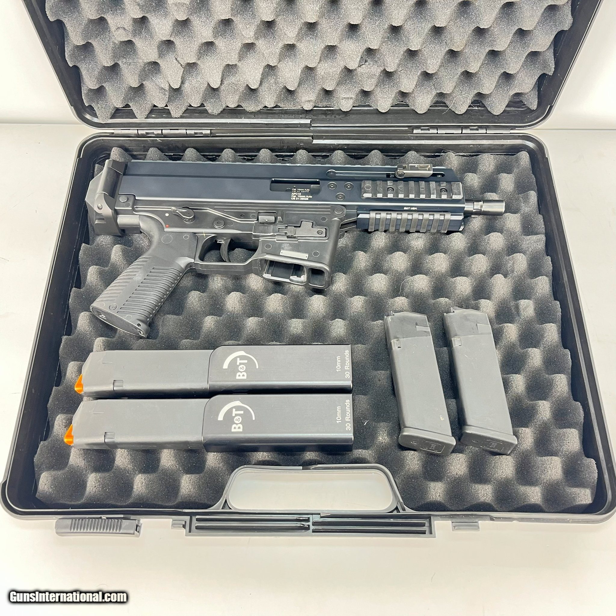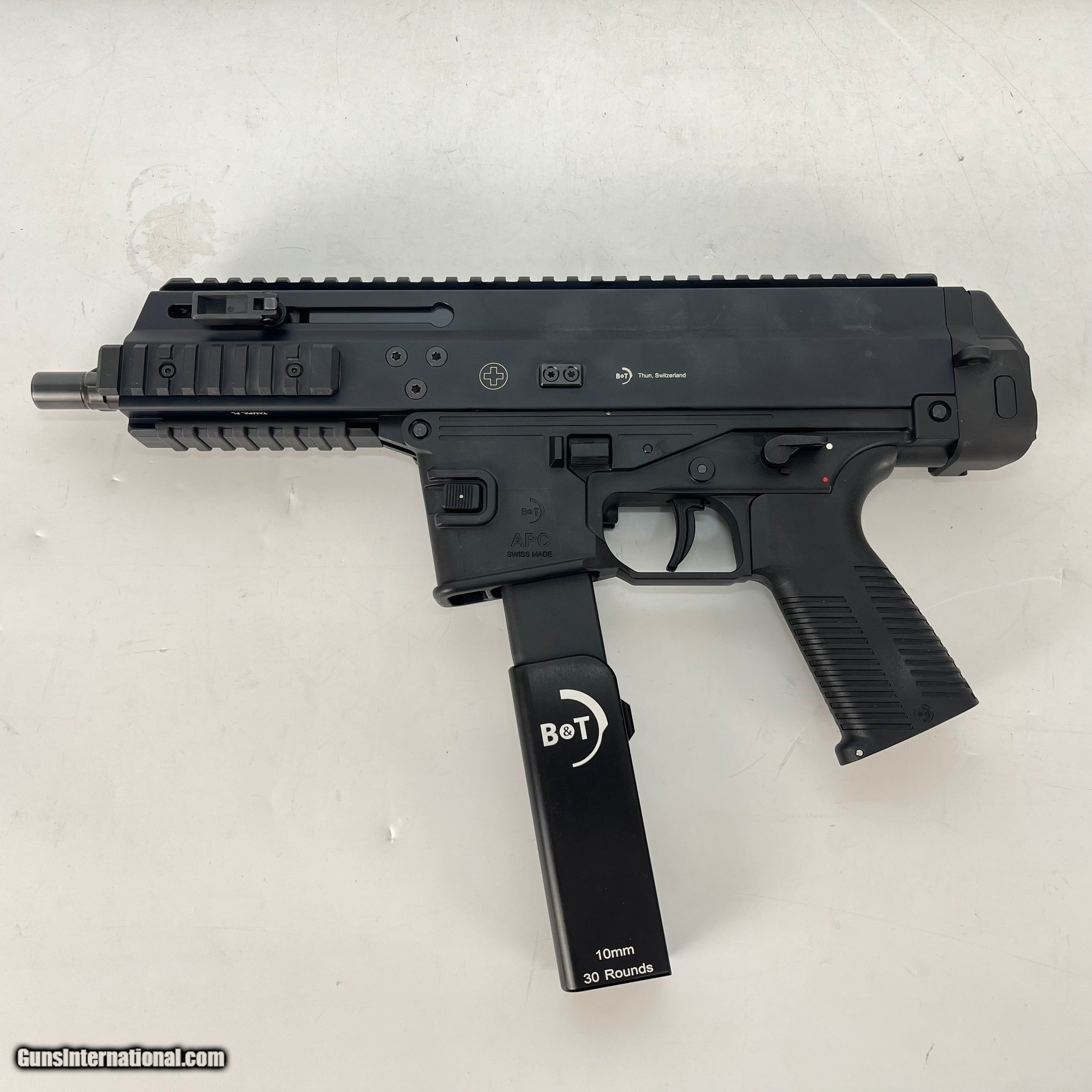 Description: Guns Listing ID: 609451 This used B&T APC10 Pro 10mm Pistol is offered in excellent condition and exemplifies Swiss precision, durability, and professional-grade performance. Designed for demanding users, the APC10 Pro delivers exceptional reliability and controllability in the powerful 10mm Auto platform, making it a standout option for enthusiasts and collectors alike. The pistol features a 6.8-inch barrel that helps maximize velocity and accuracy while maintaining a compact and well-balanced profile. A 3-lug muzzle attachment allows for quick and secure mounting of compatible suppressors or muzzle devices. The upper receiver is outfitted with Picatinny accessory rails, providing ample mounting options for optics, lights, and other accessories to suit a wide range of shooting setups. One of the hallmark features of the APC Pro series is its non-reciprocating charging handle, which can be configured on either side and ensures smooth, uninterrupted operation. The platform also boasts fully ambidextrous controls, including the safety selector, magazine release, and bolt catch, making it equally comfortable for right- or left-handed shooters. Included with this pistol are four factory magazines: two 30-round magazines and two 15-round magazines, offering excellent versatility for range sessions or collection value. The firearm comes housed in the original B&T hard case, further enhancing its presentation and ensuring secure storage and transport. Overall, this B&T APC10 Pro has been well maintained, shows minimal signs of use, and remains mechanically excellent. Its premium build quality, thoughtful design, and complete accessory package make it a highly desirable example of B&T’s renowned craftsmanship. Manufacturer: B&T Model: APC10 PRO Caliber Info: 10MM Condition: Used - Non-Certified Barrels: 6.9" BARREL Action: SEMI AUTOMATIC Finish: BLACK Price: $2,349.99 Contact Seller |