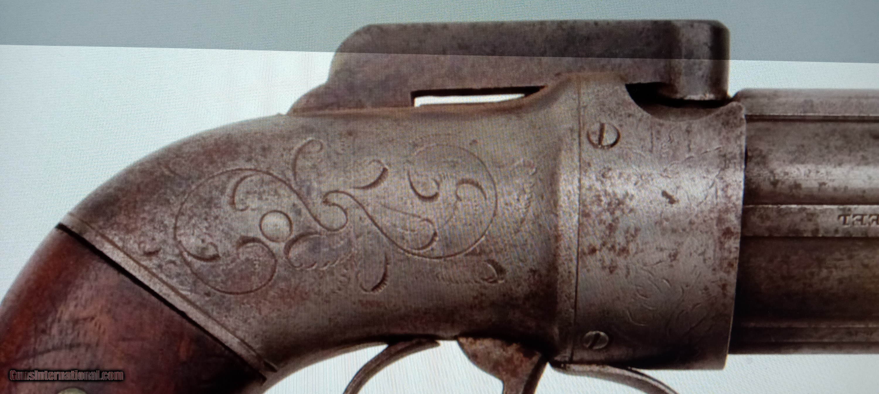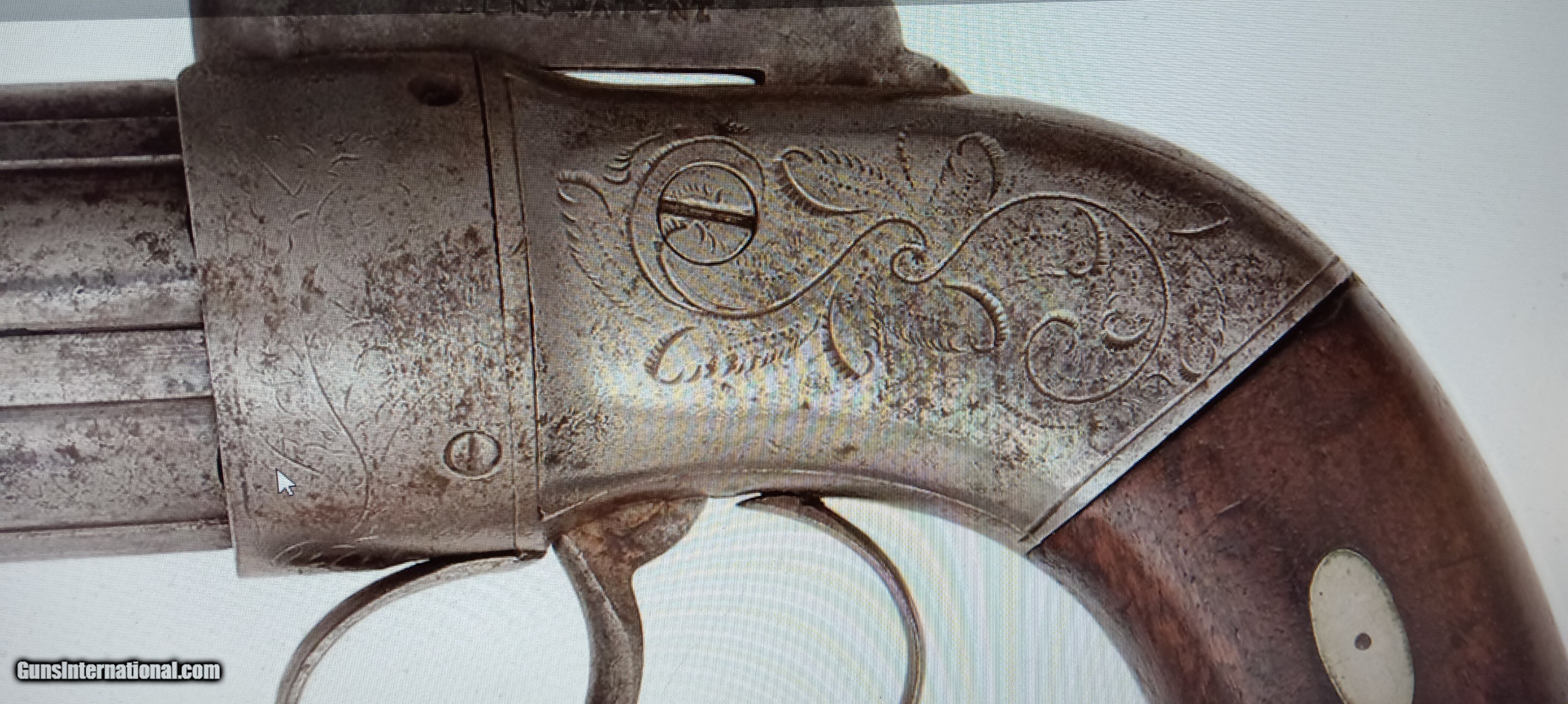 Description: Allen & Thurber Percussion Pepperbox 31 caliber, 4.25" six shot barrels, Engraved frame. Mostly gray metal with some scattered light surface rust.. Markings are sharp and crisp readable. Action works good. Overall good.- Very Good. 2nd handgun SHIPS FREE, with this one!...S/H $25....Thanks Greg 63, 185 cp SEE MY NUMEROUS FIREARMS of NICE CIVIL WAR AND INDIAN WARS...GREAT PRICES! SOLD Antique: Yes |