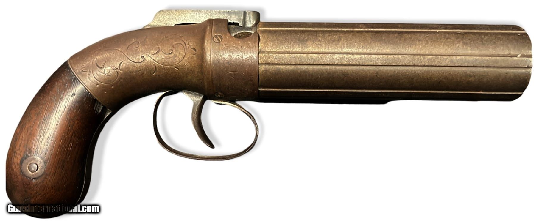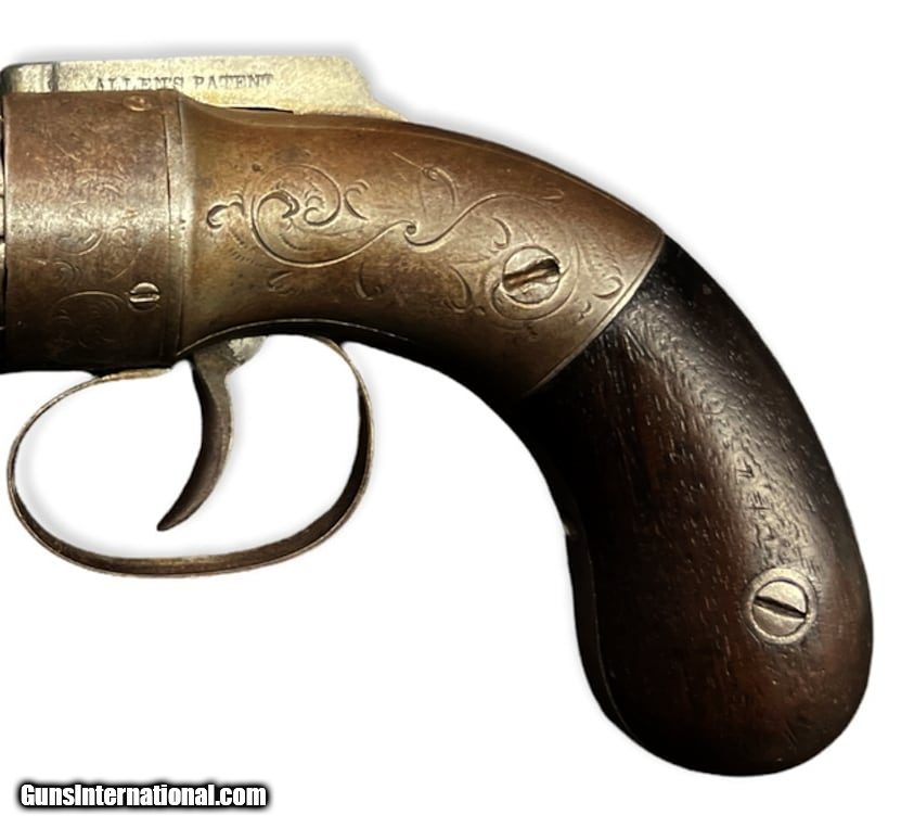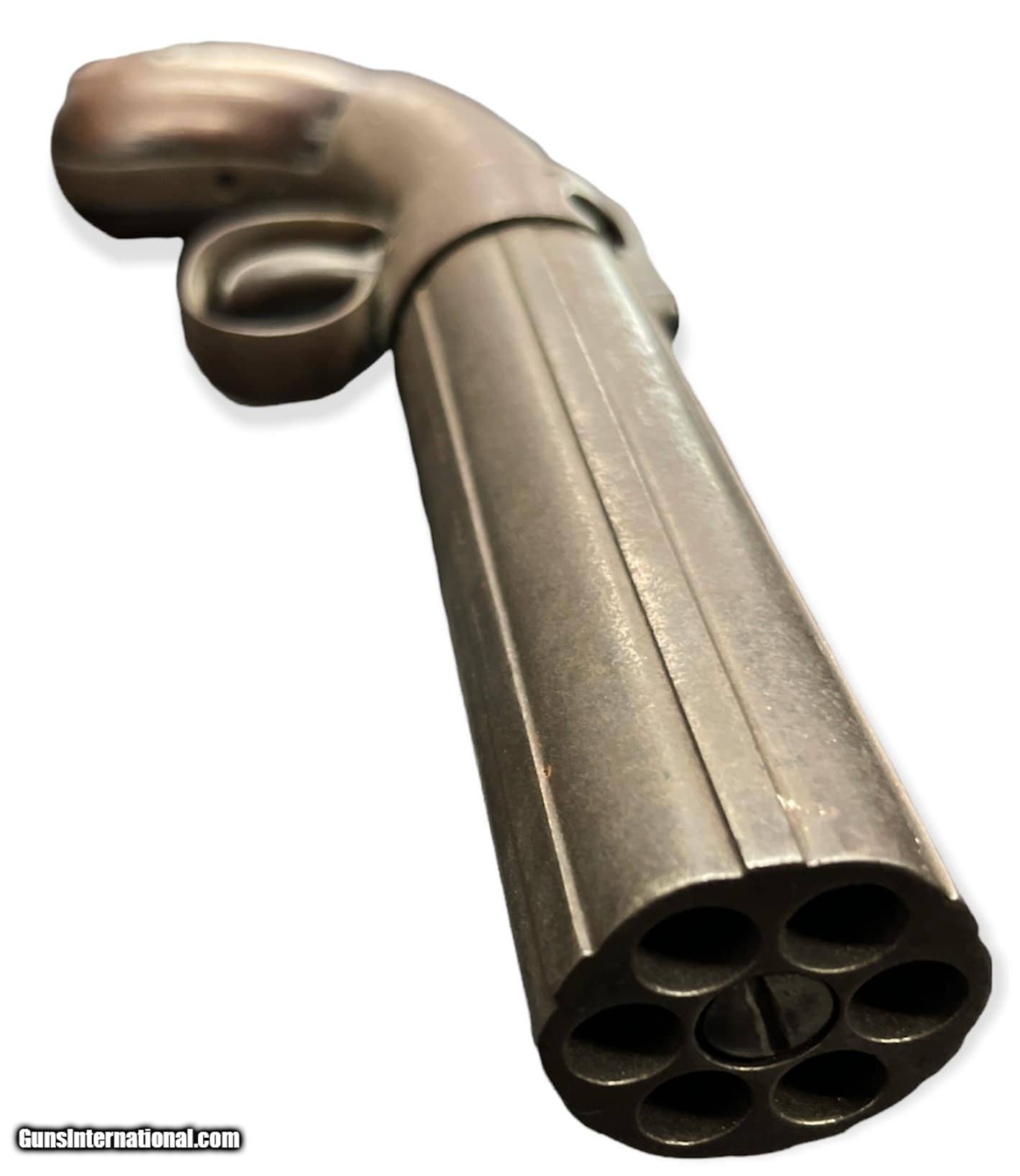 Description: Guns Listing ID: 587913 Manufacturer: Allen & Thurber Importer: Allen & Thurber Model: Pepperbox Type: Handgun Action Type: Revolver Caliber / Gauge: .31 caliber Finish: Blued Barrel Type: Single Grip Type: Wood Barrel Length: 4.5 Magazine Capacity: 6 Condition: Used SOLD Antique: Yes Manufacturer: ALLEN & THURBER Model: Pepperbox Caliber Info: .31 CALIBER Condition: Used - Non-Certified Barrels: 4.5" BARREL Finish: BLUED |