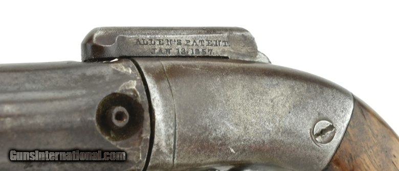 Description: Allen & Wheelock 4 Barrel Pepperbox. Made circa 1860. .28 Caliber with a 2 ½” barrel. Barrels are nice and sharp. This is an unusual gun with 4 barrels. The grips are very good. Action works perfectly. SOLD Antique: Yes |