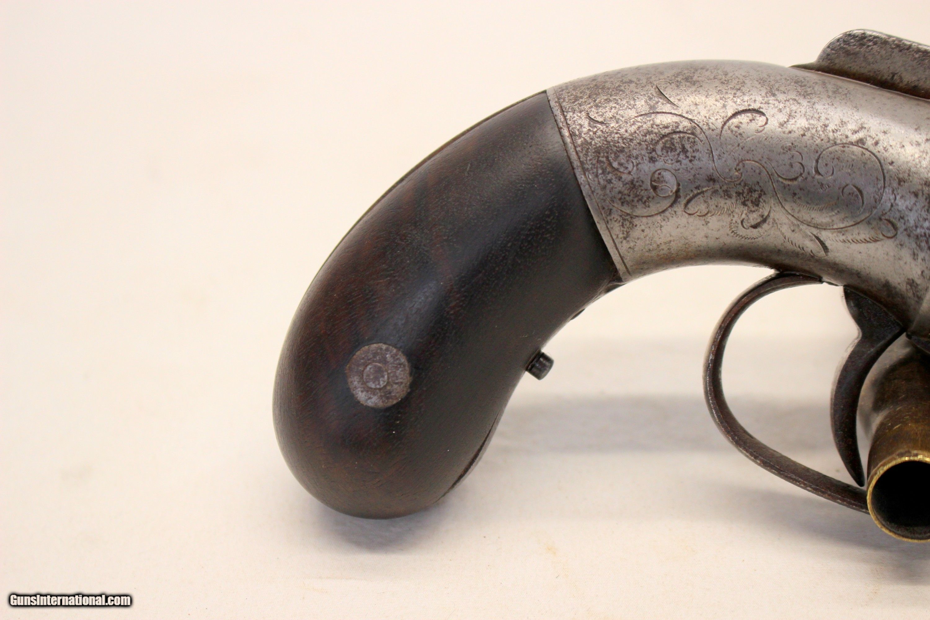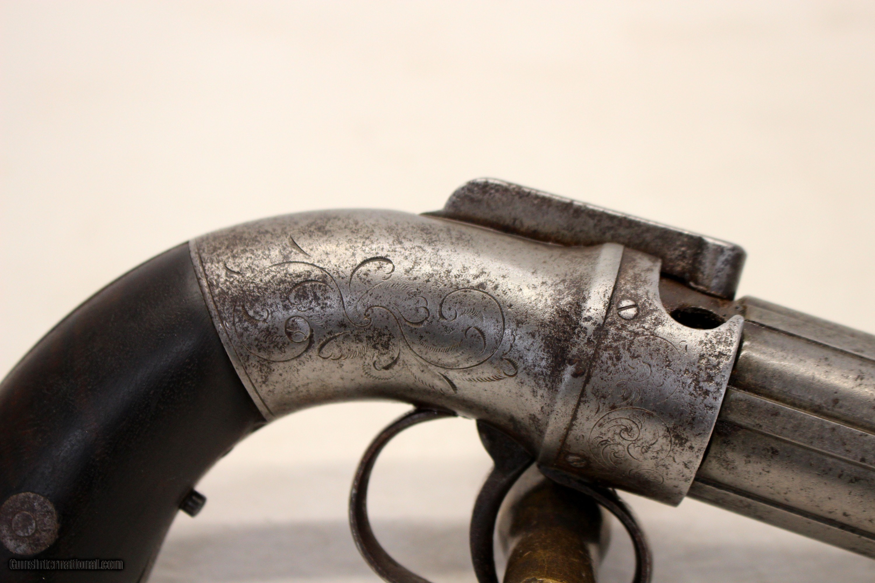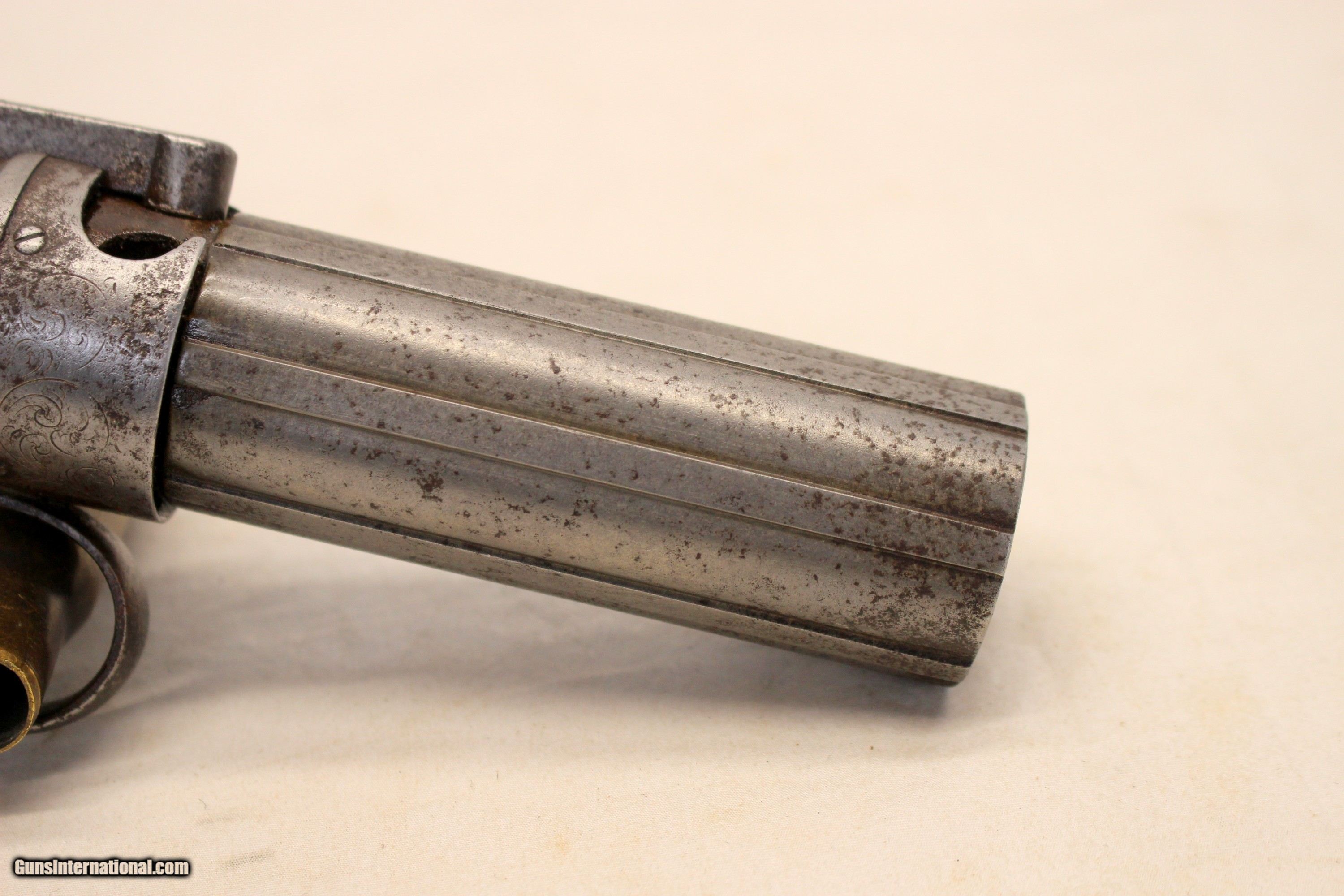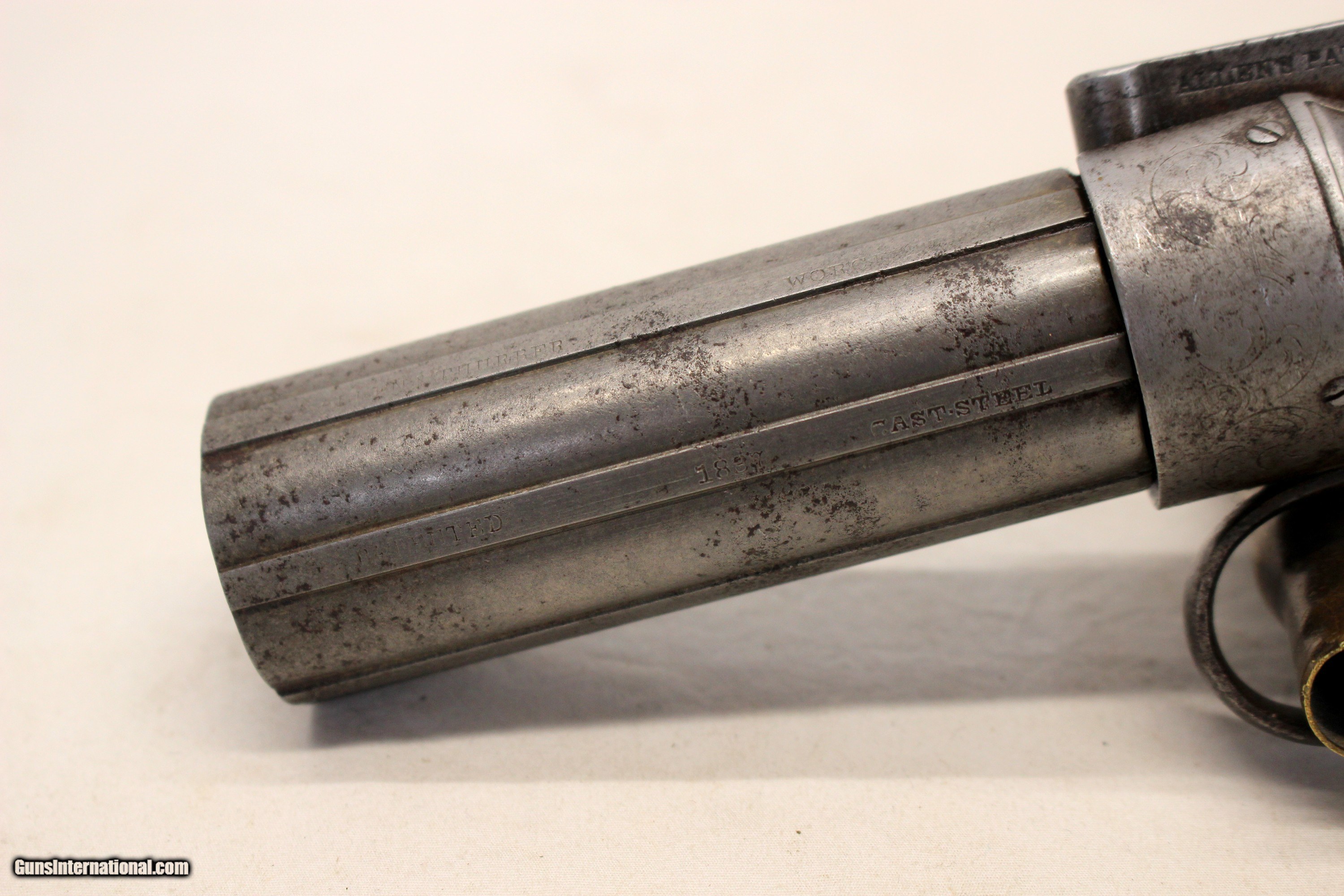 Description: We are offering for sale an antique Allen & Thurber PEPPERBOX six shot revolver chambered in .32 caliber. This is an early example with "1837" patent date. The gun remains in very good, fully functioning condition! 3 1/2" barrels remain very good with light scattered age, oxidation wear; No heavy wear or damage, This pistol has the Allens Patent bar hammer on the top which snaps with every pull of the trigger. The cylinder rotates correctly as well. The "receiver" shows original scroll etching. Original wood grip panels are very good without damage. CLEAN AND COLLECTIBLE ANTIQUE PISTOL Shipping is $24.95 via USPS Priority *** WE ONLY ACCEPT MASTERCARD AND VISA AS PAYMENT OPTIONS (we charge a non-negotiable 3% cc fee) *** Please know the legality of any weapon in your state before . If a gun can’t be transferred to you we will charge a 15% re-stocking fee. Also, we are a PART TIME business, Only in office Wednesday through Saturday 10am-4pm. If you make an offer on Sunday-friday we may not get back to you for 24+ hours, please send us an email with any questions, and we will do our best to get back in a timely manner. Thank You. We are not a shop open to the public, no private viewings. We stand behind our descriptions, and gladly take returns, however we know based on the descriptions given, you will not be disappointed. No Face To Face Transfers! Please note: Clicking "buy" does not guarantee that this gun is yours, However clicking “Buy” will reserve this gun for you, if it hasn’t been sold in store. We will try to do our best to remove the posts as efficiently as possible, but sometimes delays may ensue. “Buy” is your safest bet to reserve a gun. Also please add 6.25% MA state sales tax (if from MA) and 3% credit card shop courtesy fee. After Clicking “buy” we will need the following from you, via email before we ship. 1: A copy of your preferred FFL’s license via email () 2: Your preferred method of payment (If Credit card: 16 digit, MM/YY exp date, 3 digit code Plus billing address) 3: Your Shipping information/ Your preferred FFL’s Shipping information. You have 5 business days to arrange payments and ffl information to us. Any purchase not completed within this time frame will be cancelled, and the ad will be put back active online. Please before calling with concerns read these conditions and meet them accordingly. SOLD Antique: Yes |