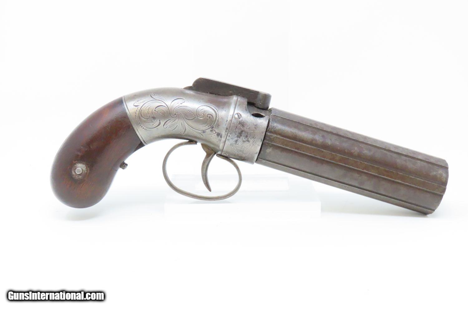 ANTIQUE Allen & Thurber WORCHESTER PERIOD Bar Hammer PEPPERBOX Revolver ENGRAVED First American Double Action Revolving Pistol
