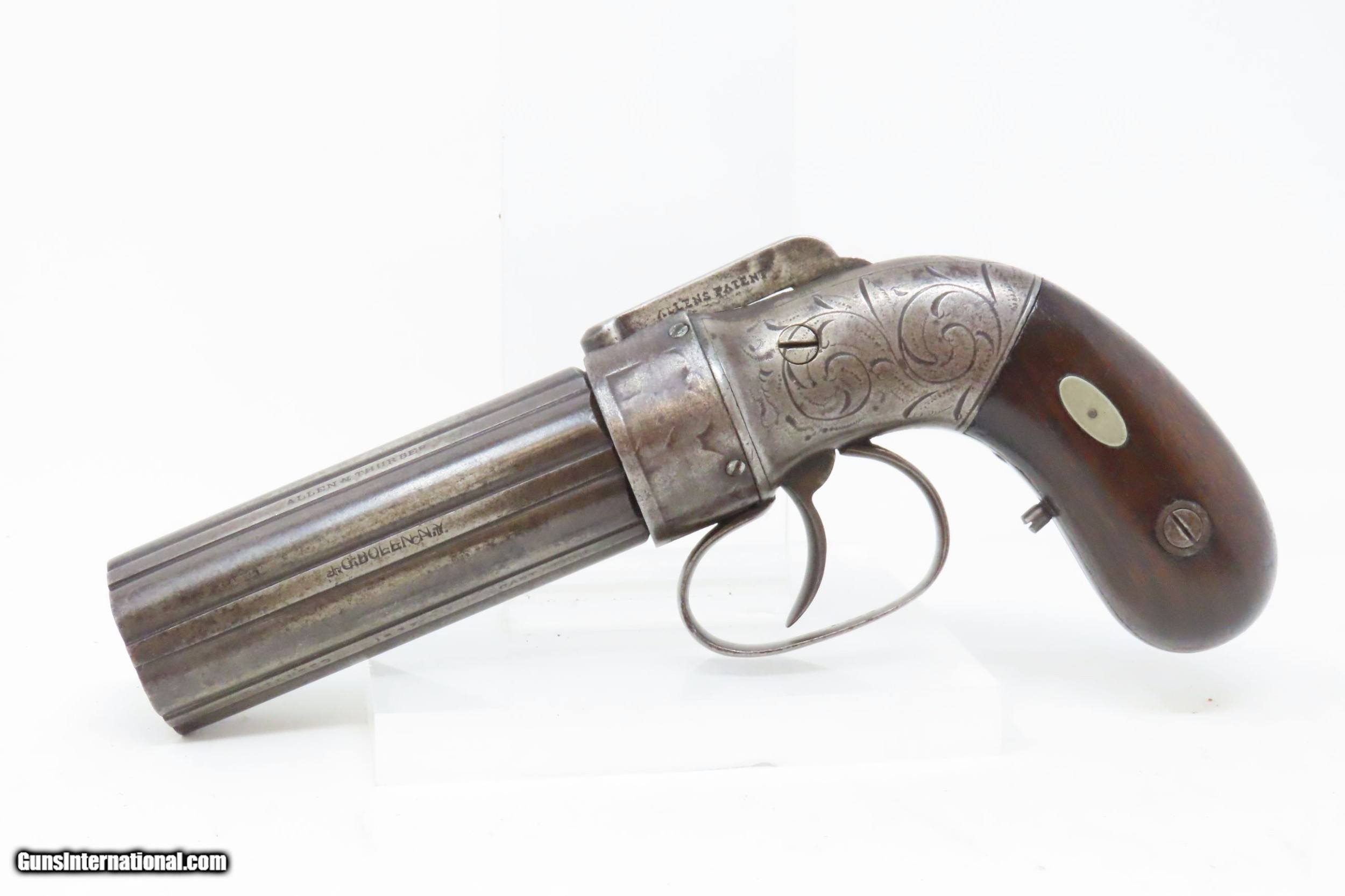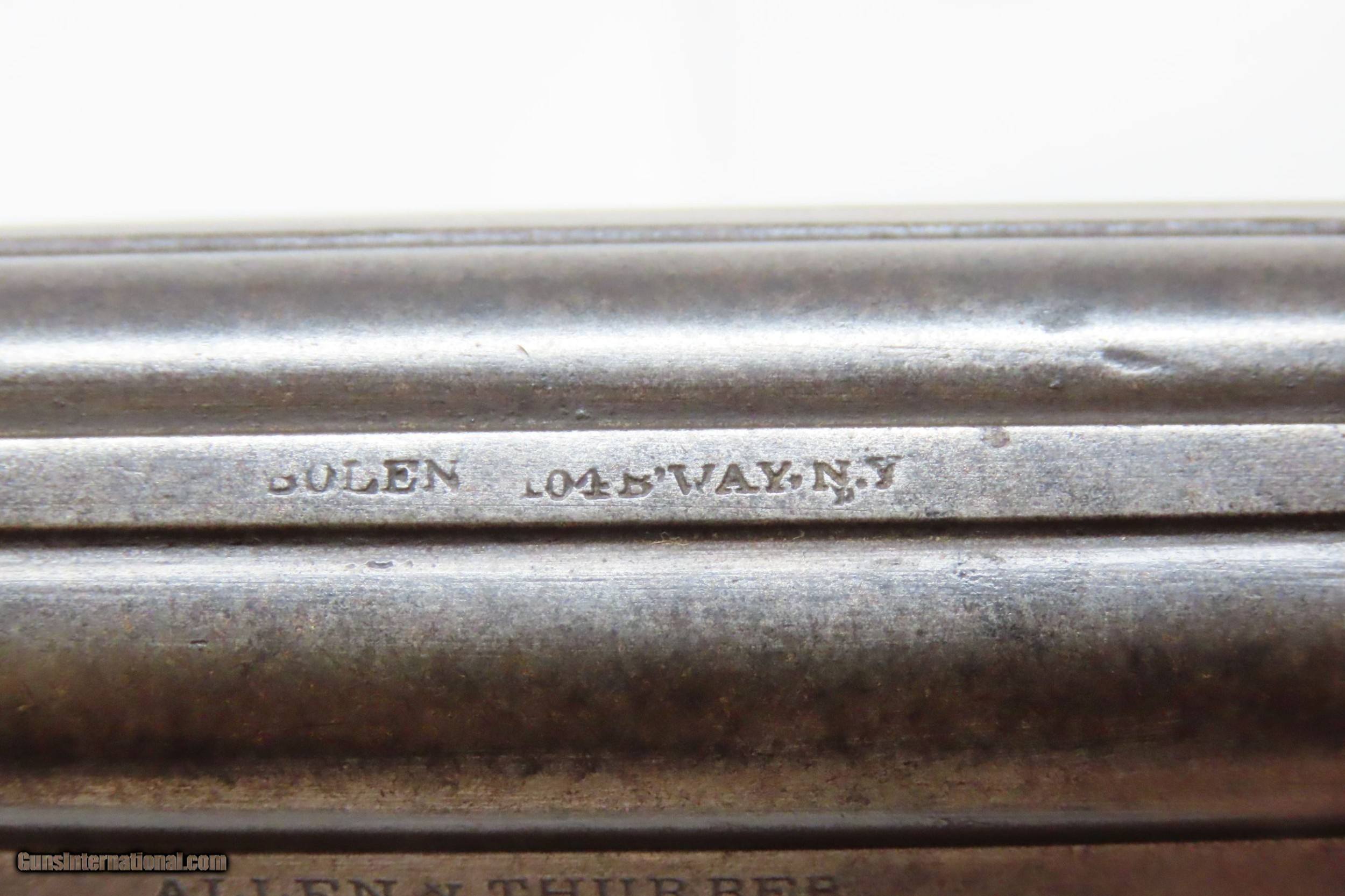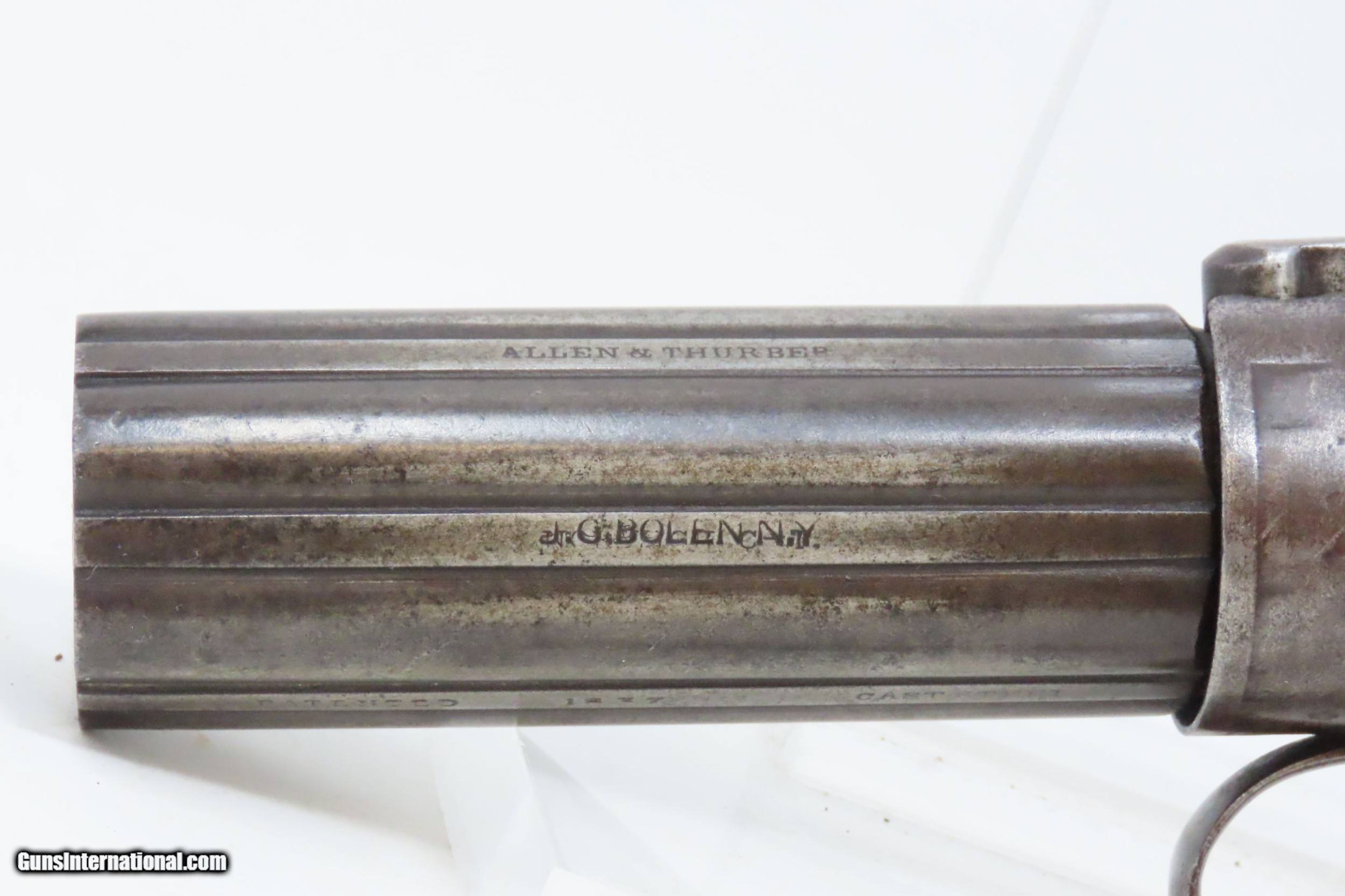 c1840s mfr. BROADWAY NYC ALLEN & THURBER .32 Cal PEPPERBOX Revolver Antique J.G. Bolen NEW YORK RETAILER Marked