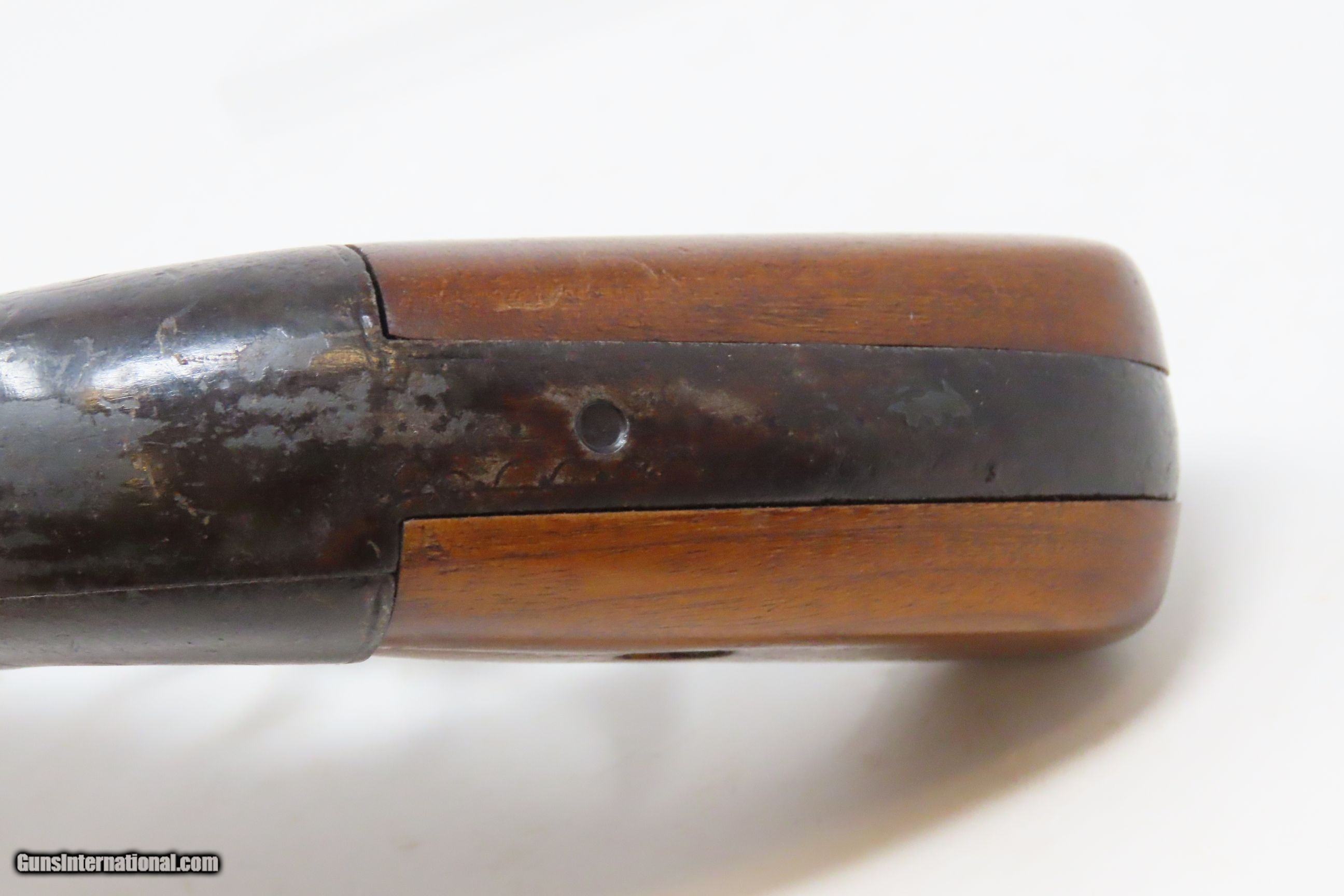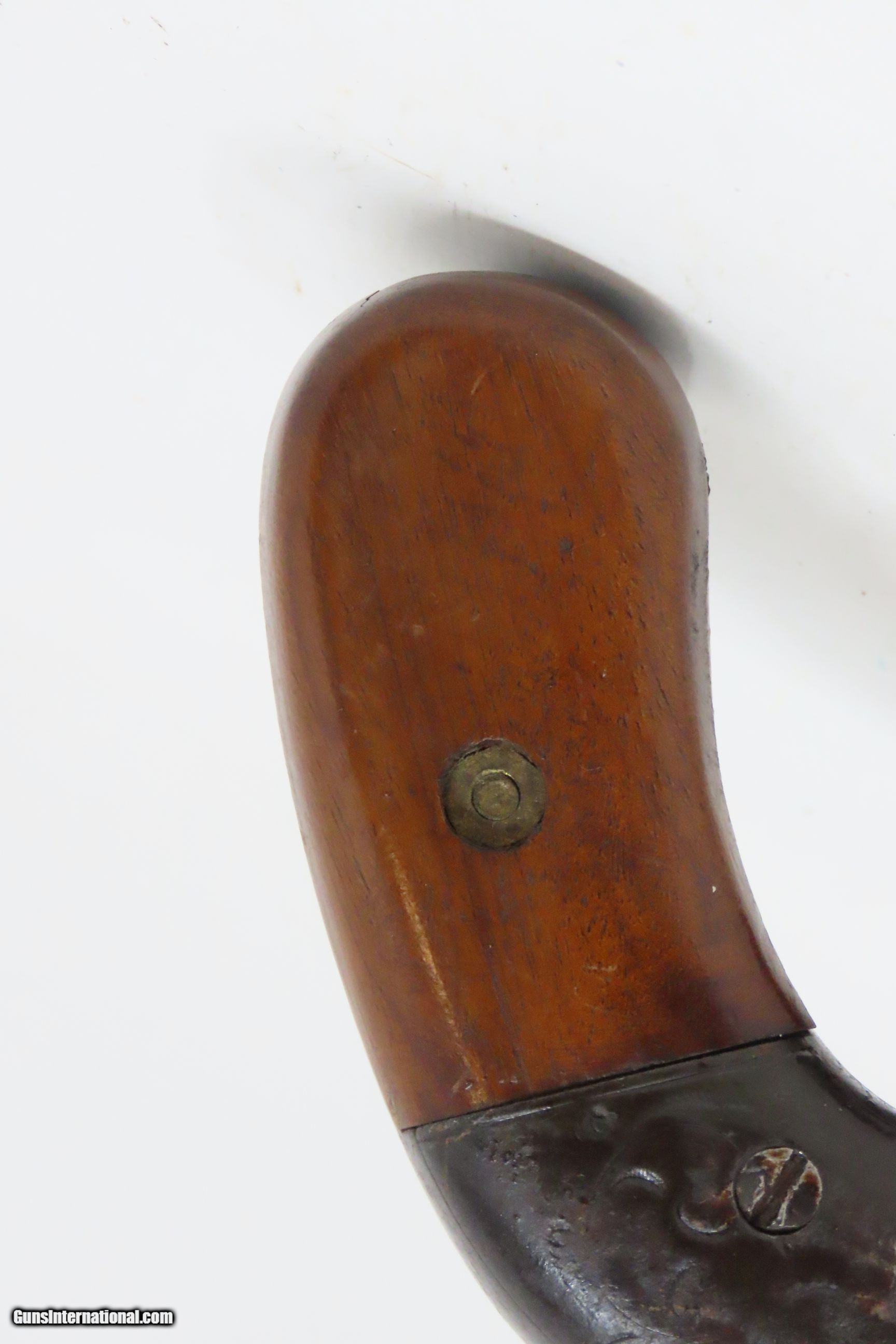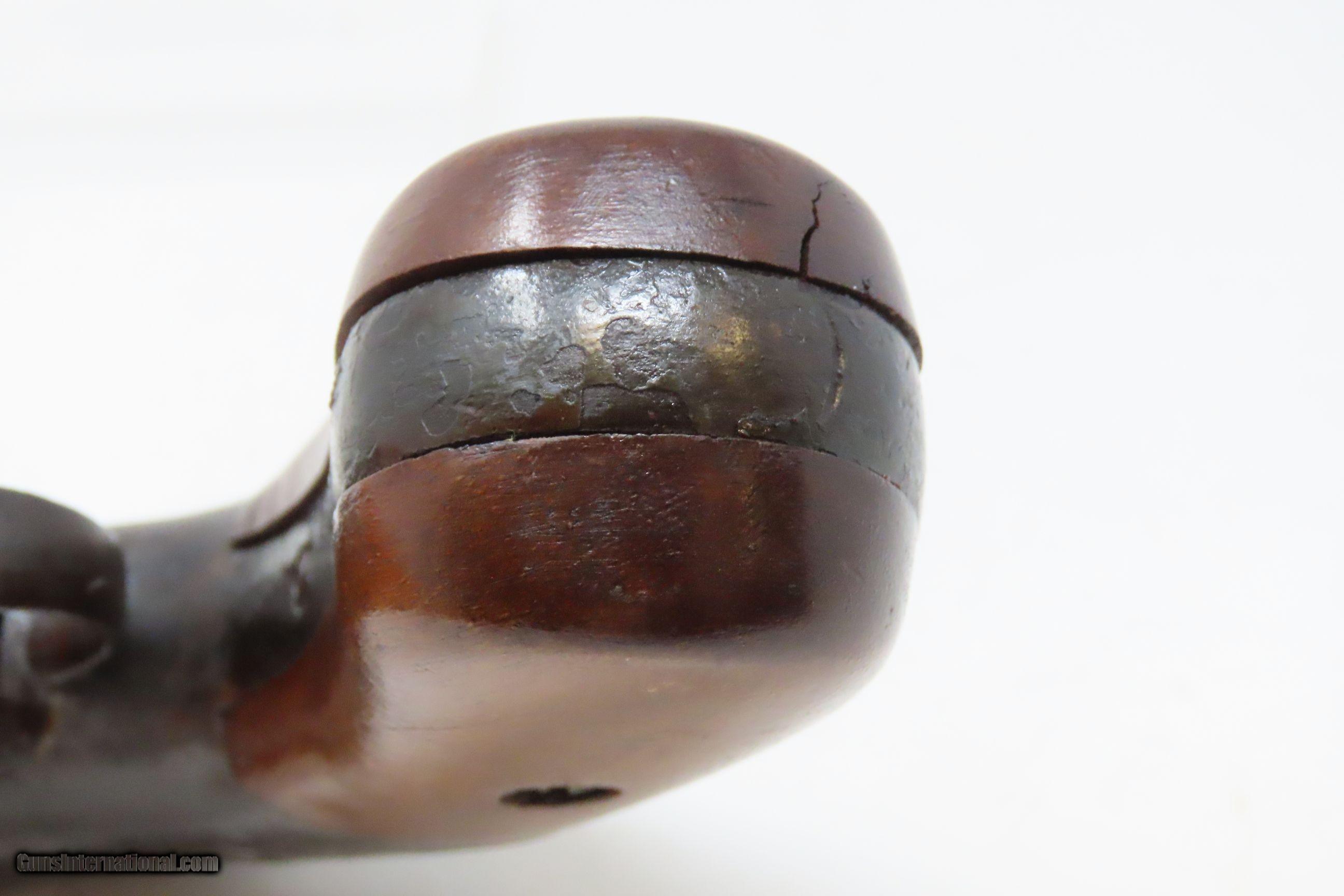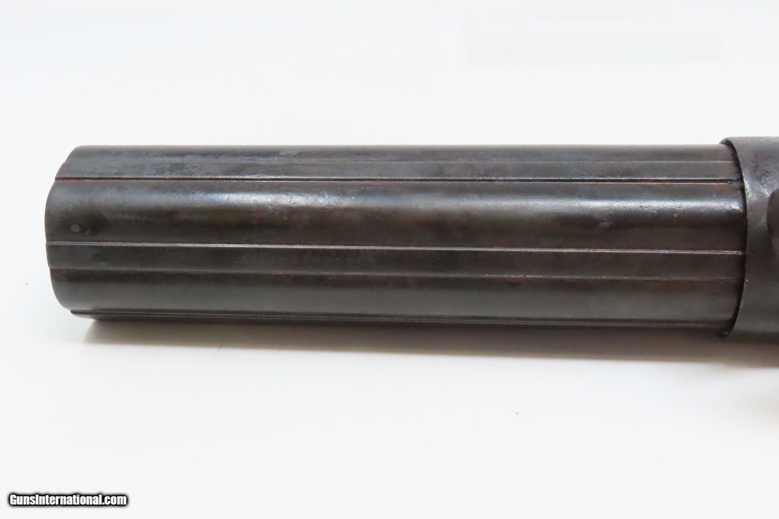 Description: GOLD RUSH Era ALLEN & THURBER Antique WORCHESTER Period Revolver PEPPERBOX ENGRAVED First DA Revolving Percussion Pistol Here we present an antique Allen & Thurber Bar Hammer 6-shot Percussion Pepperbox pistol made circa 1847 to 1856 in Worcester, Massachusetts. Only six-barrel pepperbox pistols were produced during the Grafton and Norwich periods (1837–1847), and all had smooth barrel external contours until the later Worchester and Allen and Wheelock period, when fluted barrels became the norm. Though this is a six shot, it was during the Worchester period that the five-shot pepperbox was introduced. Percussion nipples were integrated to the barrels. Made with a bar hammer and standard trigger, models have been encountered with or without an integral nipple shield. While simplifying shooting (no manual cocking of the hammer), the bar hammer did preclude the inclusion of usable sights. However, this early example of a double-action pistol must have been quite a selling point. As these were considered “point and shoot” short range defensive weapons or “belly guns”, the market did not seem to object to the limitation of not having sights. Ethan Allen was already a prolific inventor and successful businessman in the 1830s when he came up with this design. This percussion, six-shot, double-action pocket revolver was a very popular pistol that was produced in Worcester, Massachusetts. It’s a 36-caliber pepperbox with a revolving screw off fluted barrel and has factory engravings in a floral motif executed on both sides of the frame. Made from 1847-1856, these pistols enjoyed even greater popularity than Sam Colt’s first pistol. The history that these pistols enjoyed over the years is astounding: the Seminole Wars, Gold Rush, Mexican War and American Civil War. These guns are true relics of American history. The overall condition is good. The action functions, but the cylinder intermittently indexes. The bores are in good shape for their ages. Lightly engraved frame. Both grips are in good shape. This example has been refinished. “1837” dated barrels. Visible markings are legible. Own the original! This is a legitimate antique and not a reproduction. Barrel is 5-1/8 inches. Caliber: .36 Percussion Overall condition as seen in photos. Very Fast. Very Safe. FREE SHIPPING WORLDWIDE. Delivered directly to your door by express mail! Guaranteed AUTHENTIC & Includes CERTIFICATE OF AUTHENTICITY. ancestryguns $1200 #230989 SOLD Antique: Yes |