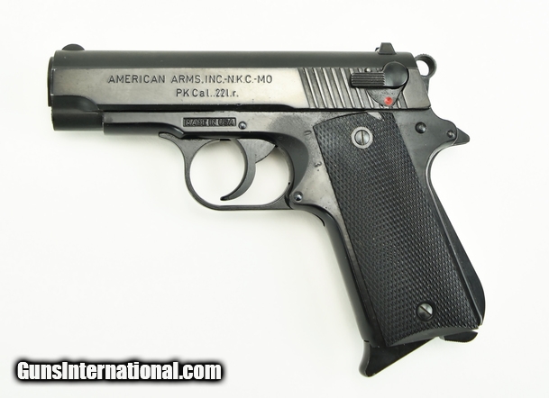 Description: American Arms PK .22 LR caliber pistol. Compact auto in very good condition.
