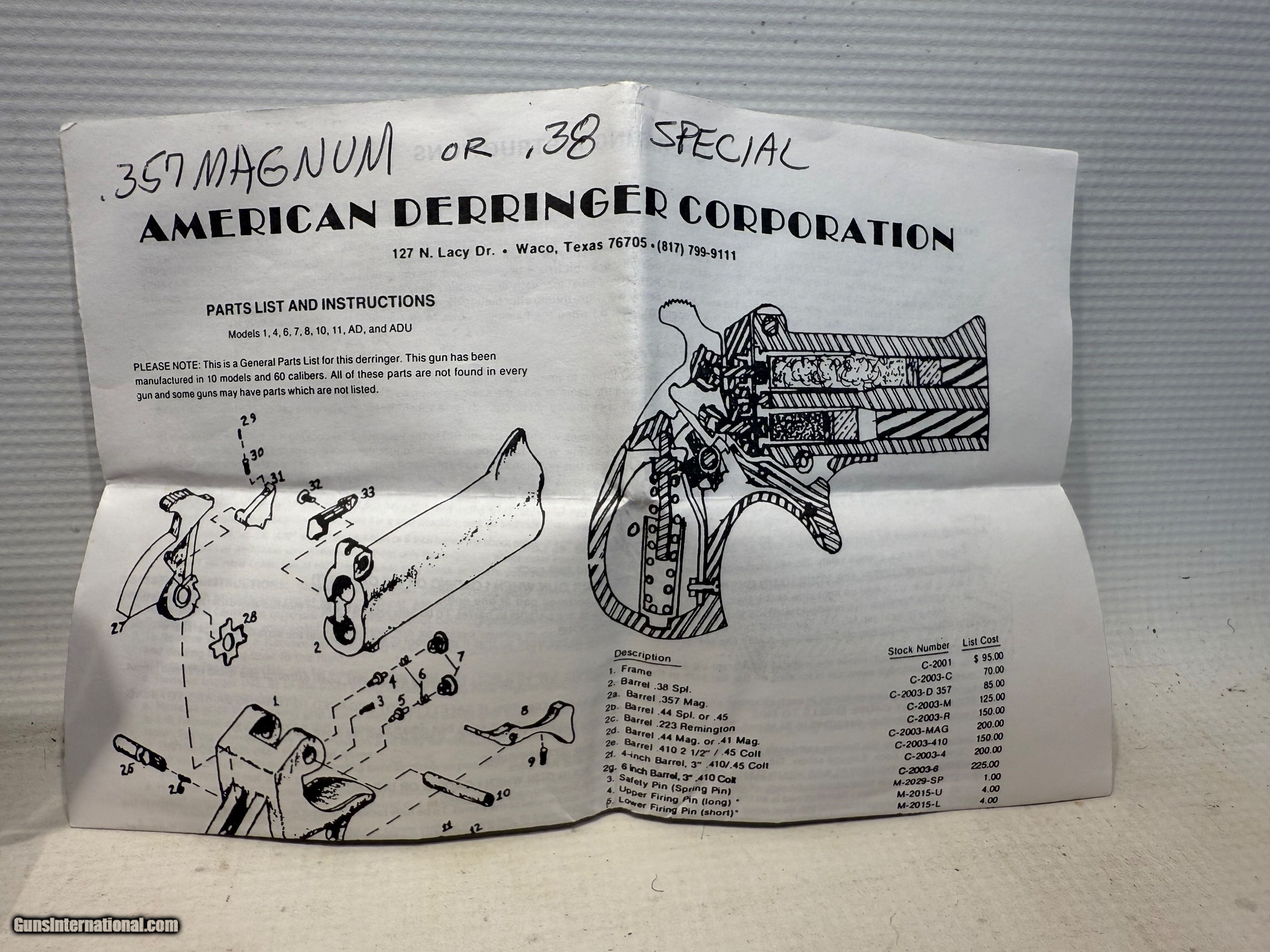 American Arms Mdl. M-1 Derringer .357 mag w/ Original Presentation Case