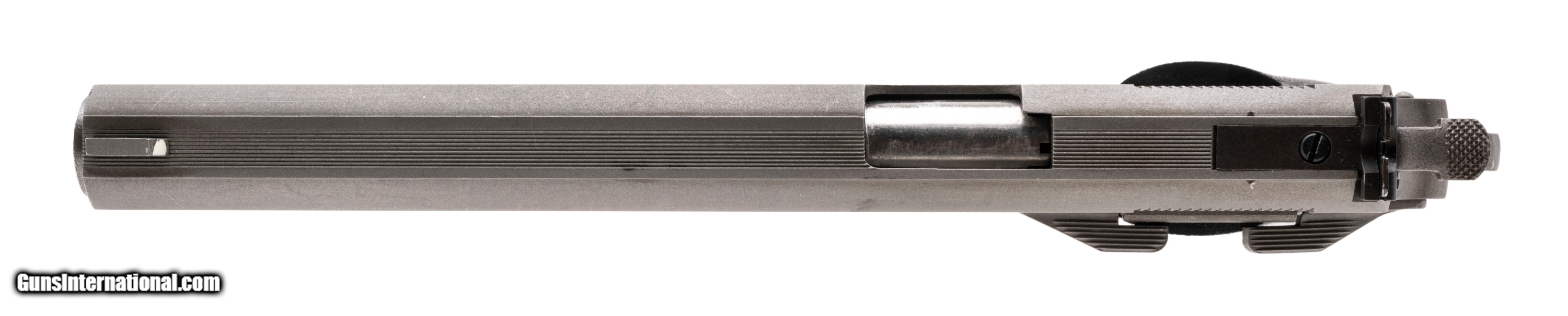 Description: "SN: B23960. Modern production, .45 Auto with a 7"" barrel. Bore is bright with strong rifling. Steel frame 1911 style pistol. Stainless steel is in very good condition. Checkered rubber grips are in very good condition. SOLD |