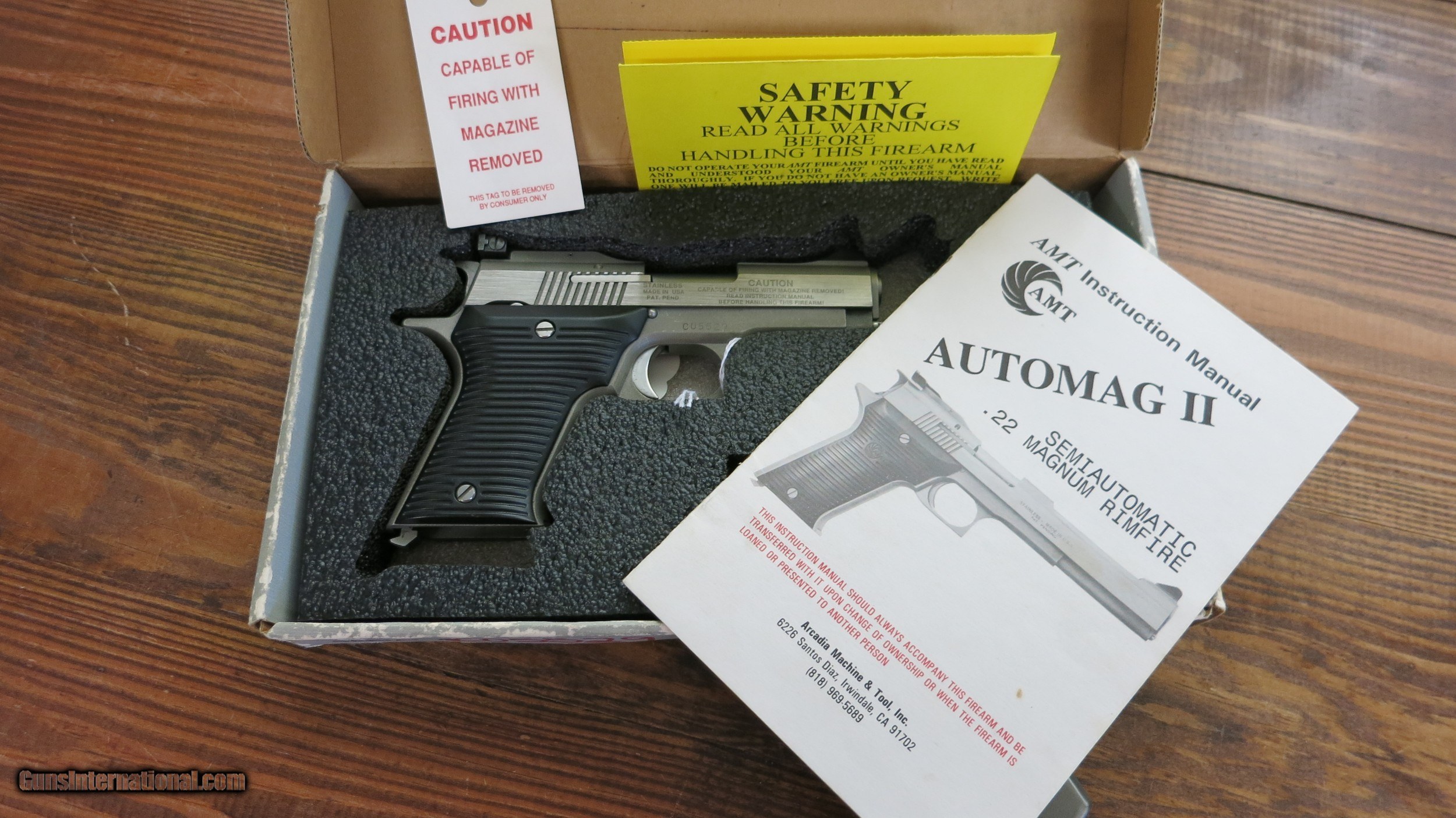 Description: "SOLD" AMT .22 AUTO MAG ANIB. GUN IS IN EXCELLENT CONDITION & BOX HAS ALL THE PAPER WORK & THE SIGHT ADJUSTMENT TOOL. 3.375" BARREL WITH ADJUSTABLE TARGET SIGHTS. CALL OR E-MAIL WITH QUESTIONS: SOLD |