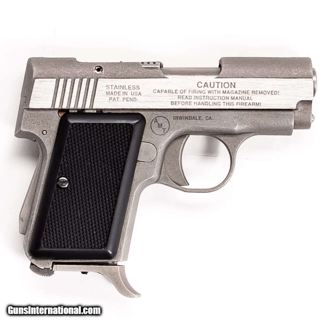 Description: Guns Listing ID: 262277 The AMT Back-Up is an extremely compact semi-automatic handgun designed for concealed carry and personal protection. This model is a Back Up II chambered in 380 ACP (9mm Kurz). 1 X 5 round magazine, the original case, and a manual are included. SOLD Manufacturer: AMT Model: .380 BACKUP II Caliber Info: .380 ACP Condition: Used - Certified Barrels: 2.5 BARREL Finish: STAINLESS |