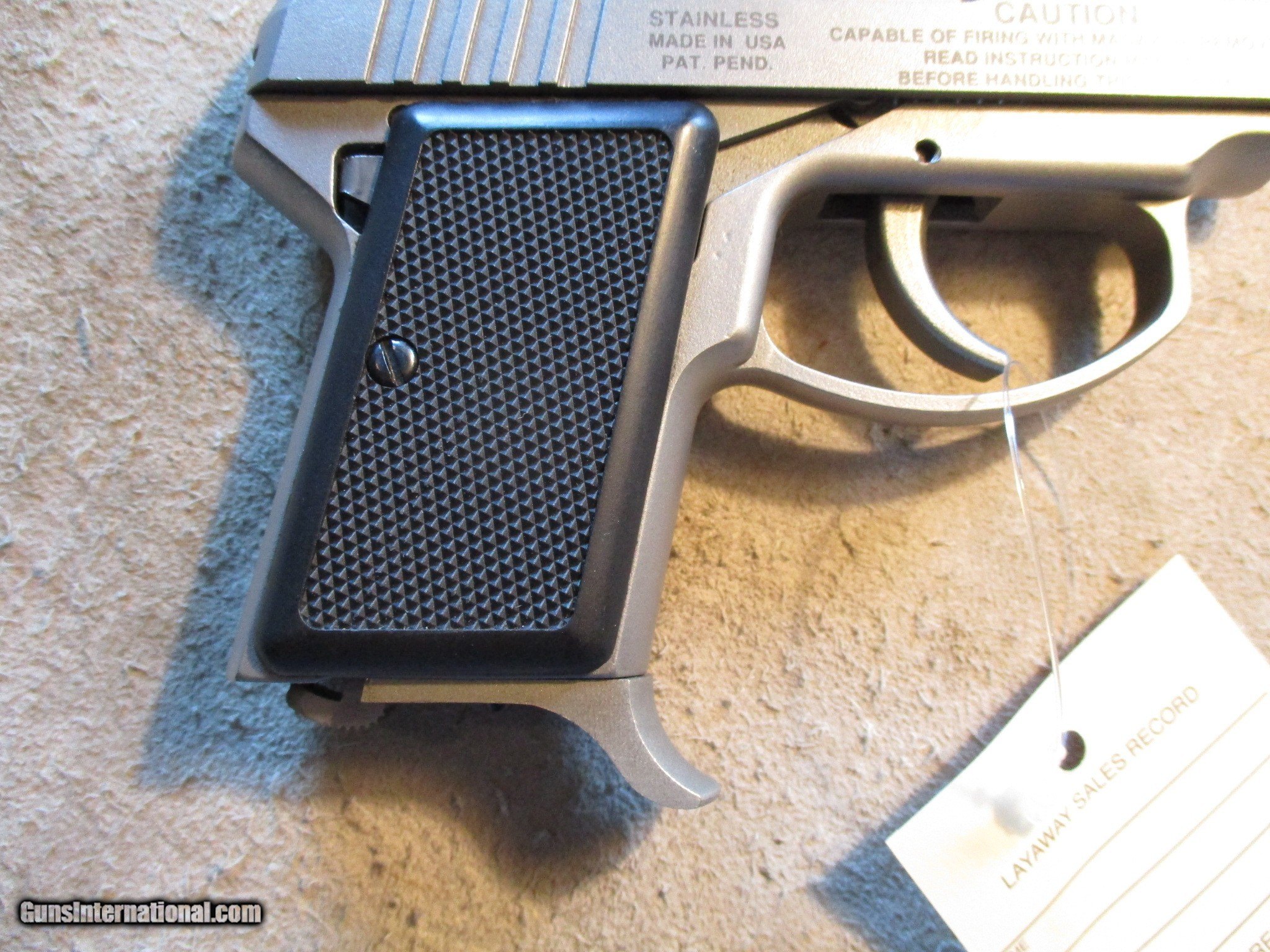 Description: AMT Back Up 9mm Kurz (380 ACP). SN is DAA021xx, nice clean gun, one factory mag. We will trade for silver and gold. We accept personal check, any certified funds, Venmo or Zelle. We can also take your credit card, +3%. Email me if you would like these pictures sent to you, they will come through bigger and better than on the listing page here. We do offer Layaway. Our standard terms are 25% down, 90 days. Initial deposit is not refundable. Email me with any questions. Please check your local laws to confirm it is legal to own in your state! Buyer pays $25 shipping and insurance to your FFL in the lower 48. AK, HI or PR is extra. I will ship to California, as long as it is legal, NO PROBLEM! All my guns come with a non-firing, 3 day unconditional return privilege, from the day UPS delivers to your dealer. Buyer pays shipping both ways if the gun comes back. Please make sure to make it to your FFL to inspect within the 3 days. If your gun doesn't have a box or case we can add a new hard case by PLANO for secure shipping for $30 if the buyer wishes (highly recommended, cheap insurance, really helps keep the UPS monster from eating my guns!). I am a licensed FFL, and will include a copy of my FFL with the gun for your dealer’s records. I will ship to a C&R if the gun is eligible. I will ship to California, but you need to confirm the gun is legal where you are, California or other. WE BUY AND CONSIGN GUNS AND GUN COLLECTIONS! We will travel to pick up collections! I am always looking for good clean, old original Winchesters to buy, consign, or trade, especially Pre '64's model 70's and model 54's. WE ALSO TRADE FOR CLASSIC CARS AND TRUCKS! We also trade for gold and silver. SOLD Handgun Caliber: .380 ACP (9x17mm Browning Short) Manufacturer: AMT Model: Back Up Condition: Used |