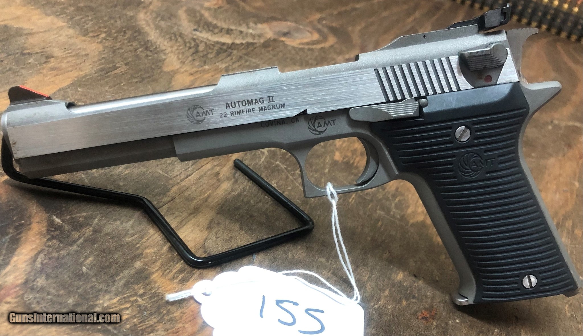 Description: Guns Listing ID: 449360 AMT Auto Mag II, .22 mag, 4.5”, stainless, w/ factory box, and manual, SOLD Manufacturer: AMT Model: Auto Mag II Caliber Info: 22 MAG Condition: Used - Non-Certified Barrels: 4.5 BARREL Finish: STAINLESS |