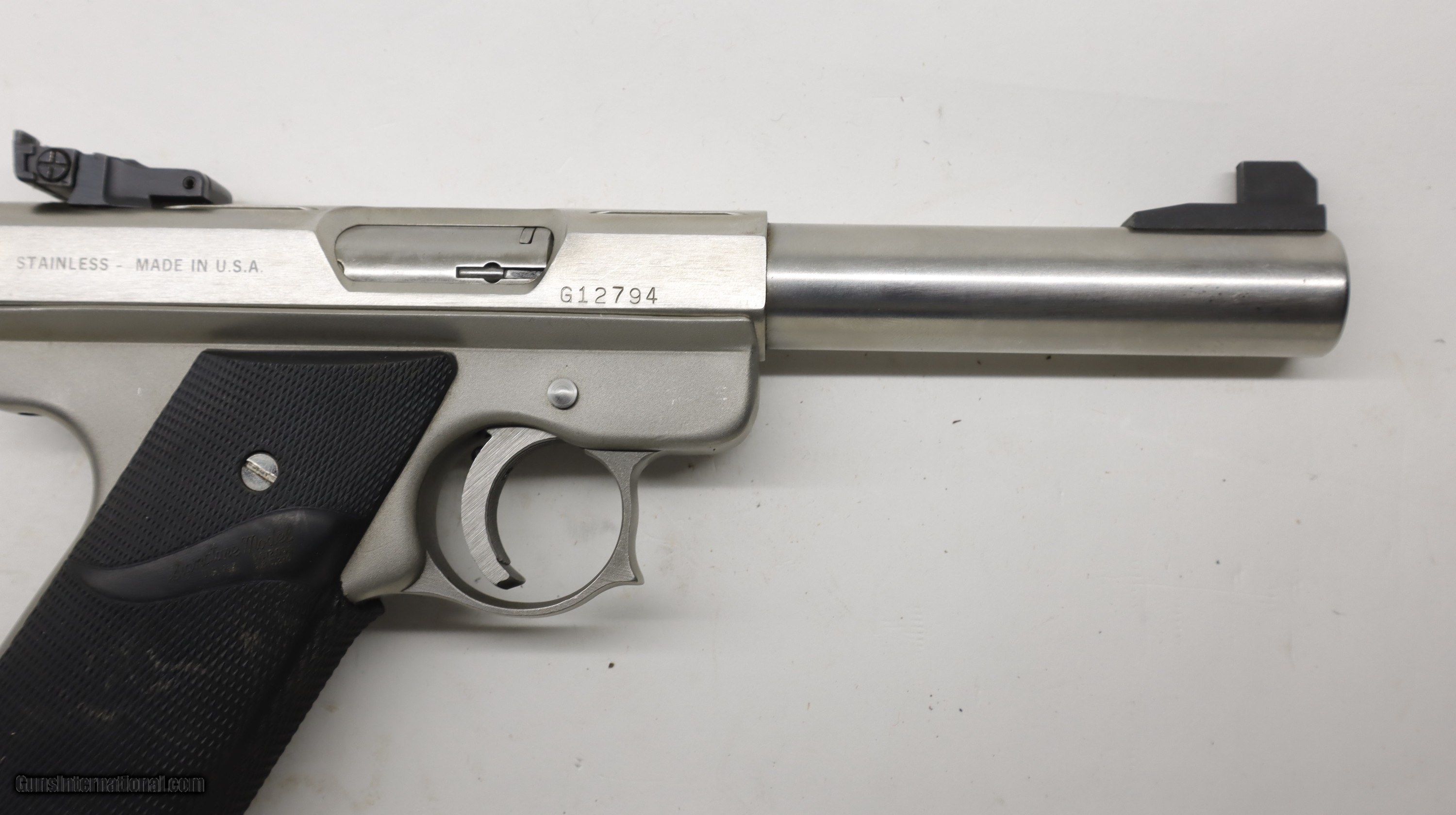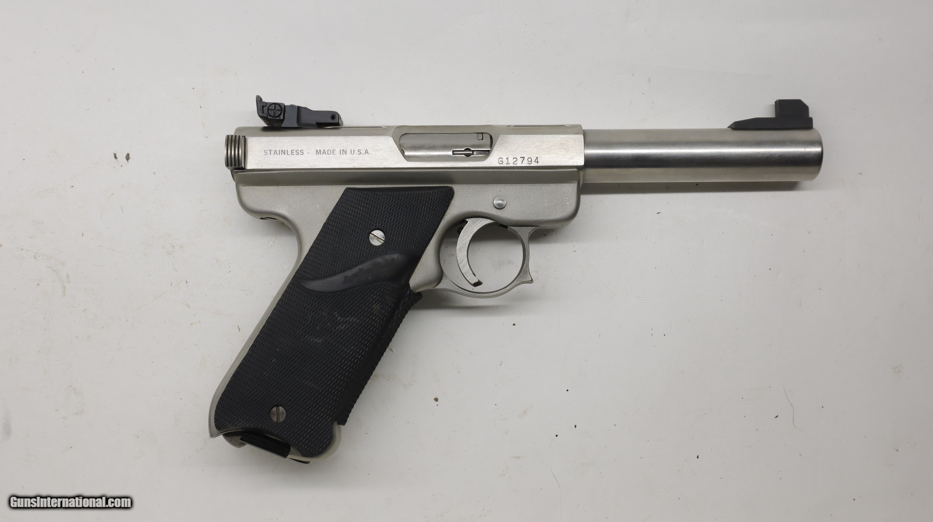 Description: AMT Auto Mag Lighting Stainless 22LR with 2 factory mags. 5" barrels. SN is G127xx. Factory finish, nice clean gun. We will trade for silver and gold. All my guns (except layaway) come with a non-firing, 3 day unconditional return privilege, from the day UPS delivers to your dealer. Buyer pays shipping both ways if the gun comes back. Please make sure to make it to your FFL to inspect within the 3 days. We accept personal check or any certified funds. We can also take your credit card, +3%. Email me if you would like these pictures sent to you, they will come through bigger and better than on the listing page here. We do offer Layaway. Our standard terms are 25% down, 90 days. Initial deposit is not refundable. Layaway guns do not have a return/inspection period. Email me with any questions. Please check your local laws to confirm it is legal to own in your state! Buyer pays $30 shipping and insurance to your FFL in the lower 48. AK, HI or PR is extra. I will ship to California, as long as it is legal, NO PROBLEM! I am a licensed FFL, and will include a copy of my FFL with the gun for your dealer’s records. I will ship to a C&R if the gun is eligible. I will ship to California, but you need to confirm the gun is legal where you are, California or other. WE BUY AND CONSIGN GUNS AND GUN COLLECTIONS! Will travel! I am always looking for good clean, old original Winchesters to buy, consign, or trade, especially Pre '64's model 70's and model 54's. WE ALSO TRADE FOR CLASSIC CARS AND TRUCKS! We also trade for gold and silver. SOLD Handgun Caliber: .22 Long Rifle Manufacturer: Auto Mag Model: Lightning Barrel Length: 5 Condition: Used |