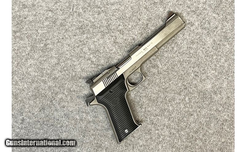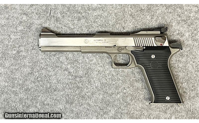 Description: AMT ~ AutoMag II ~ Chambered in .22 WMR. Firearm features a 6" barrel with fixed front raised blade sight, rear adjustable target sight. Included with the firearm is one 9 round magazine. .22 WMR SOLD Chambers: .22 WMR. Metal Condition: Good condition. Bore Condition: Good condition Barrels: 6" Barrel. Triggers: Semi-automatic. Weight: 2 lbs Sights: "Fixed front raised blade sight, rear adjustable target sight. Item Location: Acworth, GA |