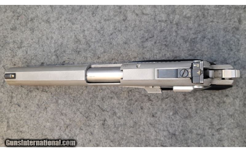 Description: AMT Automag III in .30 Carbine. This firearm is in good overall condition with minor blemishes and wear on the frame. When safety is engaged it covers the firing pin allowing the hammer to be dropped. Single action only. Comes with 4 8 round magazines. .30 Carbine SOLD Chambers: .30 Carbine Metal Condition: Good condition with some minor blemishes and wear. Bore Condition: Shiny with good rifling. Barrels: 6.3 Triggers: "Curved smooth trigger, Single action Stock Dimensions: 10¾" OAL Weight: 2 lbs 10 oz Sights: "Adjustable iron sights, 3 dot, Square notched rear and square front post. Item Location: Wichita, KS |