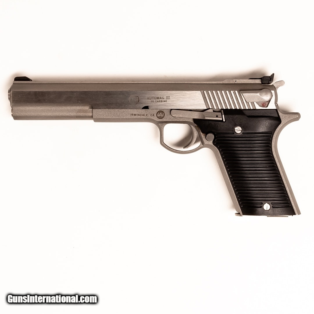 Description: Guns Listing ID: 608331 For sale is an Automag III. This model is chambered in 30 carbine and is in excellent condition! SOLD Manufacturer: AMT Model: AUTOMAG III Caliber Info: .30 CARBINE Condition: Used - Certified Barrels: 6.3 BARREL Finish: STAINLESS |