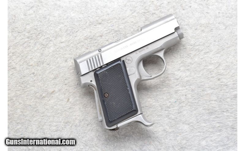 Description: SOLD Caliber Info: .380 ACP Chambers: Semi-Auto 6 round magazine. Metal Condition: Fair with many handling marks. Wood Condition: Fair. A piece is missing right side at the top. Bore Condition: Good. Barrels: 2.5 inch barrel with a rear serrated stainless steel slide. Triggers: Solid. Stock: Checkered black polymer. Weight: 17 oz. Sights: Blade front. Integral notch rear. Item Location: Richfield, WI |