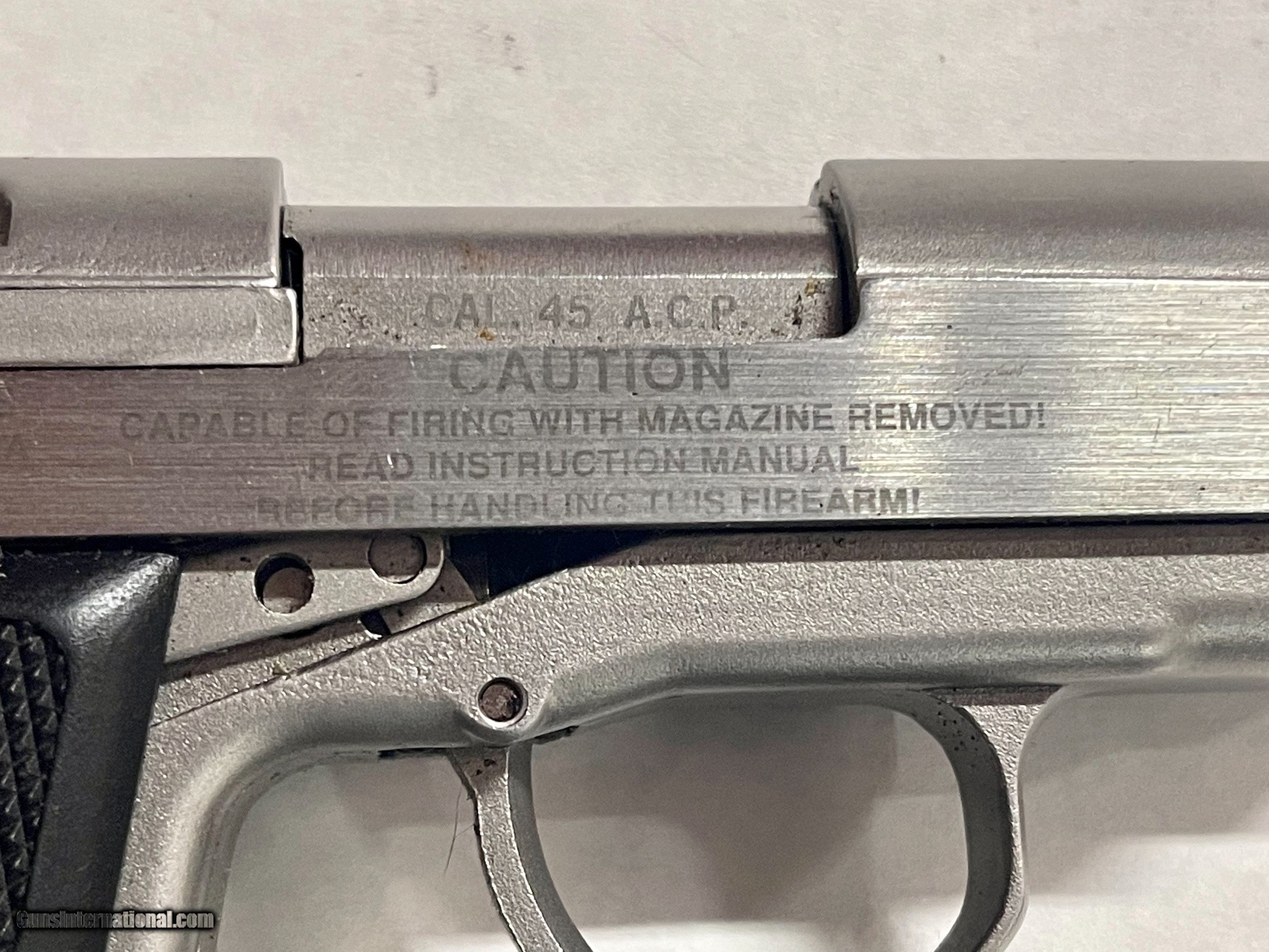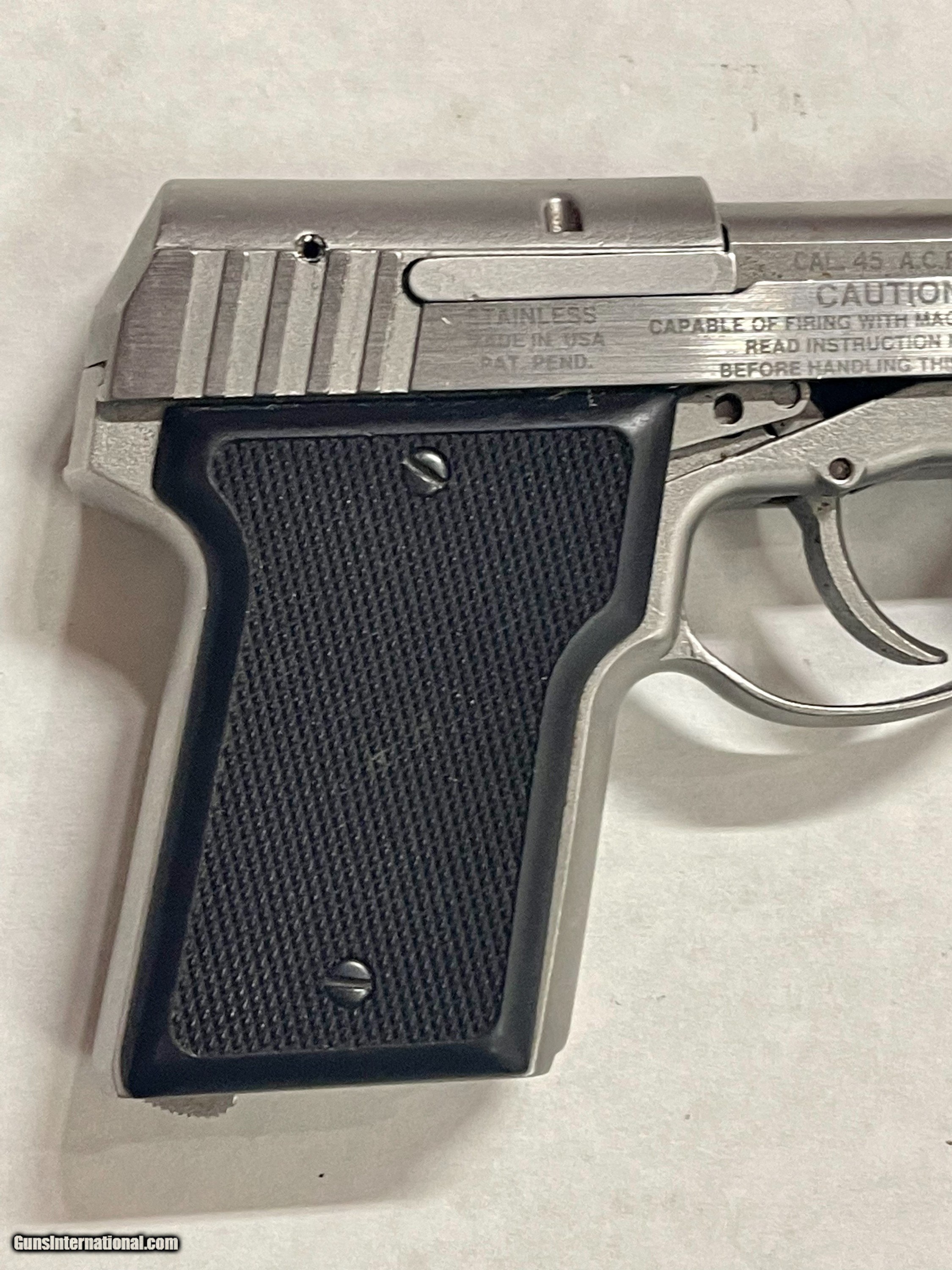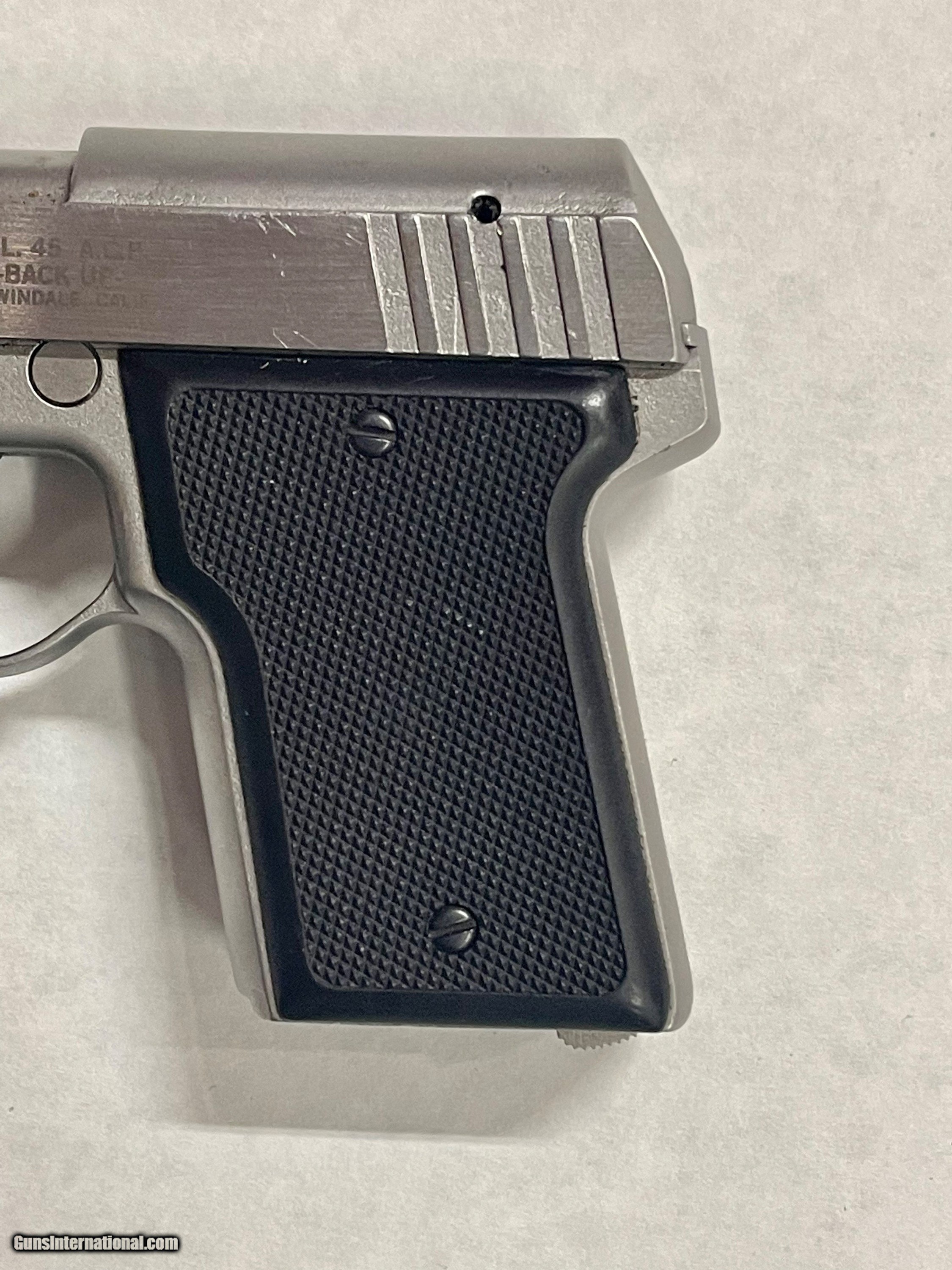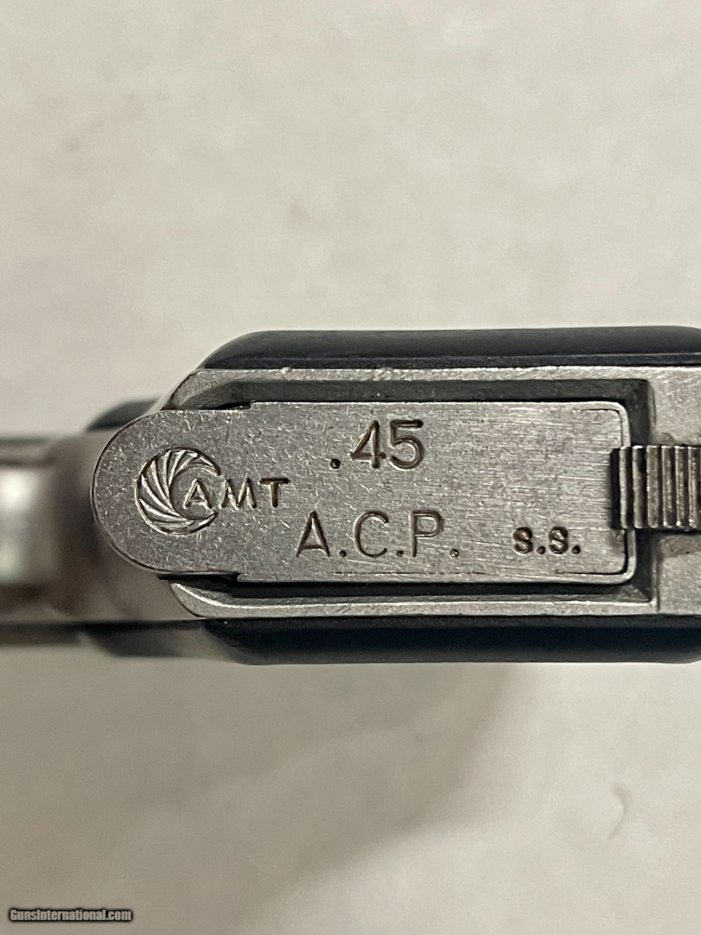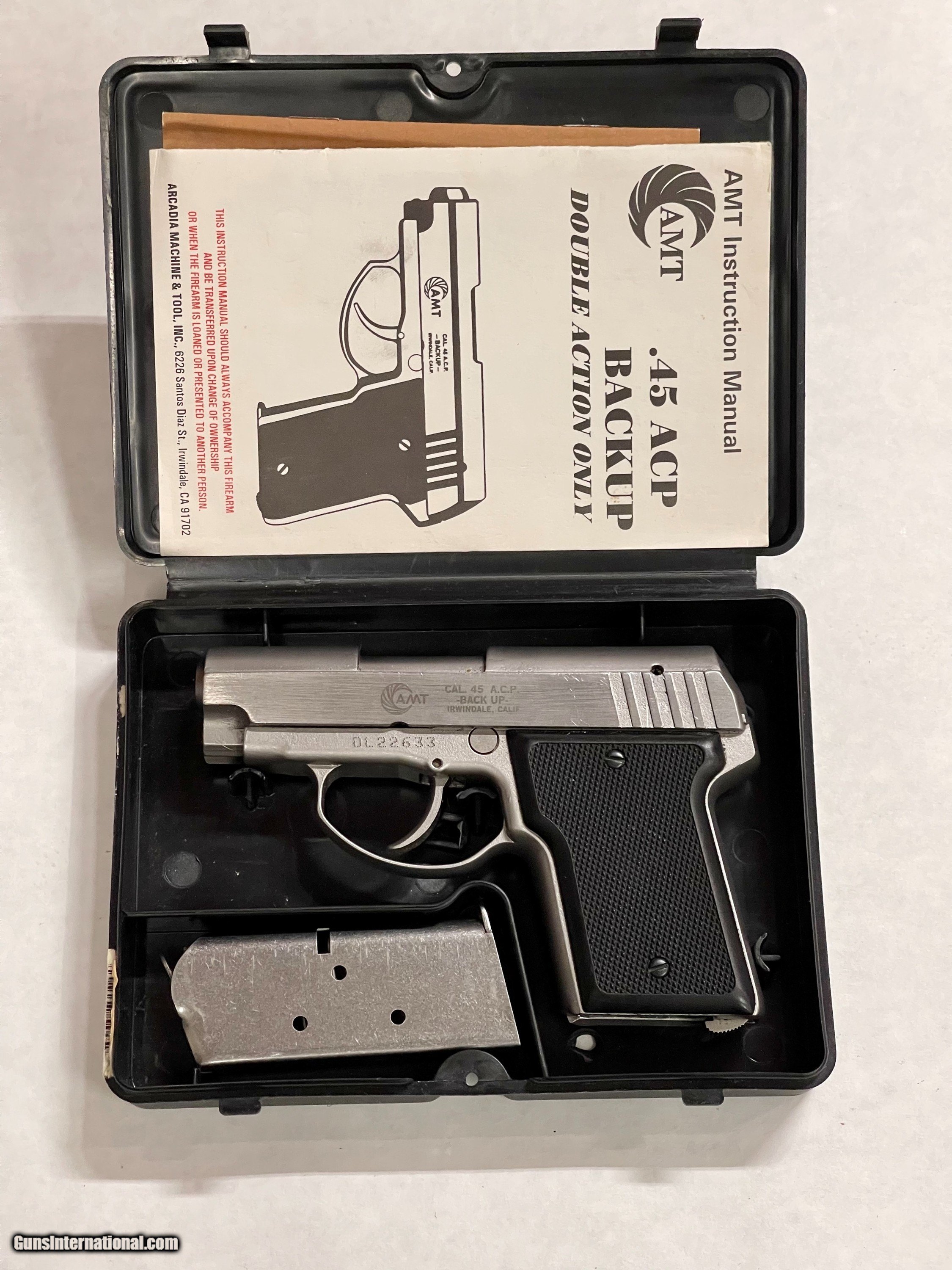Description: AMT “Back Up” .45 With Original Box and Paperwork Manufacturer: AMT Model: Backup Action: Semi Auto Caliber: 45 ACP Bore: Clean Barrel Length: 3 inches Finish: Stainless Grips/Stock: Factory This is a AMT Backup, Semi Auto Pistol chambered in 45 acp. It is an all stainless steel pistol. The barrel is 3 inches long with a clean bore. It is double action only, factory grip panels and heel magazine release. The finish is in great shape with light signs of use. It comes with one magazine and paperwork shown all in the factory box. This is a great hide out but powerful gun favored by law enforcement. ****WE ARE ALWAYS BUYING AND ARE VERY EXPERIENCED IN ESTATE SALES TOO. LET US KNOW HOW WE CAN HELP!**** PAYMENT: -Payment must be recieved within 10 days of purchase. 3% additional charge for credit card processing. SHIPPING & HANDLING: -$30 for handguns and $45 for long guns SHIPPING FIREARMS: -Firearms shipped to FFL dealer only -We will ship upon receipt of payment and signed legible copy of dealer's FFL via Fax, Mail or E-mail. SALES TAX: -Florida residents add 7.5% sales tax. PRODUCT: -We operate a gun shop which means that every item is for sale in our store and it may have already been sold when you contact us. NEW GUNS: -On new Firearms we may use file photos instead of the actual gun. CONTACT: -Contact me with any and all questions. We want you to be happy with your purchase. PHONE #: (904) 271-5270 STORE HOURS: Mon-Fri: 11p-6pm Sat: 9a-3p BUYER: -It is Buyer's responsibility to ensure that the weapon is LEGAL to own in your city/state. SOLD Handgun Caliber: .45 ACP (.45 Auto) |