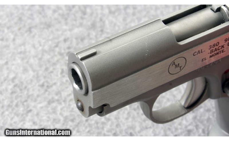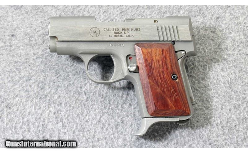 Description: The AMT Backup .380 ACP is a good pistol for deep concealment and carry. .380 ACP SOLD Metal Condition: "Very good with wear on the sharp edges, scratches and nicks Bore Condition: Very good with signs of use Barrels: 2.5 inch barrel Triggers: Single action Weight: 18 oz. Sights: Square notch rear sight with blade front Item Location: Lehi, UT |
