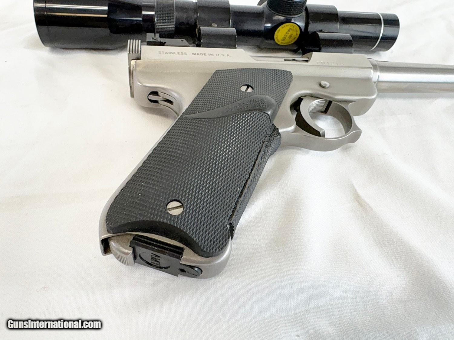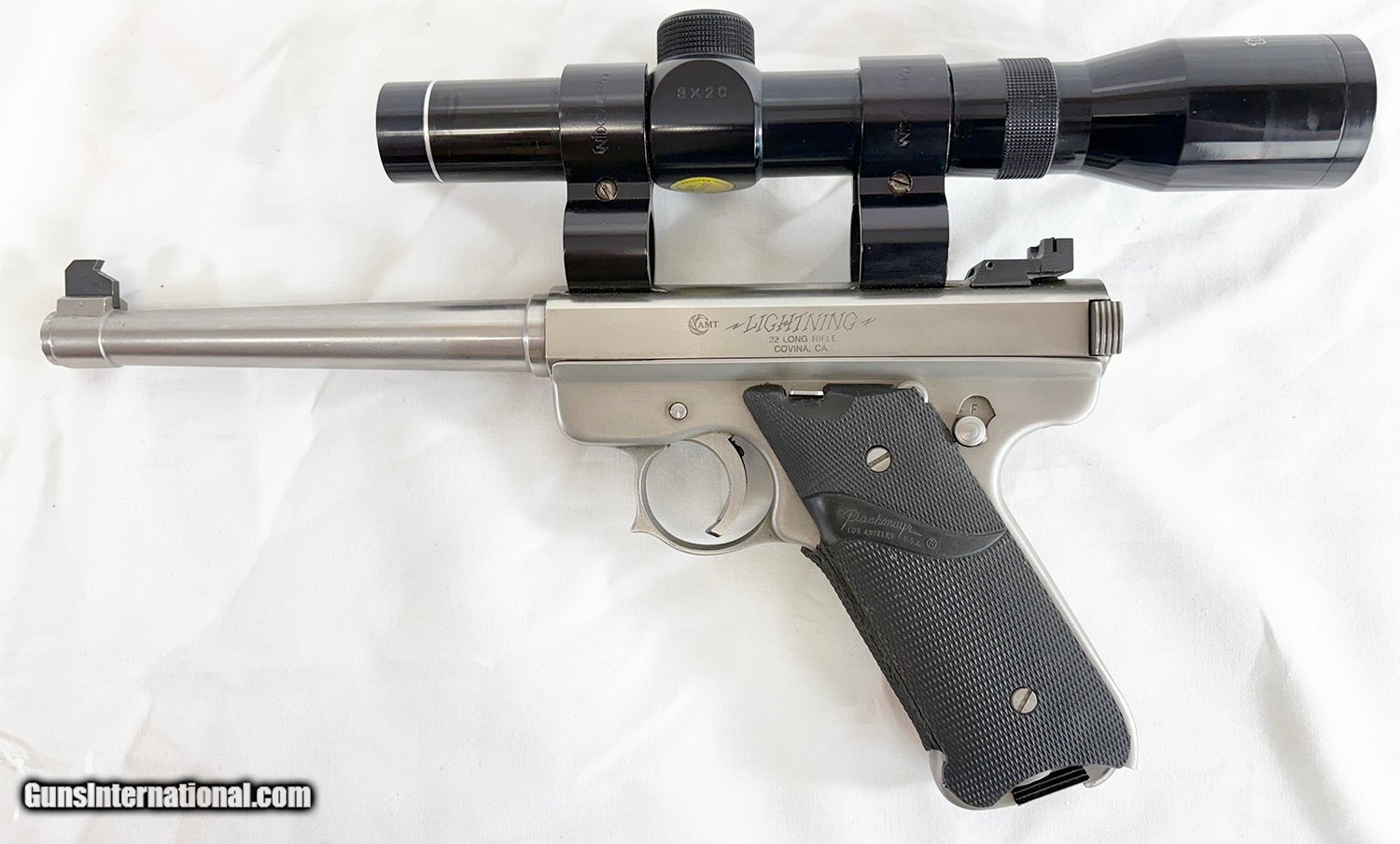 Description: Guns Listing ID: 577266 Up foris an AMT Lightning, chambered in.22 Long Rifle and featuring a six-inch barrel with a full stainless-steel construction. Manufactured by Arcadia Machine & Tool (AMT), the Lightning was a high-quality clone of the Ruger Mark II—so much so that Ruger sued to have it pulled from production. That legal battle ultimately makes these pistols limited, collectible, and impossible to reproduce today. This example is in excellent condition, with a sharp bore and tight mechanical function. Wears a Tasco 3x20 scope in Windowview mounts and comes with one factory magazine These pistols are only getting harder to find—especially in this condition. Good luck to all s, and thanks for looking! Please see our other s for more rare, unusual, vintage, and desirable pieces. SOLD Manufacturer: AMT Model: Lightning Caliber Info: .22 LR Condition: Used - Non-Certified Barrels: 5" BARREL Action: SEMI AUTOMATIC Finish: BRUSHED STAINLESS |