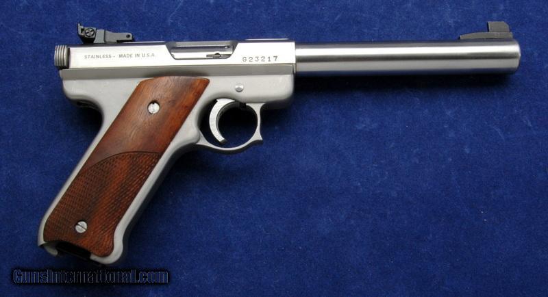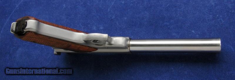 Description: Available today is a neat pistol that you very rarely see in this condition. These AMT Lightnings were not made for very long, so not that many were made. Very nice Clark trigger, receiver is grooved for optics, all stainless steel, adjustable Millet rear sight, 6" barrel and checkered wood grips. Includes the box, which is a little tattered, so we wrapped it up to keep it all intact. Has the plastic insert in there as well. This is in exceptional condition, and the owner said her husband hadn't shot a gun in 30 years, and rarely shot before then, just liked to buy them and put them away. So this has hardly been used. Match it up with your Auto Mag! $35 shipping to the lower 48 and 3% surcharge for using a CC. SOLD |