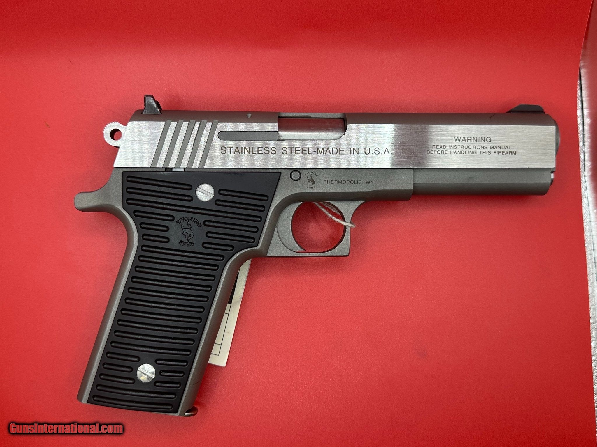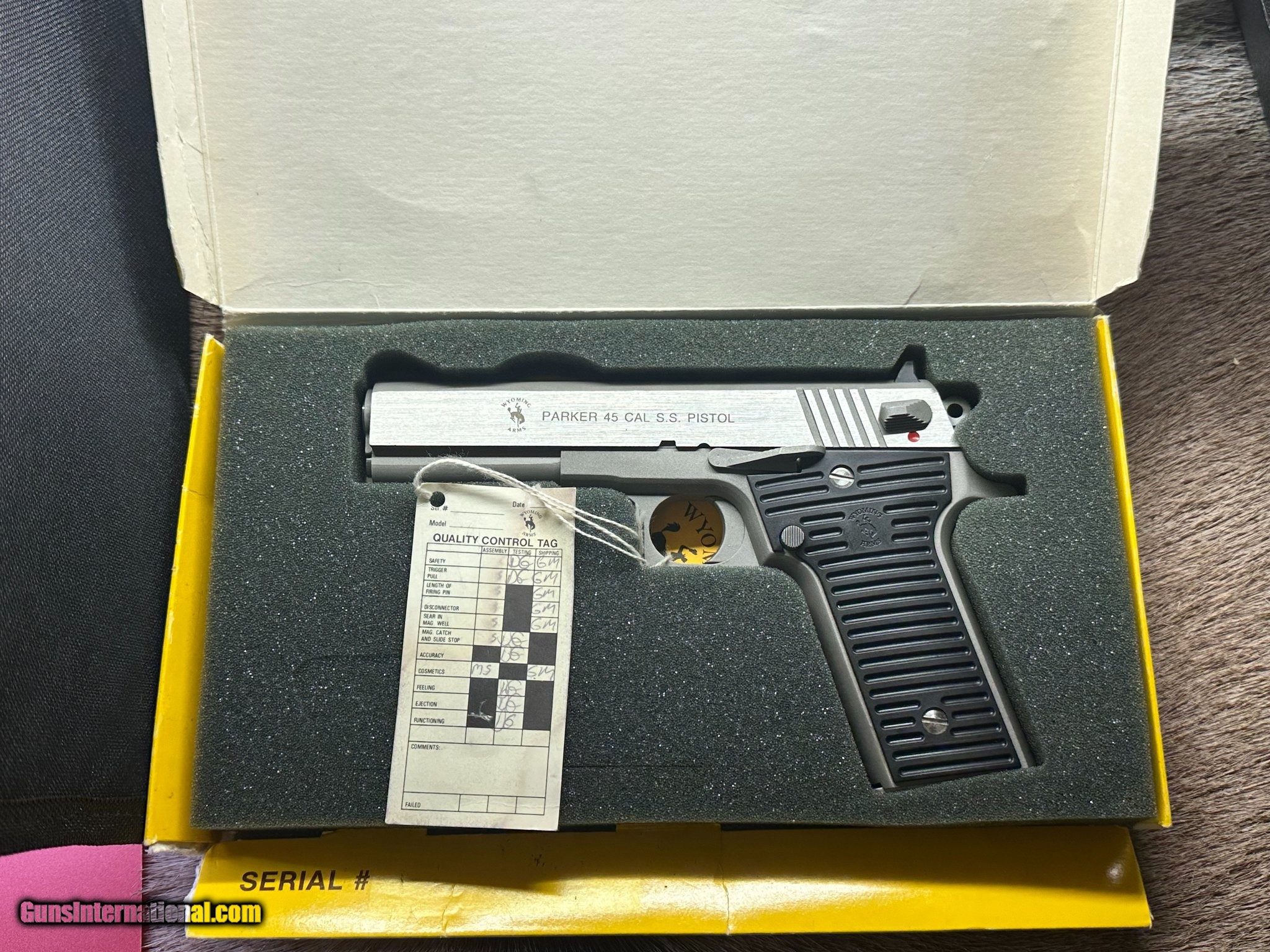 Description: Guns Listing ID: 599795 Like new in box with factory tag still hanging. Wyoming Arms (AMT) Parker 45ACP . Very 1911ish with a slide mounted saftey. Manufacturer: WYOMING ARMS Model: Parker Caliber Info: .45 ACP Condition: Used - Non-Certified Barrels: 5" BARREL Action: SEMI AUTOMATIC Finish: black & stainless Price: $799.99 Contact Seller |