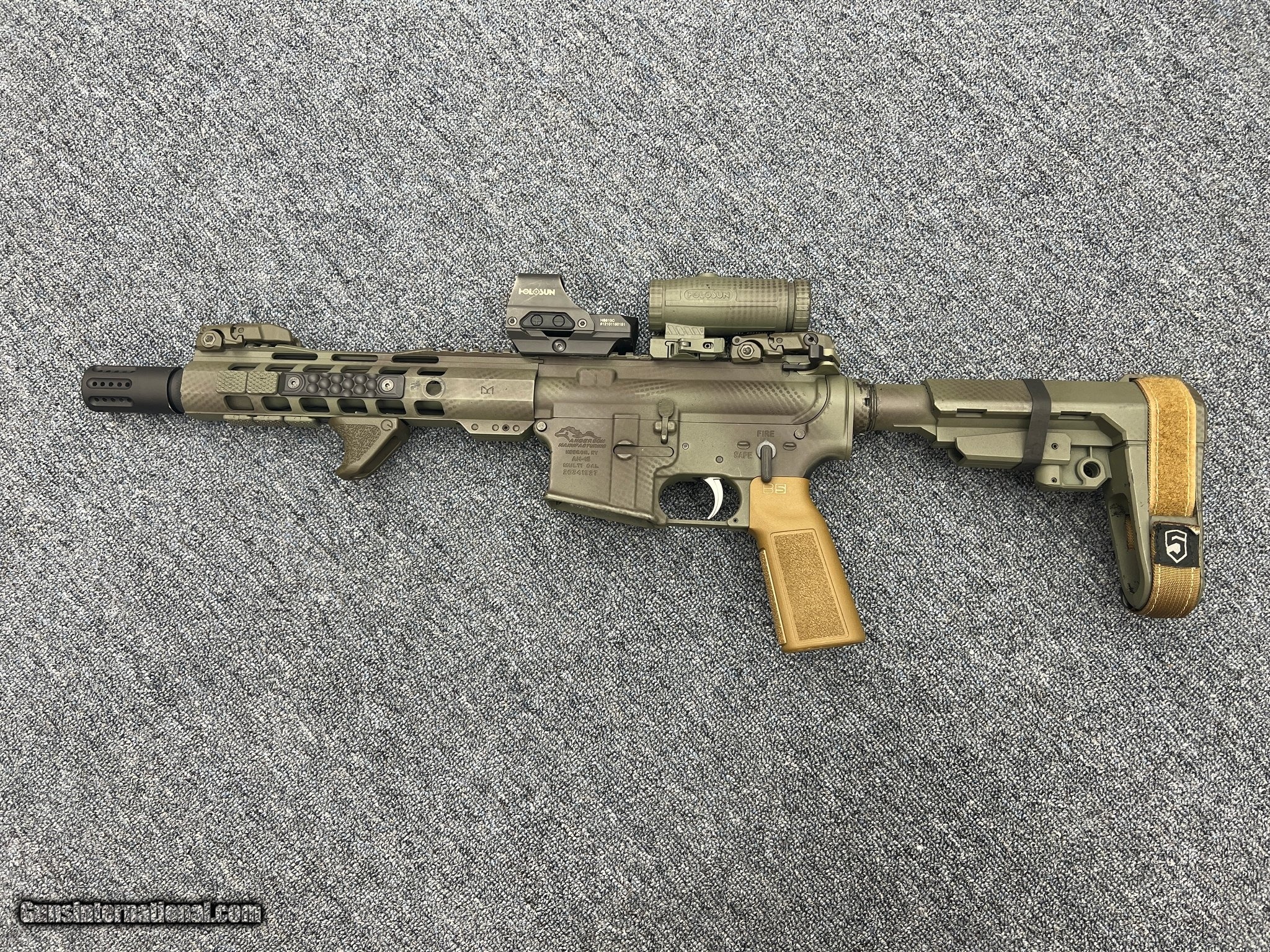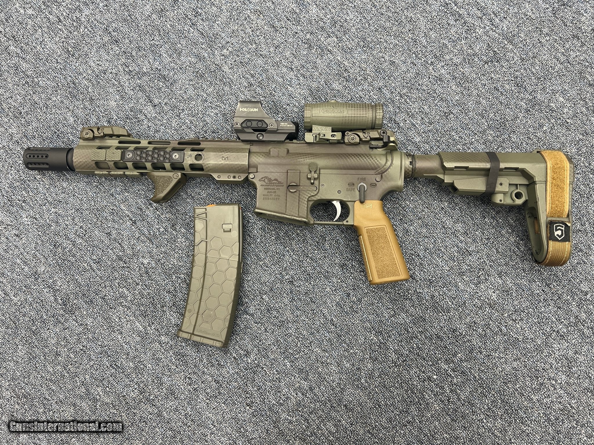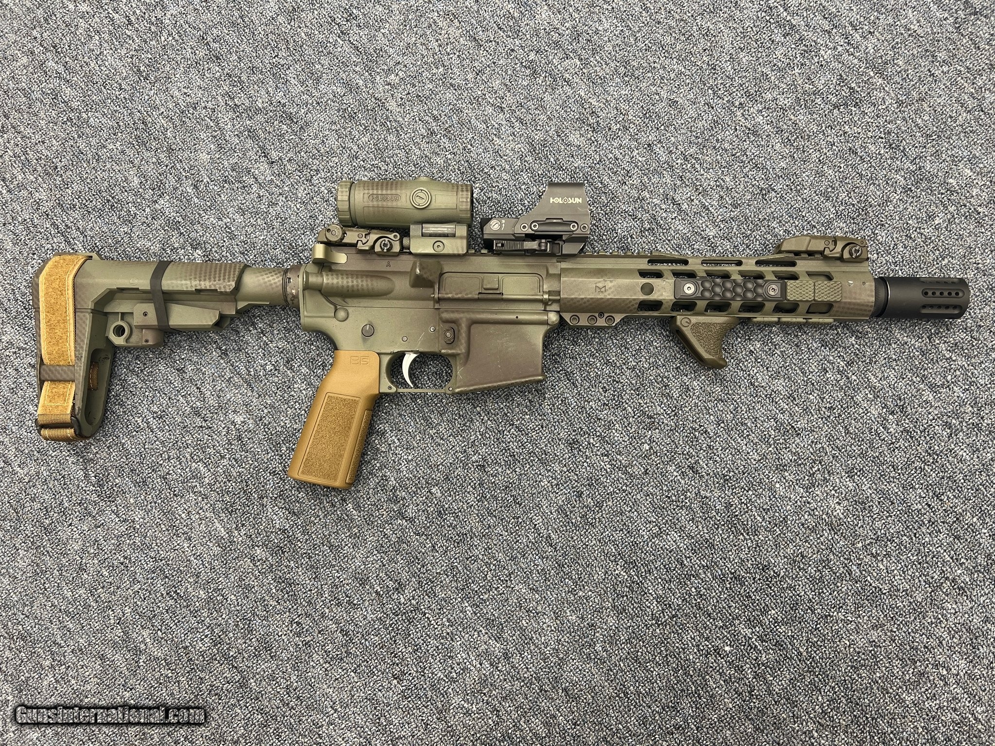 Description: Guns Listing ID: 1371863 This AR pistol has a 10in barrel with a m-lok hand guard. It has a Emissary hand stop, B5 Systems grip and Magpul iron sights. It comes with a Holosun 510 red dot and Holosun 3x magnifier. Custom paint job and one 30rd magazine included. SOLD Manufacturer: ANDERSON MANUFACTURING Model: AM-15 Caliber Info: 5.56X45MM NATO Condition: Used - Non-Certified Barrels: 10 BARREL Finish: CAMO |