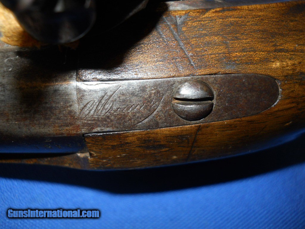 Description: ORIGINAL 1811 DATED FLINTLOCK PISTOL MFG. BY MAUBEUGE. 9 1/2" OVERALL, 5" BARREL. BORE IS CLEAR AND SMOOTH, VERY LIGHT SURFACE OXIDATION THAT WILL CLEAN, VIRTUALLY NO PITTING. ORIGINAL SMOOTH METAL SURFACES HAVE TONED TO AN EVEN GRAYISH BROWN PATINA WITH SOME FRECKLING. NUMEROUS FACTORY MARKINGS ON VARIOUS PARTS. WALNUT STOCK IN FINE CONDITION, LIGHTLY CLEANED AT SOME POINT, NO CRACKS, FEW EXPECTED HANDLING MARKS WITH TRACES OF CARTOUCHES ON LEFT FLAT. EXCELLENT ACTION, CRISP & ROBUST WITH 2 CLICK HAMMER THROWS PLENTY OF SPARK. NICE EXAMPLE OVERALL THAT APPEARS IN SERVICEABLE CONDITION, AS PICTURED. SEE PICS # 15 & 16 FOR BRIEF HISTORY. ALL MY ITEMS ARE STILL AVAILABLE IF NOT PENDING SALE. CLICK SEE SELLERS OTHER ITEMS. SHIPS DIRECT TO BUYER ANYWHERE THAT'S OK. $20.00 S&H PRIORITY INSURED FOR $500.00 SOLD Antique: Yes Manufacturer: MAUBEUGE Model: 9 Caliber Info: .60 Bore: VERY GOOD Condition: VERY GOOD Metal Condition: ORIGINAL Wood Condition: VERY GOOD Bore Condition: SMOOTH Action: CRISP & TIGHT Stock: WALNUT |