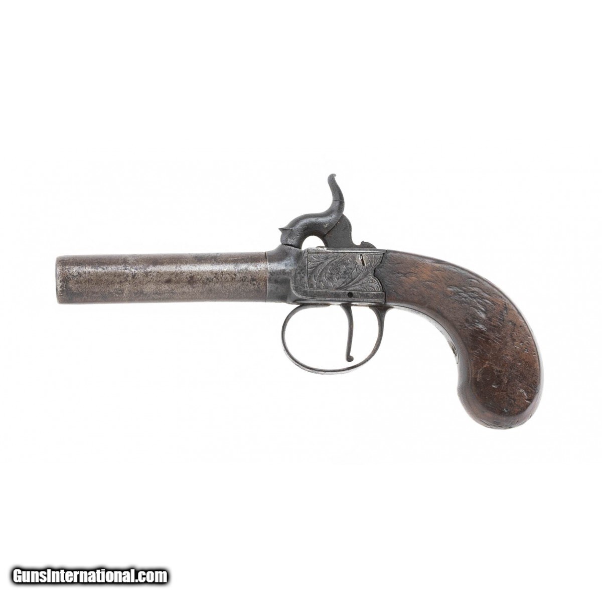 Circa 1830's. Lock is marked ""London"". Bottom of barrel has Birmingham proofs. Barrel is 3.25"". Action works. Nipple needs to be replaced. Metal has a mostly brown patina with surface etching. Fair overall condition.