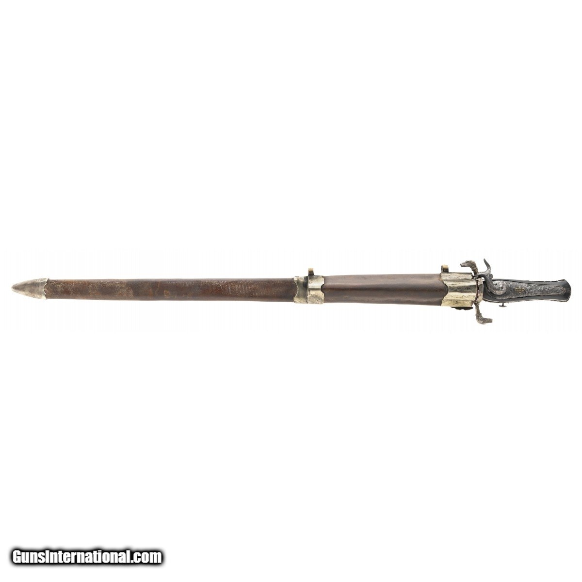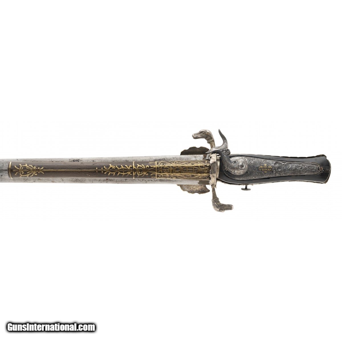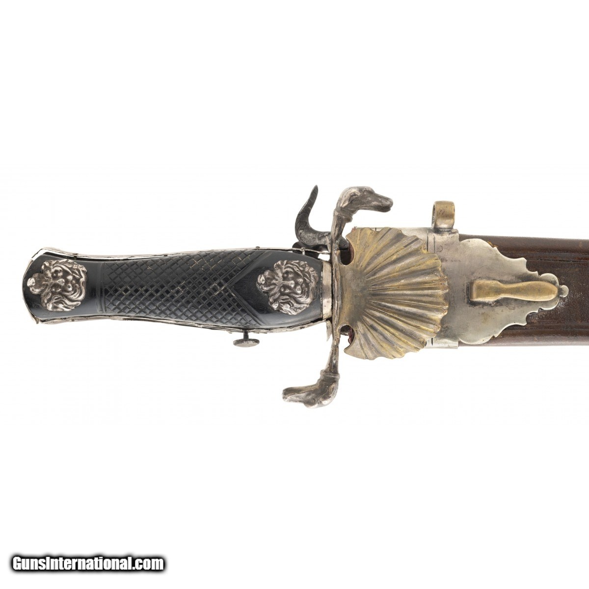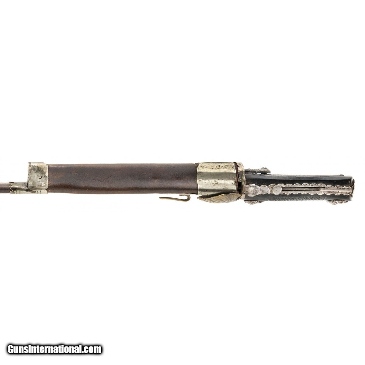 Description: "Blade has a 28" blade and is 33 ½" overall length. This Pistol sword is made of old components puts together not in the period. It comes with a very well made leather scabbard. SOLD |