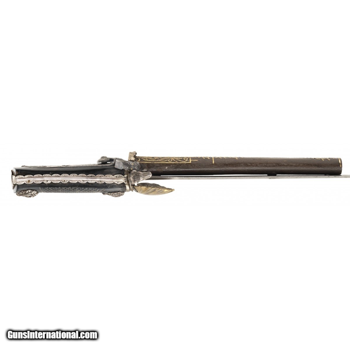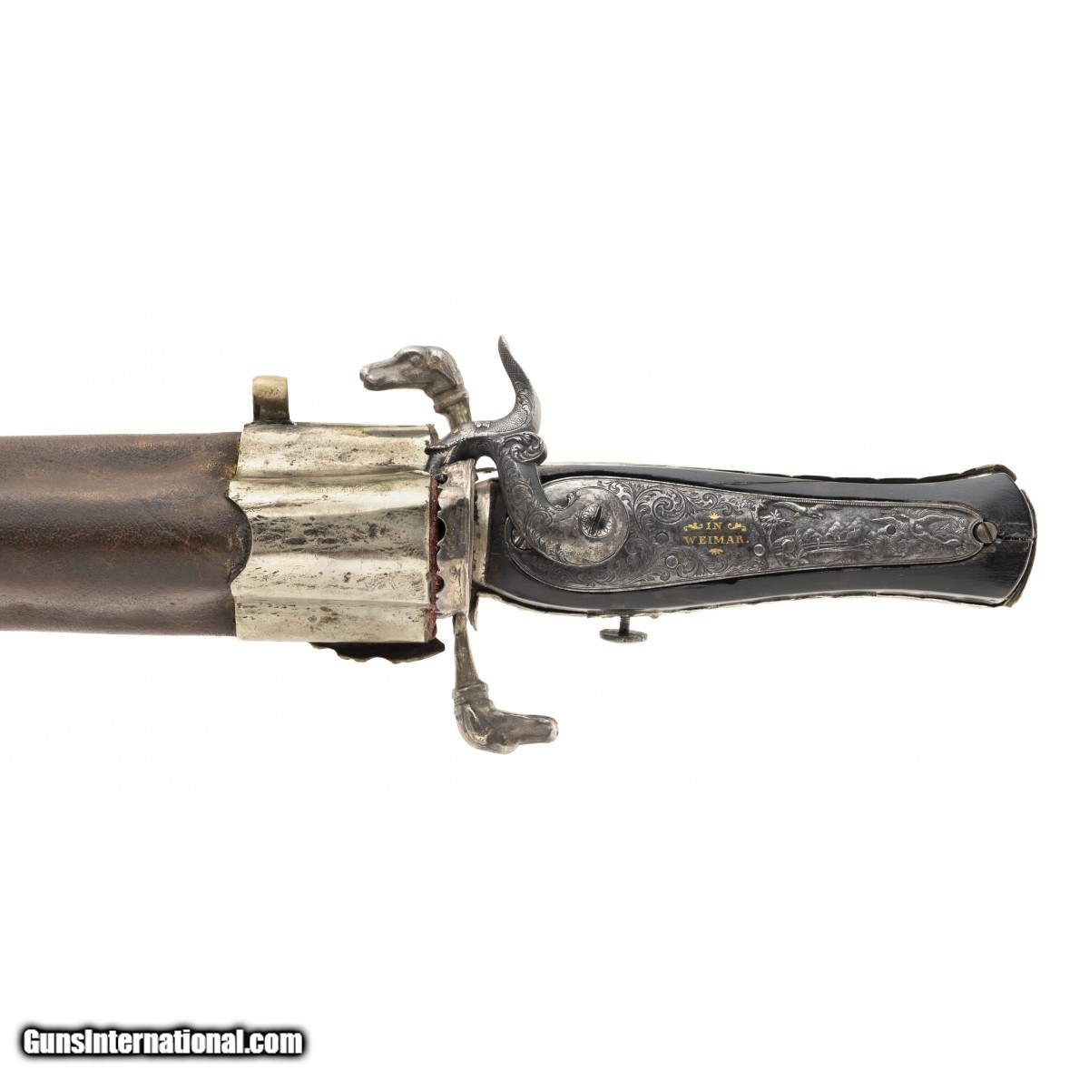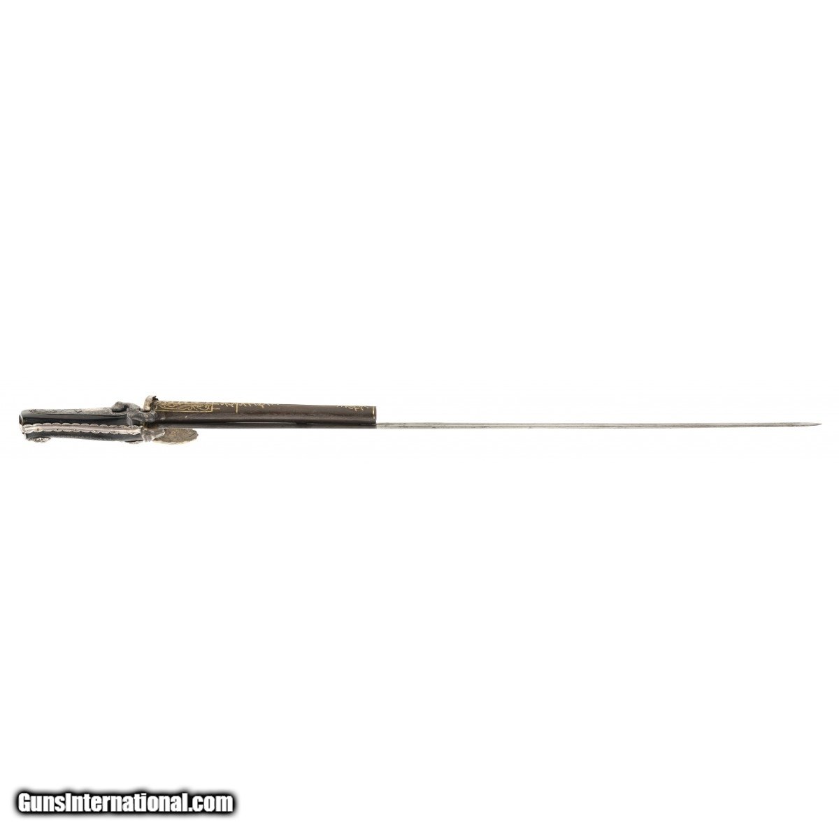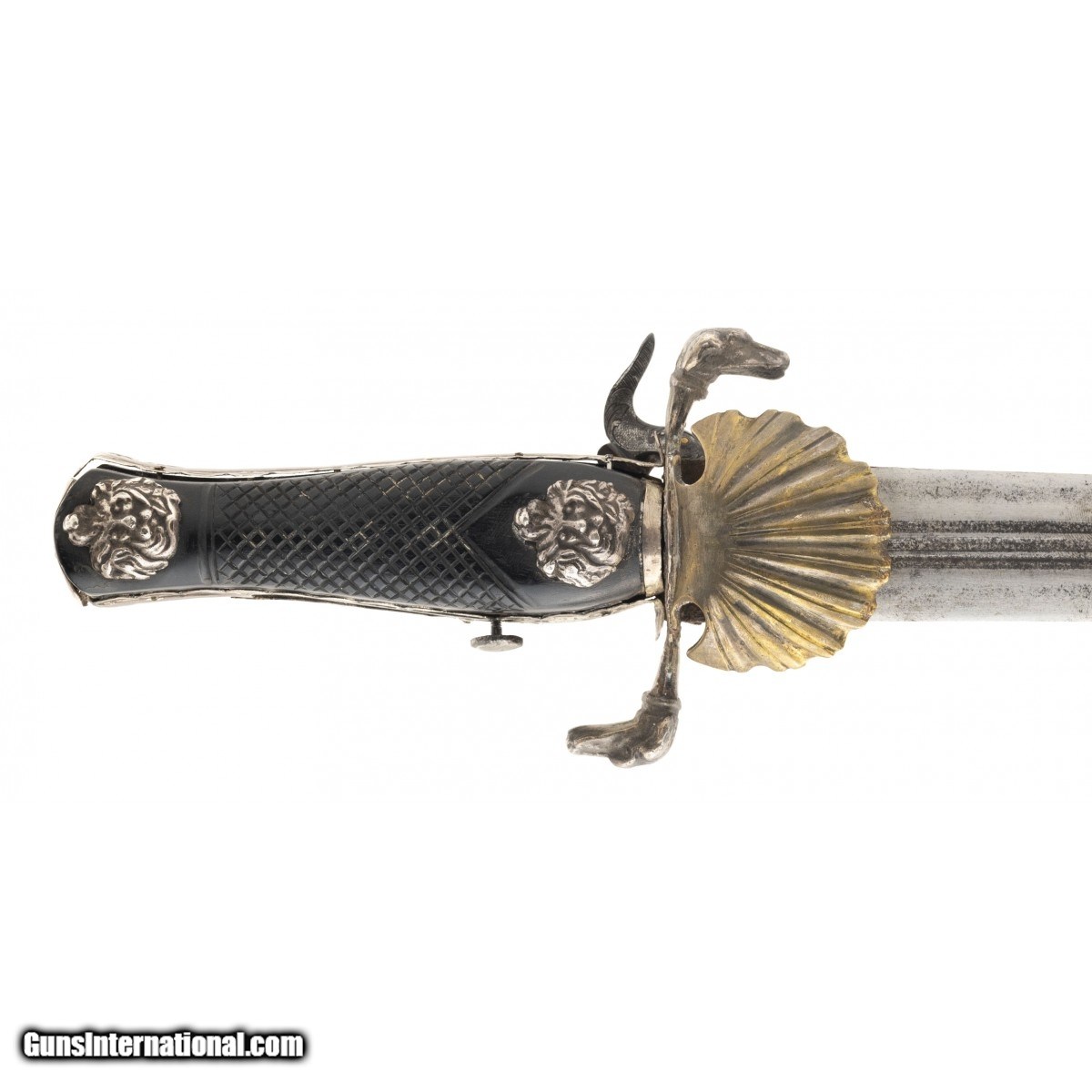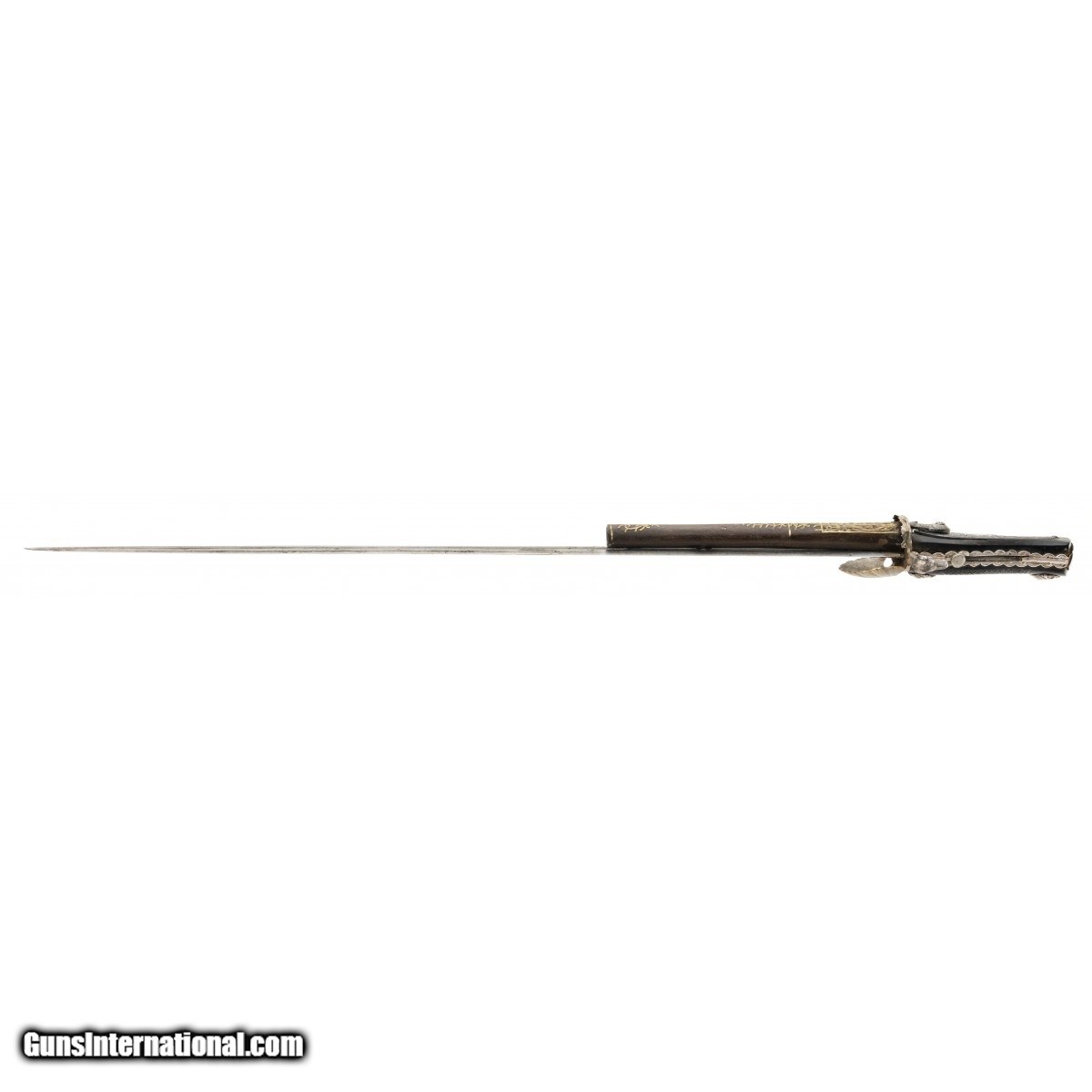 Description: "Blade has a 28" blade and is 33 ½" overall length. This Pistol sword is made of old components puts together not in the period. It comes with a very well made leather scabbard. SOLD |