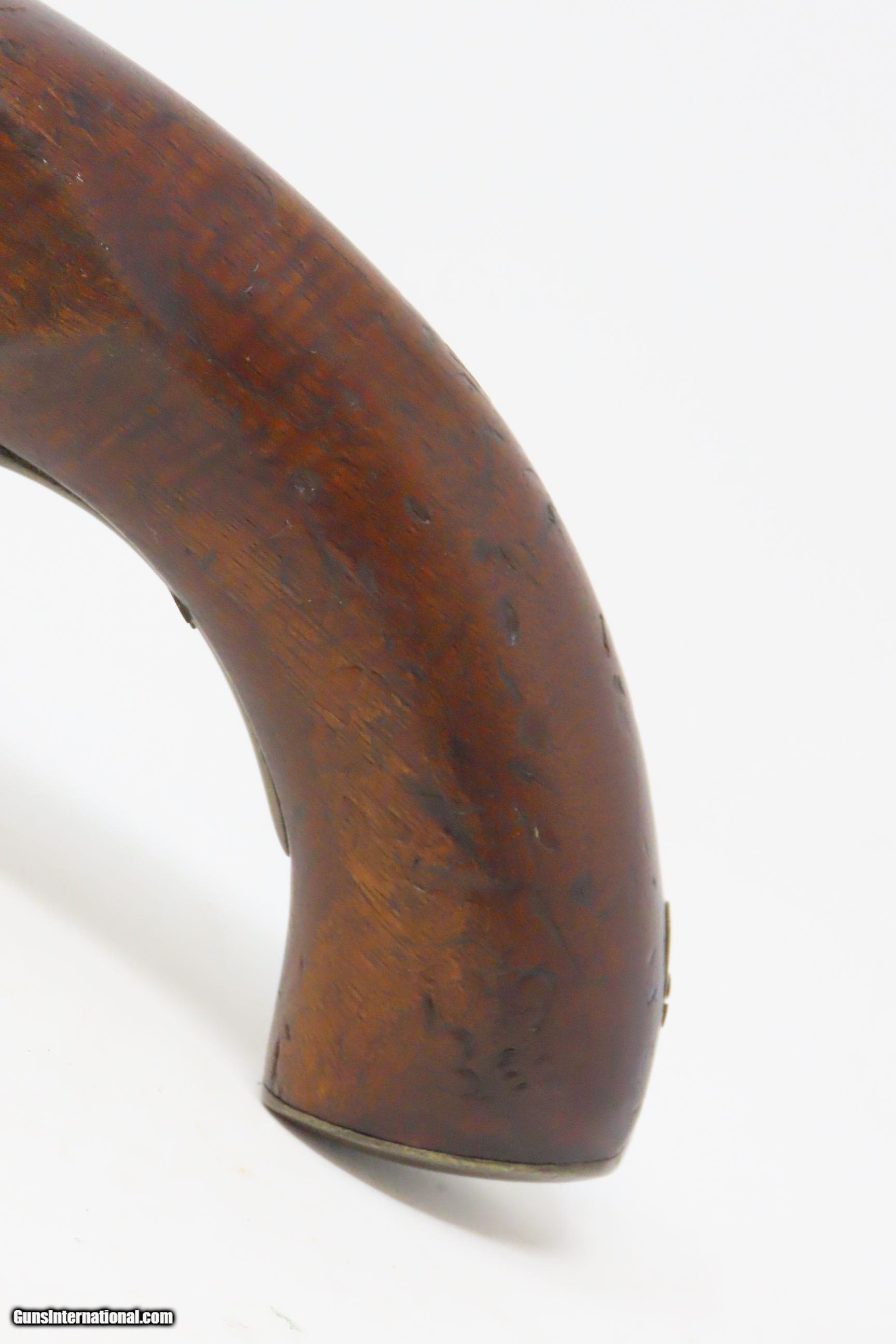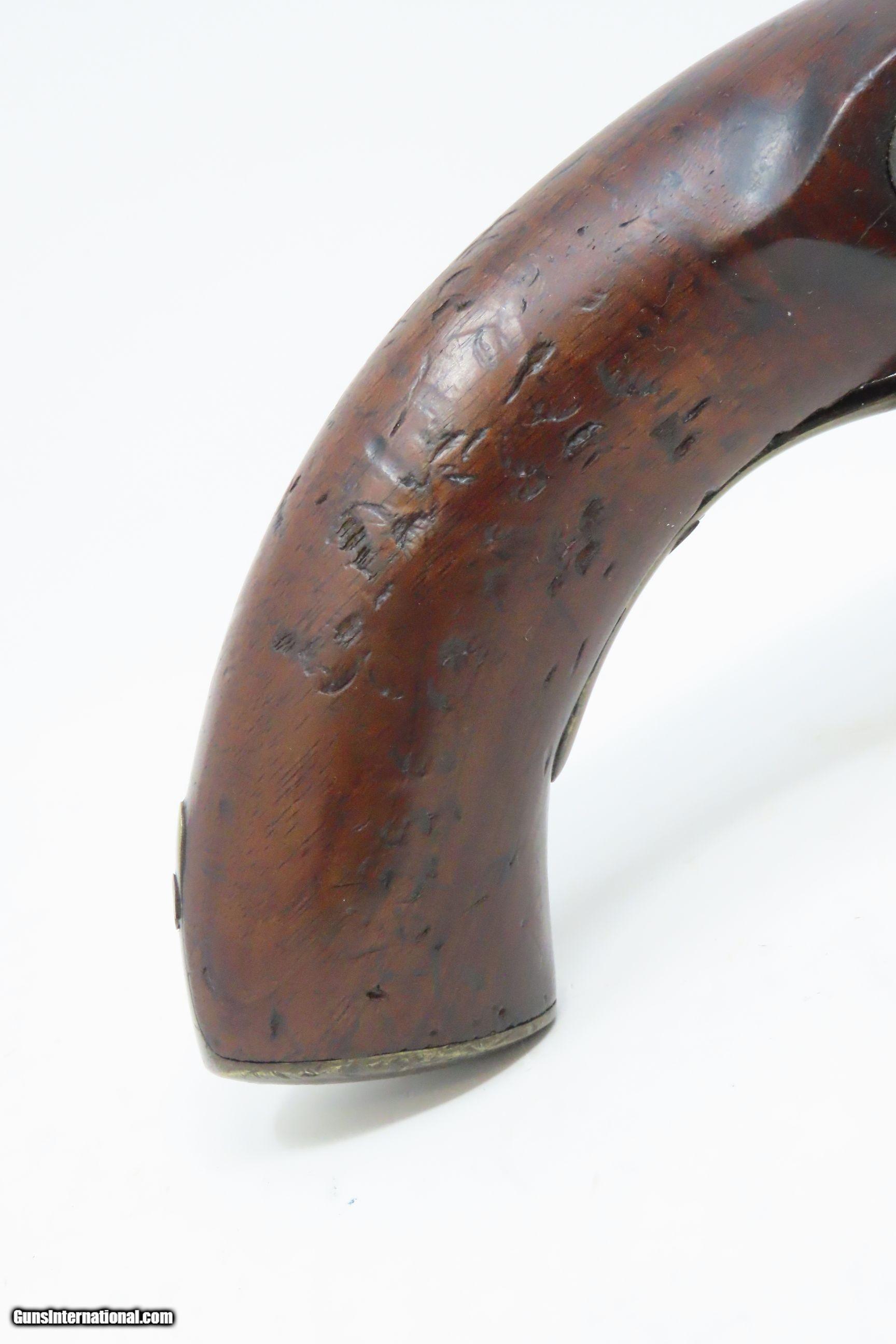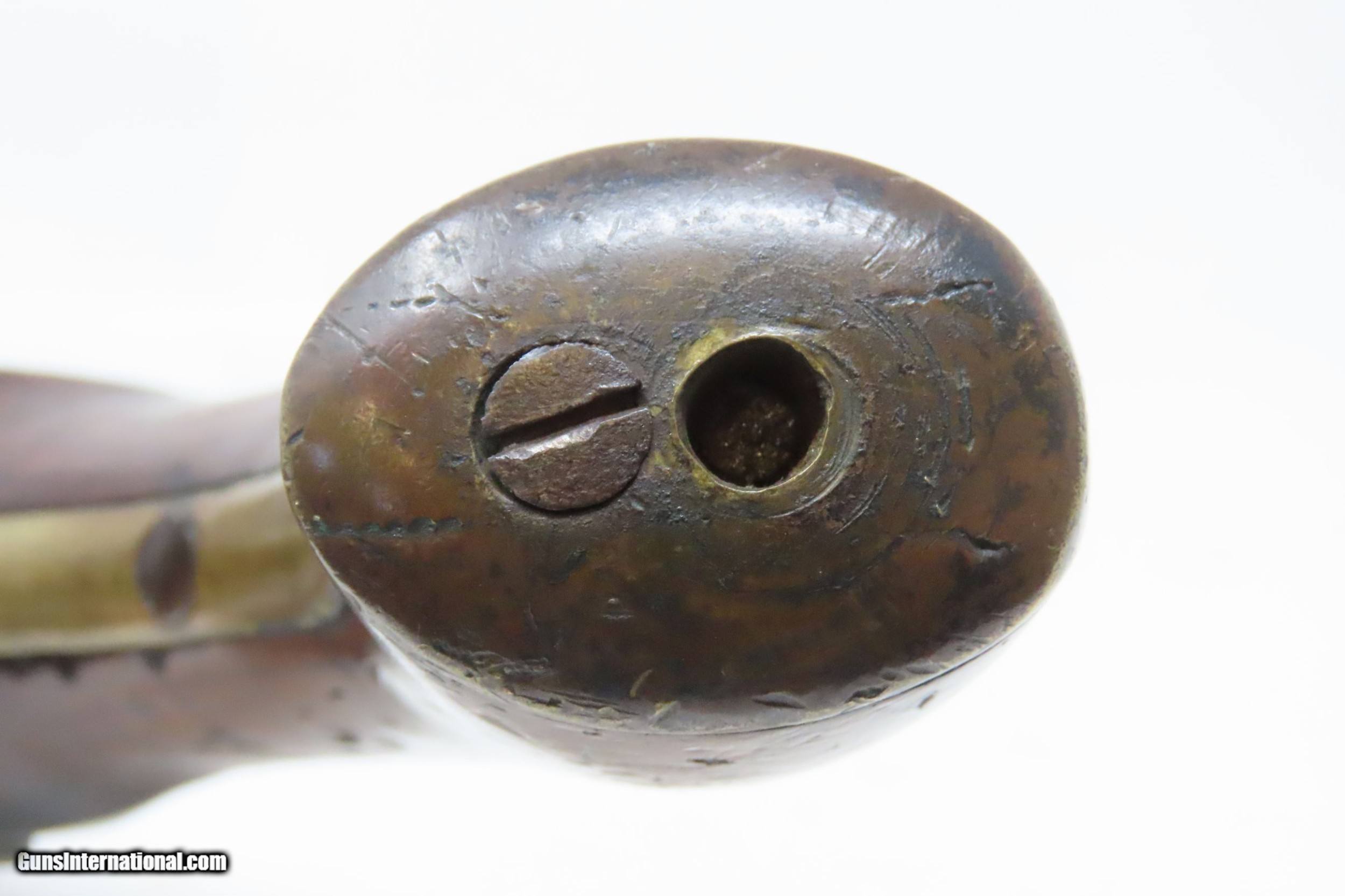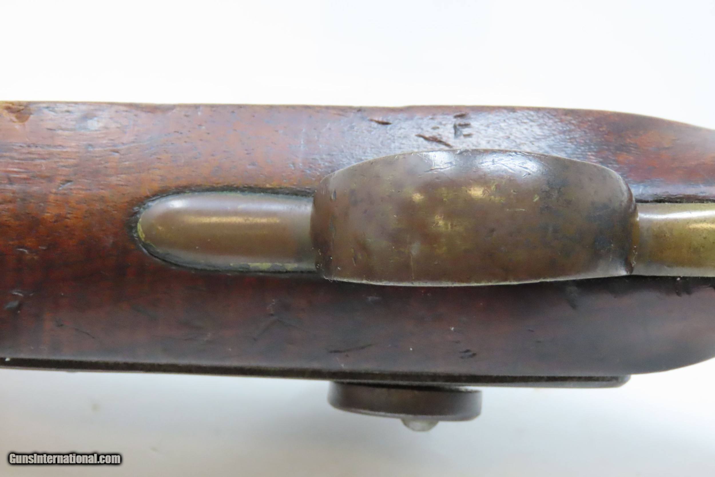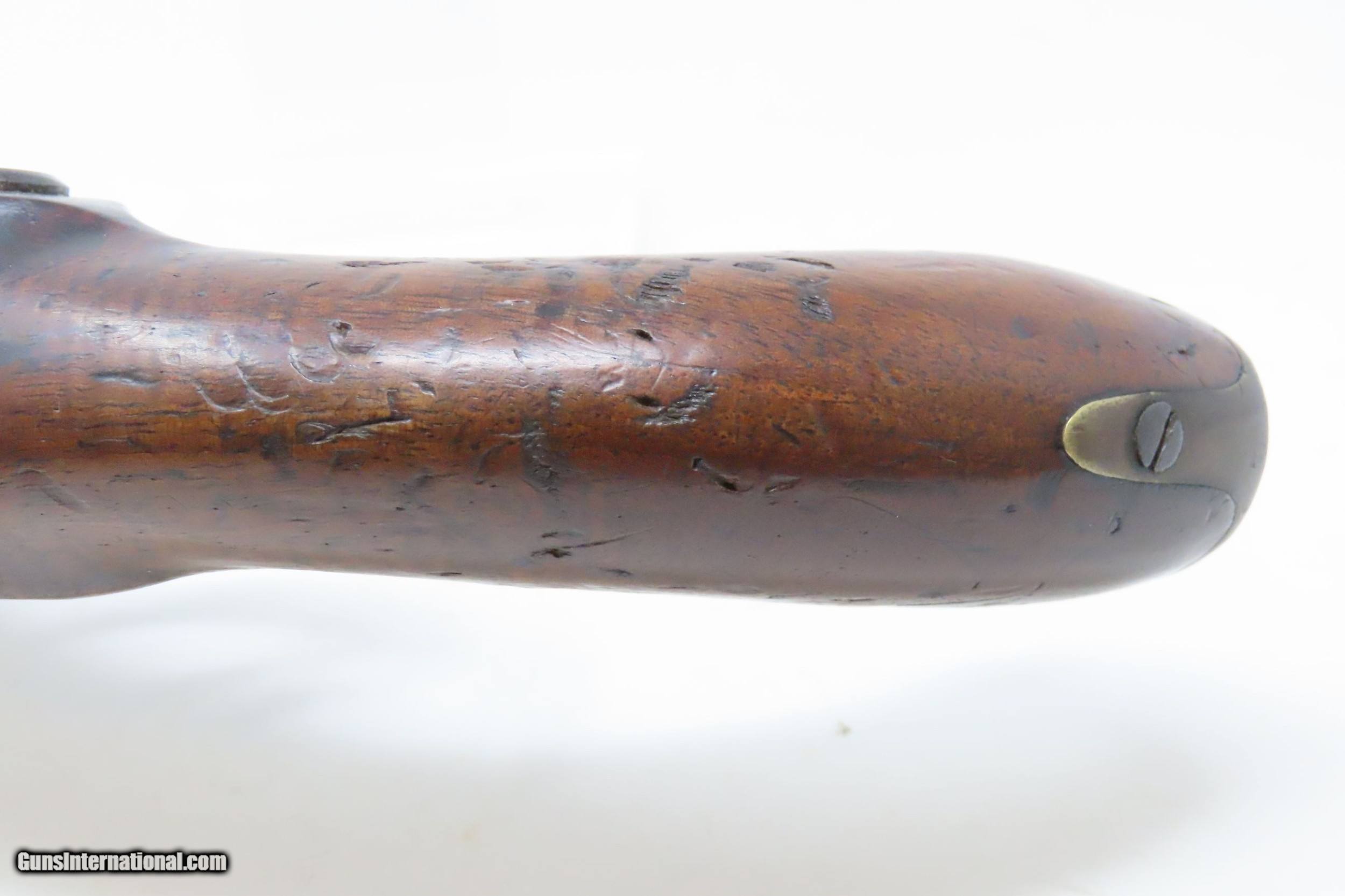 Description: 1840s British COAST GUARD Pistol by BARNETT .58 Percussion Minories Antique “BARNETT/MINORIES/LONDON” Here we present an antique British Coast Guard Pistol by Barnett of London, England, circa the 1840s. The lock plate is marked “BARNETT/MINORIES/LONDON". Minories is a parish and street in London. The Barnett name is often remembered for the large number of "Northwest" trade guns and "Chief Grade" firearms given to Native American leaders during the colonial era that often bear the name, but a number of arms for military service and some of higher quality for sale to European and Euro-American gentlemen including fowling pieces and pistols. The overall condition is very good. Original patina. Strong action. The bore is in good shape and remains clear. “HPV” is stamped on the left side of the stock. Solid stock/grip with expected wear (minor dents and dings). A neat martial pistol from London, England! Own the original! This is a legitimate antique and not a reproduction. Barrel is 5-7/8 inches. Caliber: .58 Percussion Overall condition as seen in photos. Very Fast. Very Safe. FREE SHIPPING WORLDWIDE. Delivered directly to your door by express mail! Guaranteed AUTHENTIC & Includes CERTIFICATE OF AUTHENTICITY. ancestryguns $1500 #217720 SOLD Antique: Yes |