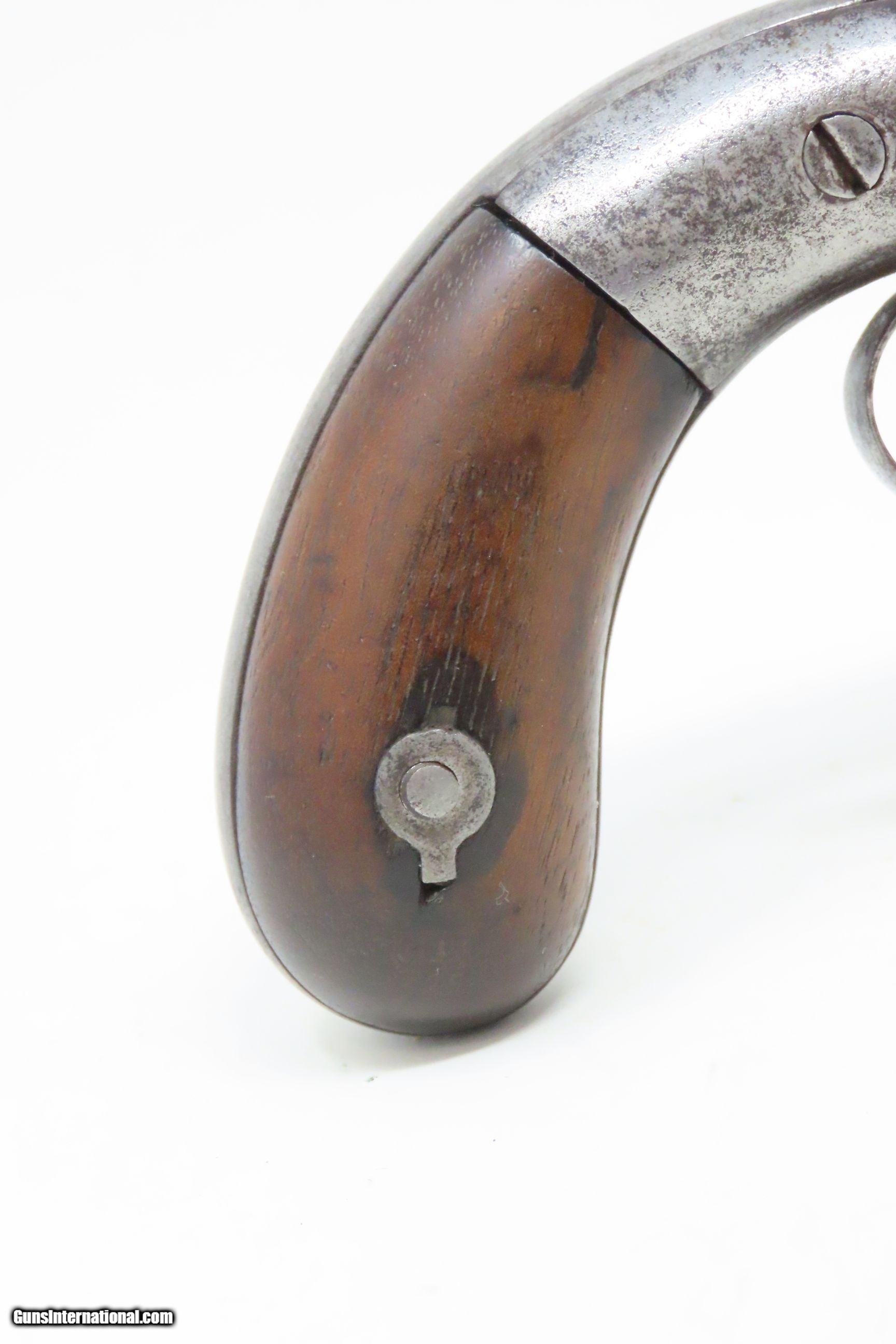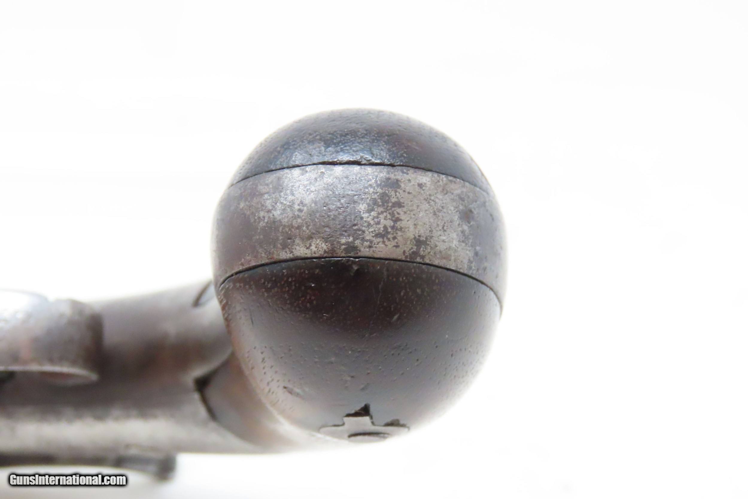 Description: Antique 1846 Dated EUROPEAN Percussion .34 Cal. SELF DEFENSE Belt Pistol EUROPEAN Self-defense BELT/MUFF Pistol! Here we present an antique European Percussion Pocket Pistol, made circa 1846, likely in either London or Liege. Both London and Liege have long been manufacturing centers for the world’s arms trade. This small type of pistol was very popular from the 18th and into the 19th Centuries in Europe, as well as the colonies that features a .34 caliber bore that would have been worn on the belt or holstered as it was possibly carried into battle after being privately purchased. This is a neat old pistol and one can easily imagine the sight of its bore would certainly be a deterrent to would be scoundrels. It was of course made primarily for self-defense, especially in cities or traveling around the countryside. This little self-defense pistol would have been most at home in the pocket of anyone in the busy cities of London, Liege, or Paris during the tumultuous times of the mid-1800s. These type pistols are small, light and simple. The “Pocket Pistol” name says it all. They were the "Saturday Night Specials" of the 16th-19th century. Before the Deringer, they were "Gentleman's" or "Muff Pistols", typically, a smaller pistol that was easily concealed. They were favored among the gentry and women because of these traits. Men would carry them concealed in a waistcoat pocket and women would hide them in a hand muff. The overall condition is good. Simple, yet strong action. Good bore, has aged. Both grips are in good shape with an average amount of handling wear (dents and dings). “1846” dated barrel top. Own the original! This is a legitimate antique and not a reproduction. Barrel is 6-1/2 inches. Caliber: .32 Percussion Overall condition as seen in photos. Very Fast. Very Safe. FREE SHIPPING WORLDWIDE. Delivered directly to your door by express mail! Guaranteed AUTHENTIC & Includes CERTIFICATE OF AUTHENTICITY. ancestryguns $900 #217795 SOLD Antique: Yes |