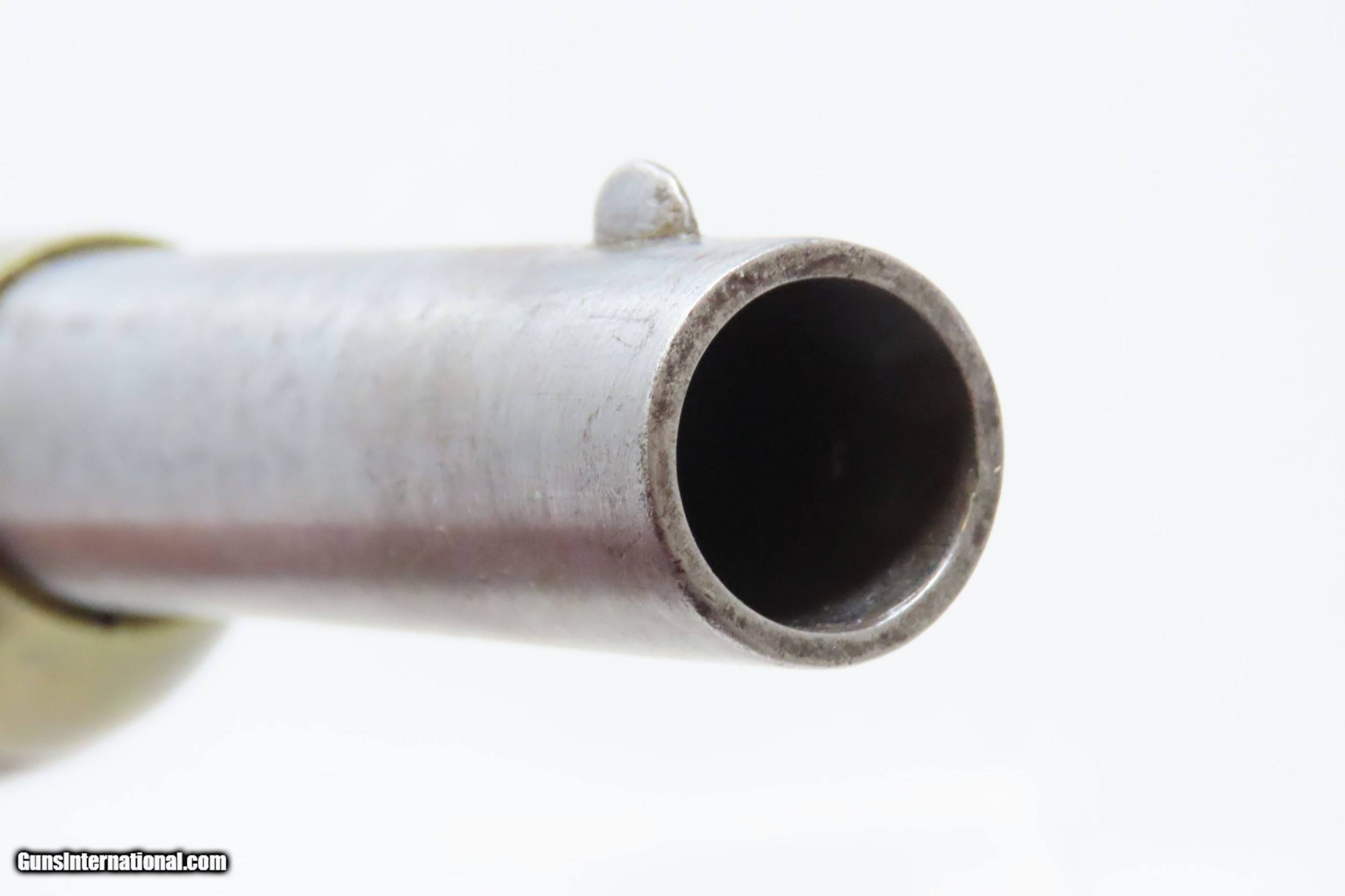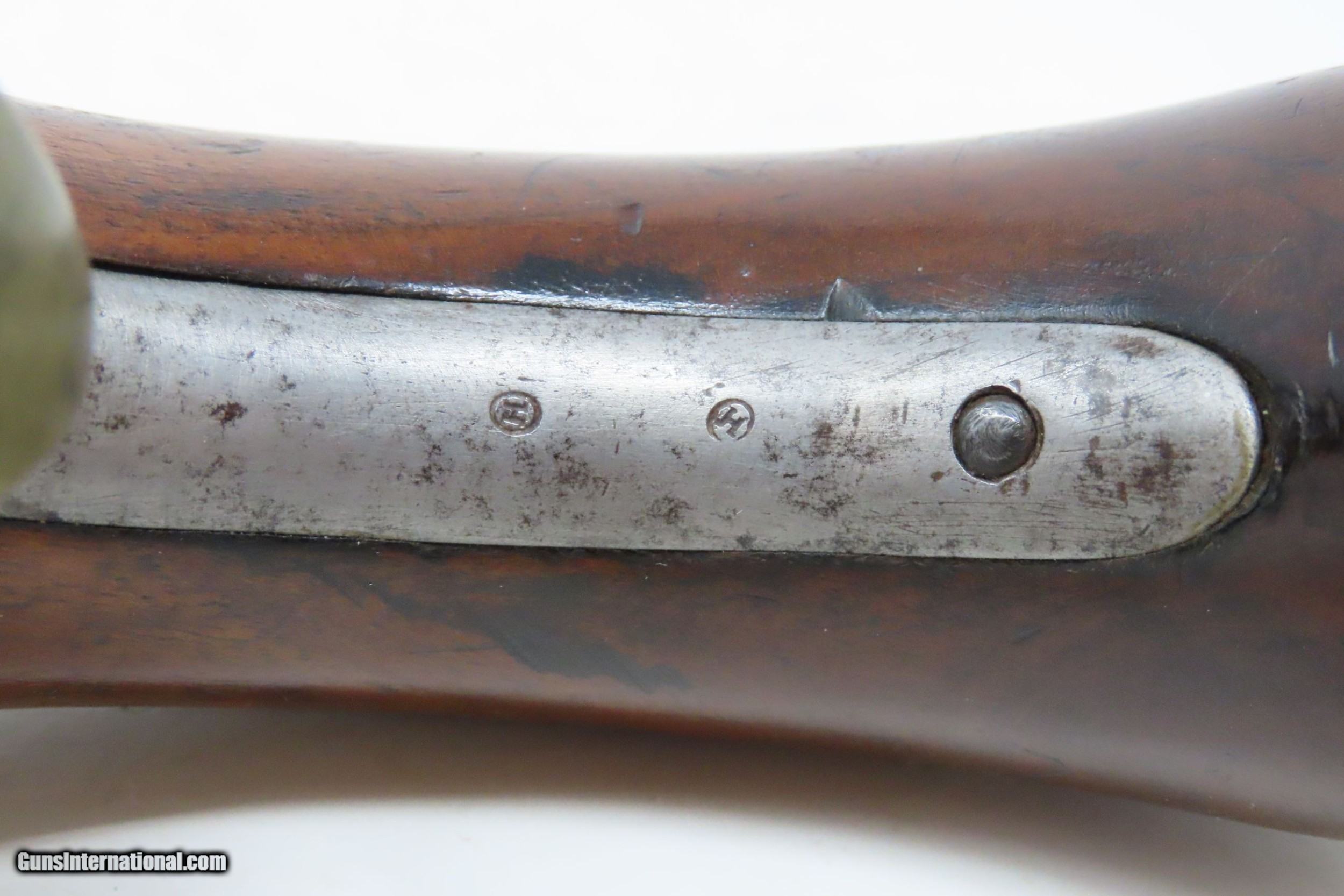 Description: Antique AUGUSTE FRANCOTTE SWISS M1840 CANTONAL ORDNANCE Percussion Pistol 1840s BELGIAN MADE SWISS Military Pistol Here we present an antique Auguste Francotte Swiss Model 1840 Percussion Military Pistol made circa the early 1840s in Liege, Belgium. There are few examples of this pistol in existence today, and even less in the condition this one is in, making it very rare. Oberst Folst was the director of the arsenal in Morges, canton Vaud, Switzerland that developed this pistol. Though the reasoning for the development of this pistol is unknown, the contract went to Auguste Francotte in Liege, Belgium to manufacture them for the Swiss military. This model of pistol was the result of furthering the development of the 1839 Vaud Cantonal Ordnance Pistol. Auguste Francotte was the primary manufacturer of percussion weapons during the period of time when this pistol was manufactured. “VAUD 176” is branded into the left side of the stock and stamped atop the barrel. Liege proofs and “AF”, for Auguste Francotte, is stamped in multiple places on this example. The overall condition is near fine. The action is excellent, strong and crisp. The bore is smooth and clean for age and black powder use. The stock is smooth and solid with just a hint of a split behind the top of the tail of the lock. This is just about the heartiest sidearm you could possibly hope for. Own the original! This is a legitimate antique and not a reproduction. Barrel is 8 inches. Caliber: .69 Percussion Overall condition as seen in photos. Very Fast. Very Safe. FREE SHIPPING WORLDWIDE. Delivered directly to your door by express mail! Guaranteed AUTHENTIC & Includes CERTIFICATE OF AUTHENTICITY. ancestryguns $1685 #217714 SOLD Antique: Yes |