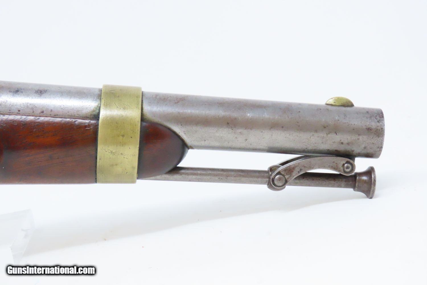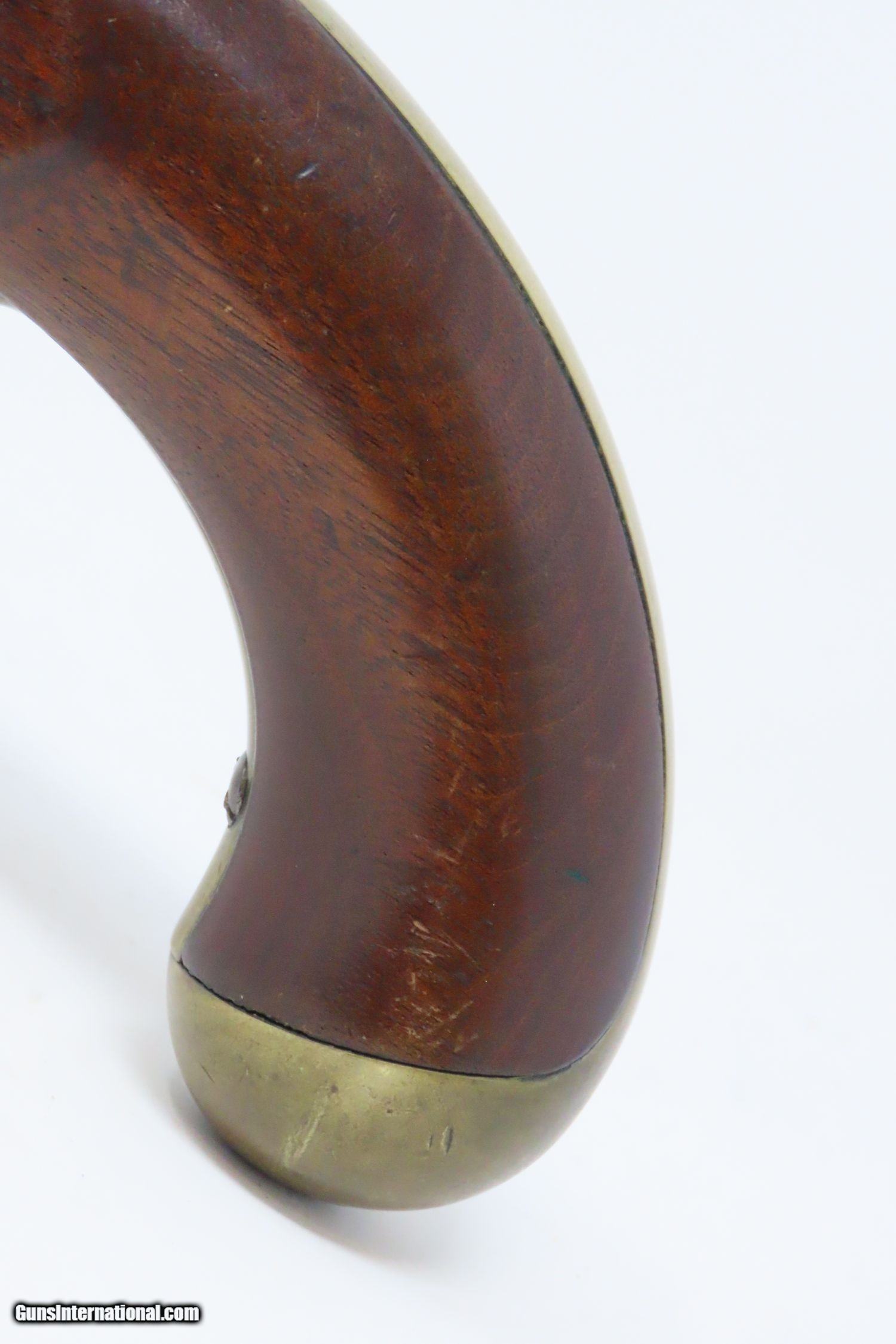 Description: Antique HENRY ASTON US Contract Model 1842 DRAGOON Percussion Pistol Pistols Heavily Used by 1st & 2nd Dragoons! Here we present an antique Aston U.S. Contract Model 1842 Dragoon’s Pistol, made in 1851 in Middletown, Connecticut, just after the Mexican-American War. Henry Aston was a gunmaker from Middletown who received a government contract to produce 24,000 Model 1842 pistols in his first contract for the firearm that spanned from 1846-1851. Between 1851 and 1852, he received a second contract for an additional 6,000 units. The Model 1842 saw service during a time of great change and increasing tension, as well as firearms innovation. The Mexican-American War (1846-1848), the numerous conflicts with Native Americans, annexing of new territory, the rising blood-pressure over slavery, and a quick 36% population increase that all culminated in the blood-letting of the American Civil War. This was the first official percussion pistol to be adopted by the U.S. and simultaneously the last large smooth bore single shot pistol. By 1845 it was the primary issued weapon to the First and Second Regiments of Dragoons, replacing many of their Model 1836 flintlocks, just in time for the Mexican-American War, and they continued to be used in attempts to tame the Southwestern tribes such as the Apaches (see the Battle of Cieneguilla). The 1842 features sturdy construction with lots of brass for support. This was important during a time when one would expend their shots and still have a fight on their hands. Striking your opponent with the pommel of your gun was quite effective. The ramrod is captive, so that it would not be lost in the heat of battle on top of a horse. Many of these were used, especially initially, by both sides during the American Civil War. The barrel tang is dated “1850”. The top of the barrel reads “US/JW” and “JH” can bee seen stamped on the left barrel flat. The lock is dated “1851” and “US/H. Aston & Co.” has been stamped. The overall condition is fine. The action is strong and tight. The bore is in very nice shape and semi-bright. The stock is in fine shape with minimal wear and showcases 2 visible cartouches on the left side. This is a fantastic piece of American history that very well could have been one of those issued to the 1st or 2nd Dragoons who were sent into the Western Frontier. Own the original! This is a legitimate antique and not a reproduction. Barrel is 8 inches. Caliber: .54 Percussion Overall condition as seen in photos. Very Fast. Very Safe. FREE SHIPPING WORLDWIDE. Delivered directly to your door by express mail! Guaranteed AUTHENTIC & Includes CERTIFICATE OF AUTHENTICITY. ancestryguns $1965 #201080 SOLD Antique: Yes |
