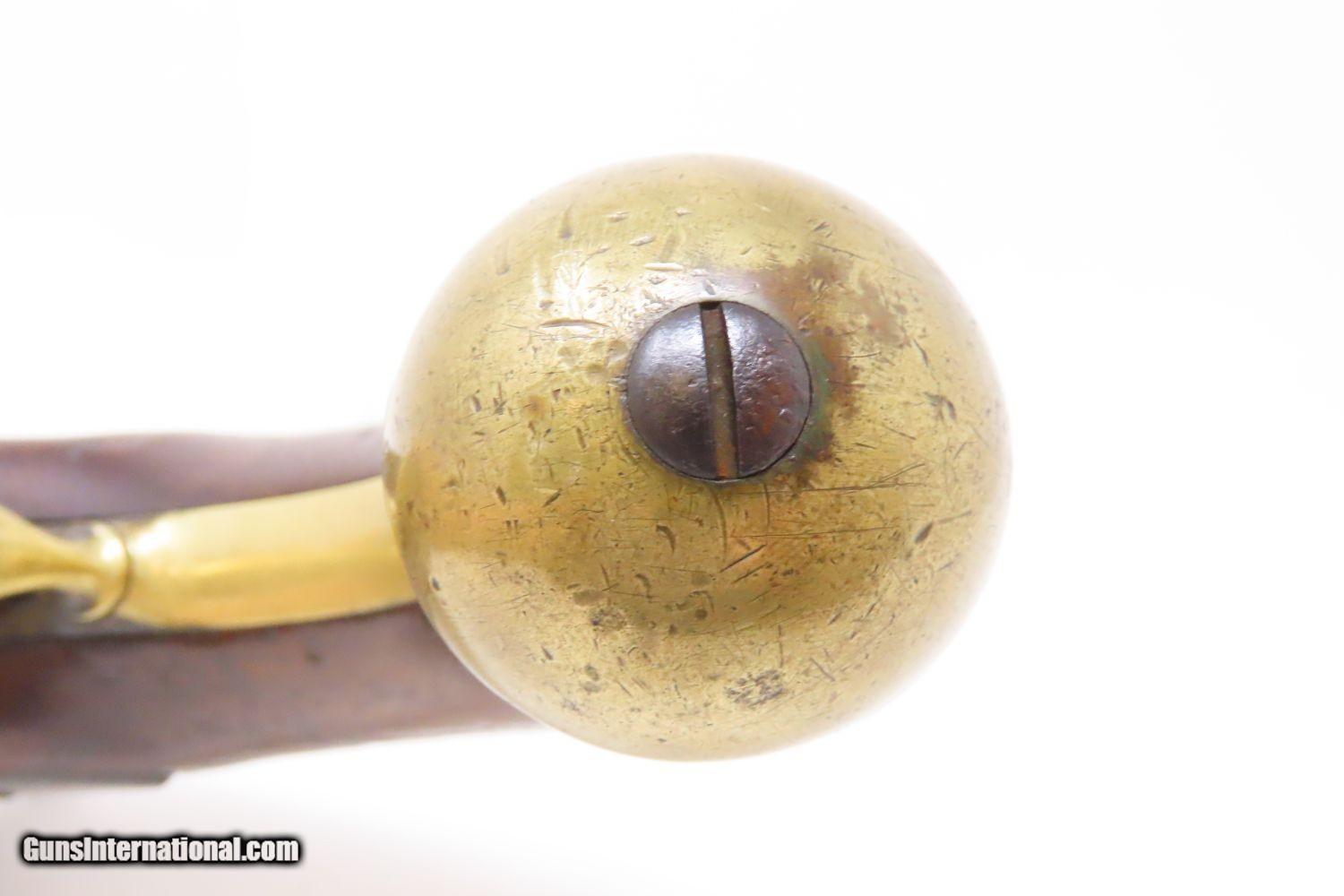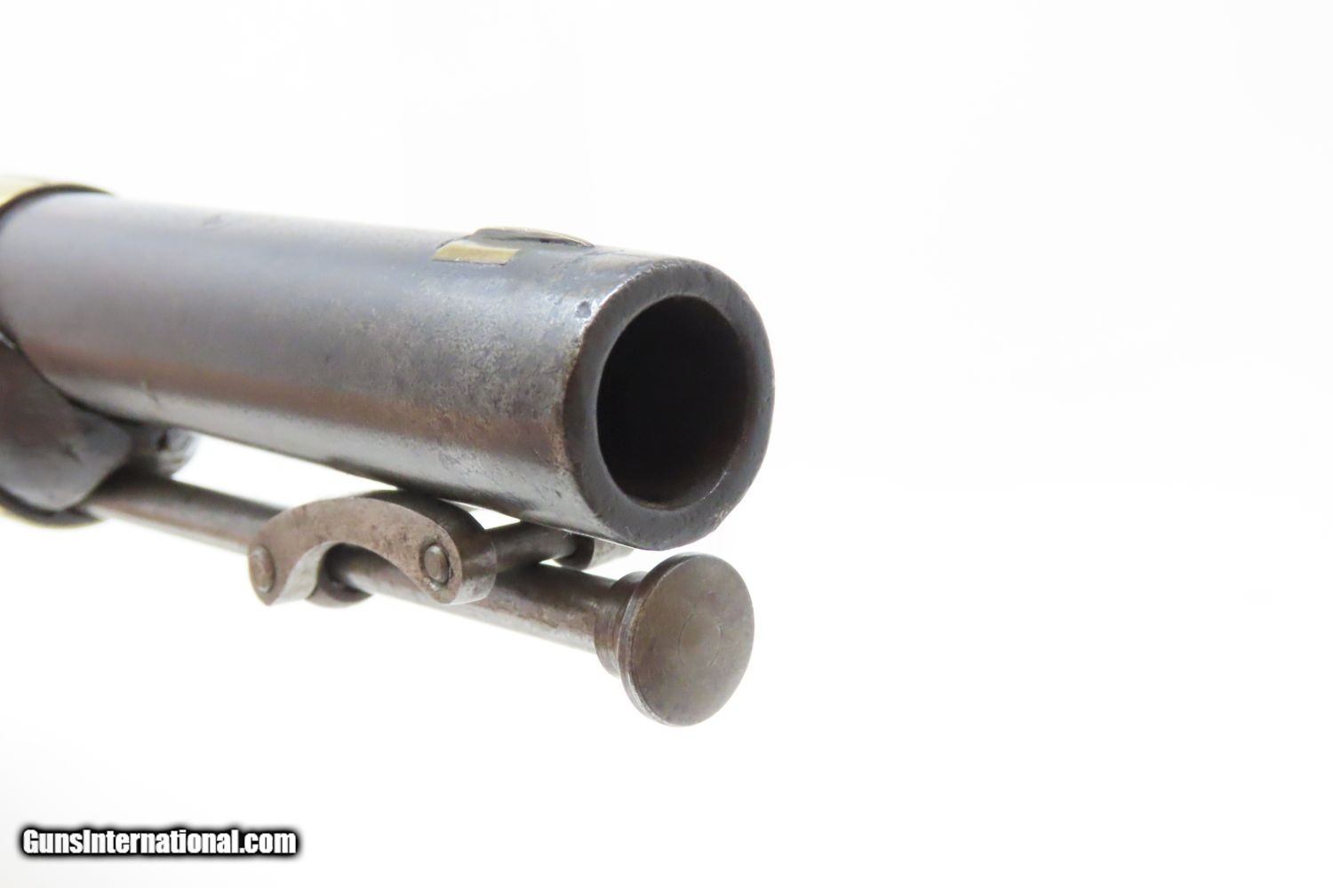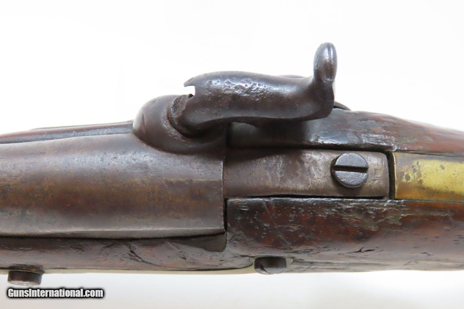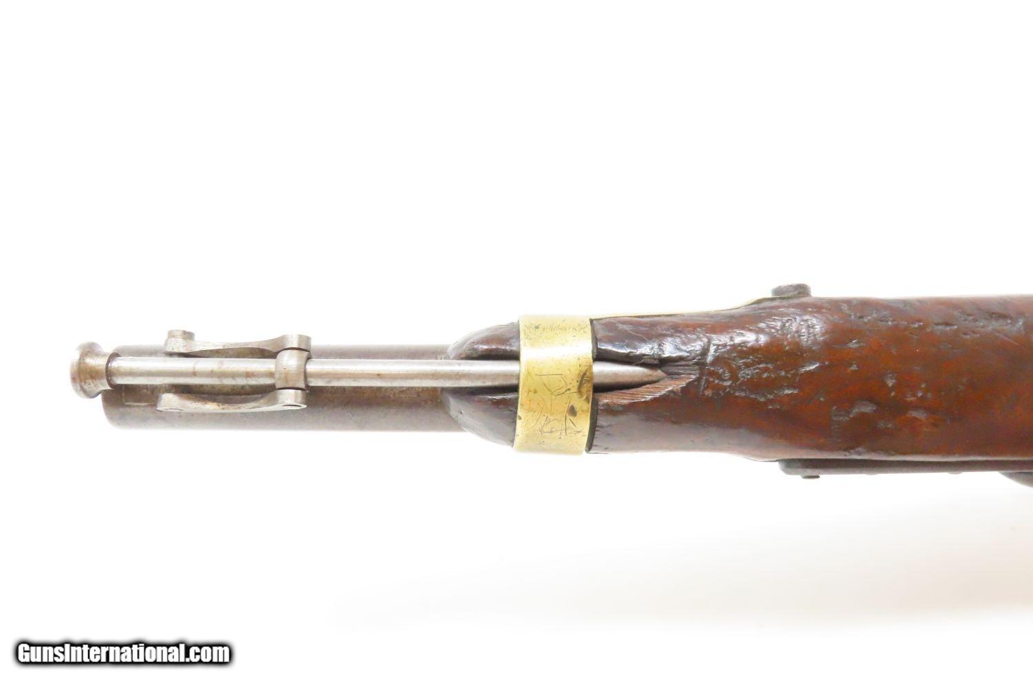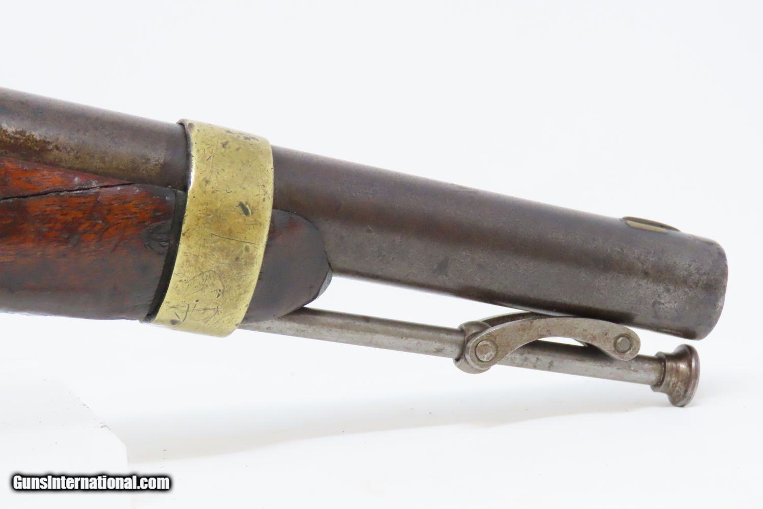 Description: Antique I.N. JOHNSON U.S. Model 1842 DRAGOON .54 Caliber MARTIAL Pistol Dated “1854” Horse Pistol Used During BLEEDING KANSAS Here we present an antique U.S. I.N. Johnson Model 1842 Percussion Pistol, made in 1854, in Middletown, Connecticut by Ira N. Johnson. The Model 1842 saw service during a time of great change and increasing tension, as well as firearms innovation. The Mexican-American War, the numerous conflicts with Native Americans, annexing of new territory, the rising blood-pressure over slavery, and a quick 36% population increase that all culminated in the blood-letting of the American Civil War. This was the first official percussion pistol to be adopted by the U.S. and simultaneously the last large smooth bore single shot pistol. By 1845 it was the primary issued weapon to the First and Second Regiment of Dragoons, replacing many of their Model 1836 flintlocks, just in time for the Mexican-American War. The 1842 features sturdy construction with lots of brass for support. This was important during a time when one would expend their shots and still have a fight on their hands. Striking your opponent with the pommel of your gun was quite effective. The ramrod is captive, so that it would not be lost in the heat of battle on top of a horse. This specimen is marked “US/I.N. JOHNSON” and “MIDDTN/CONN./1854” on the lock. About 10,000 were so marked. Small initials from sub-inspectors are found on various parts of the gun. The primary inspector cartouche is still faintly visible. The overall condition is good. Strong action. Good bore. Cracks in the wood on both sides are stable. The hinge on the ramrod is not affixed to the barrel or stock. Own the original! This is a legitimate antique and not a reproduction. Barrel is 8-1/2 inches. Caliber: .54 Percussion Overall condition as seen in photos. Very Fast. Very Safe. FREE SHIPPING WORLDWIDE. Delivered directly to your door by express mail! Guaranteed AUTHENTIC & Includes CERTIFICATE OF AUTHENTICITY. ancestryguns $1200 #215081 SOLD Antique: Yes |