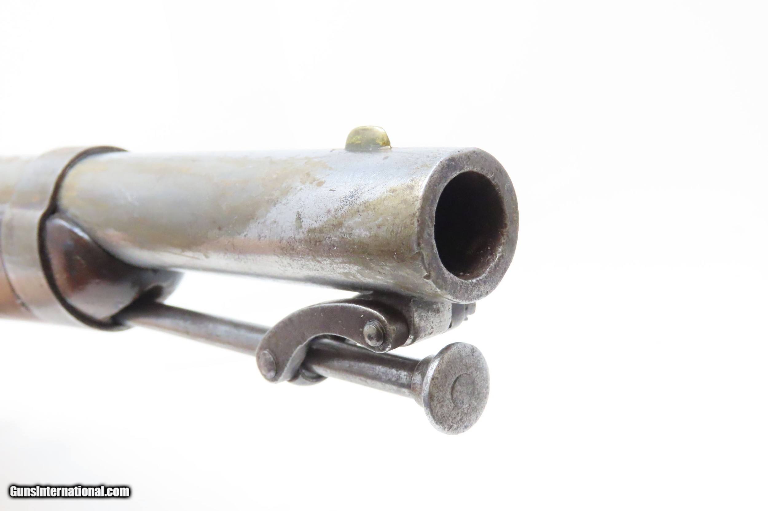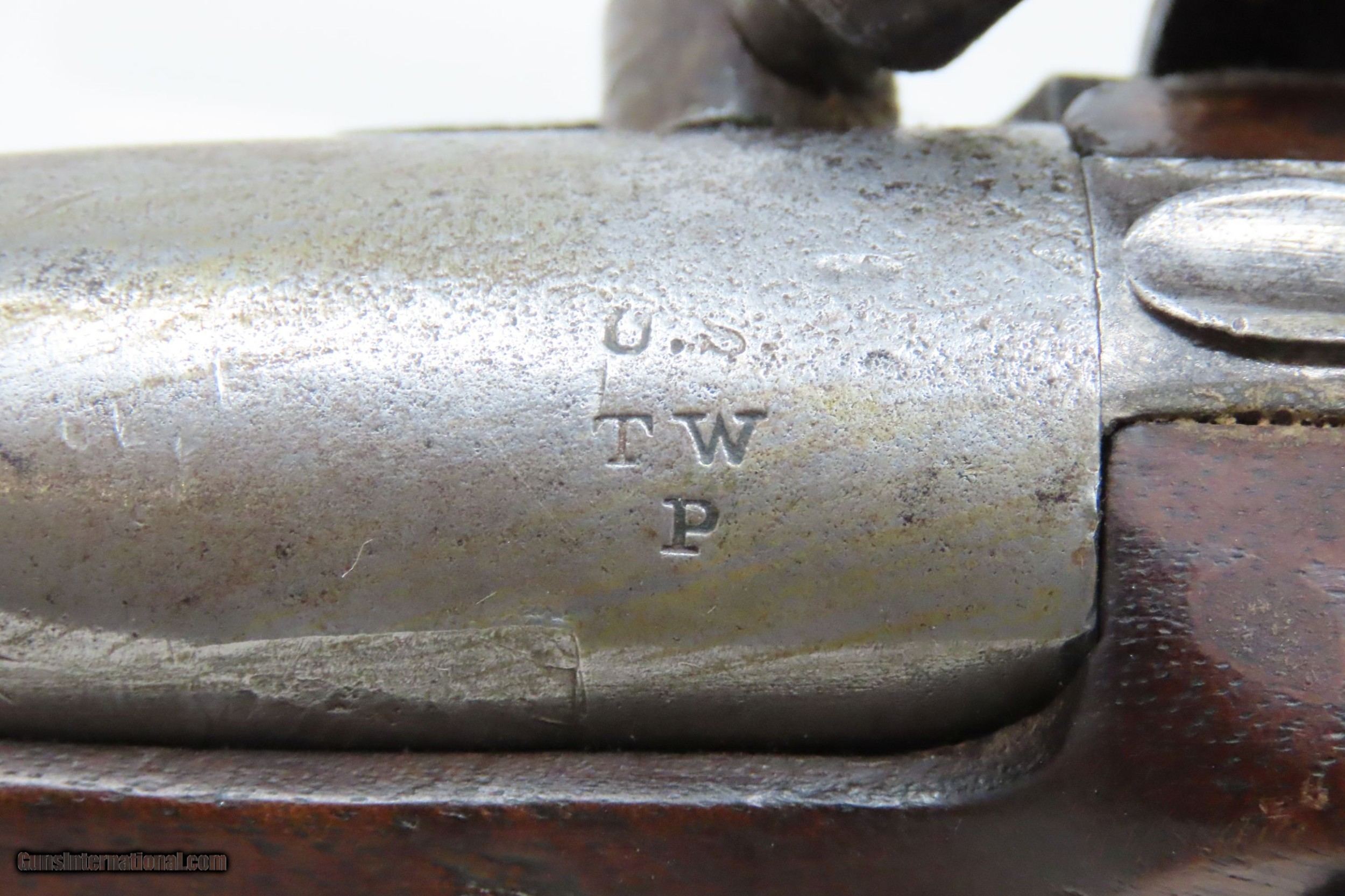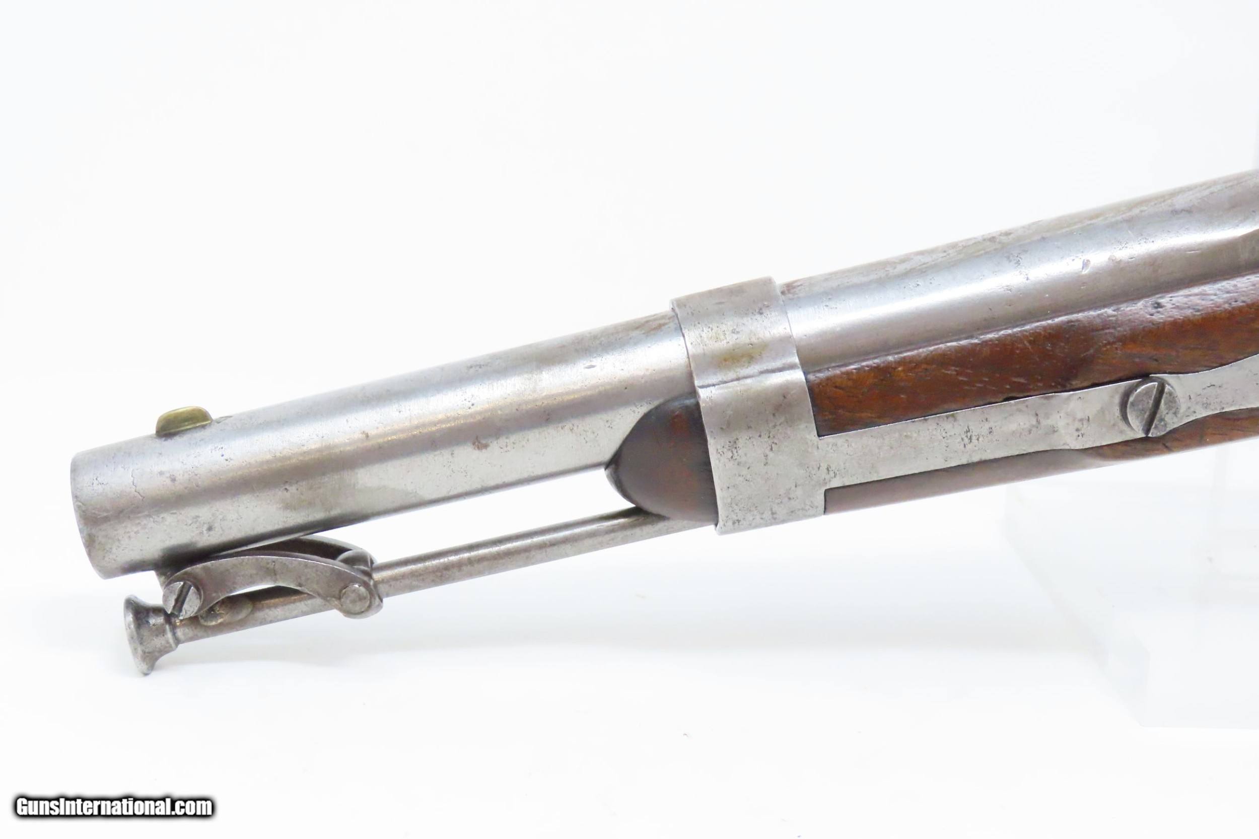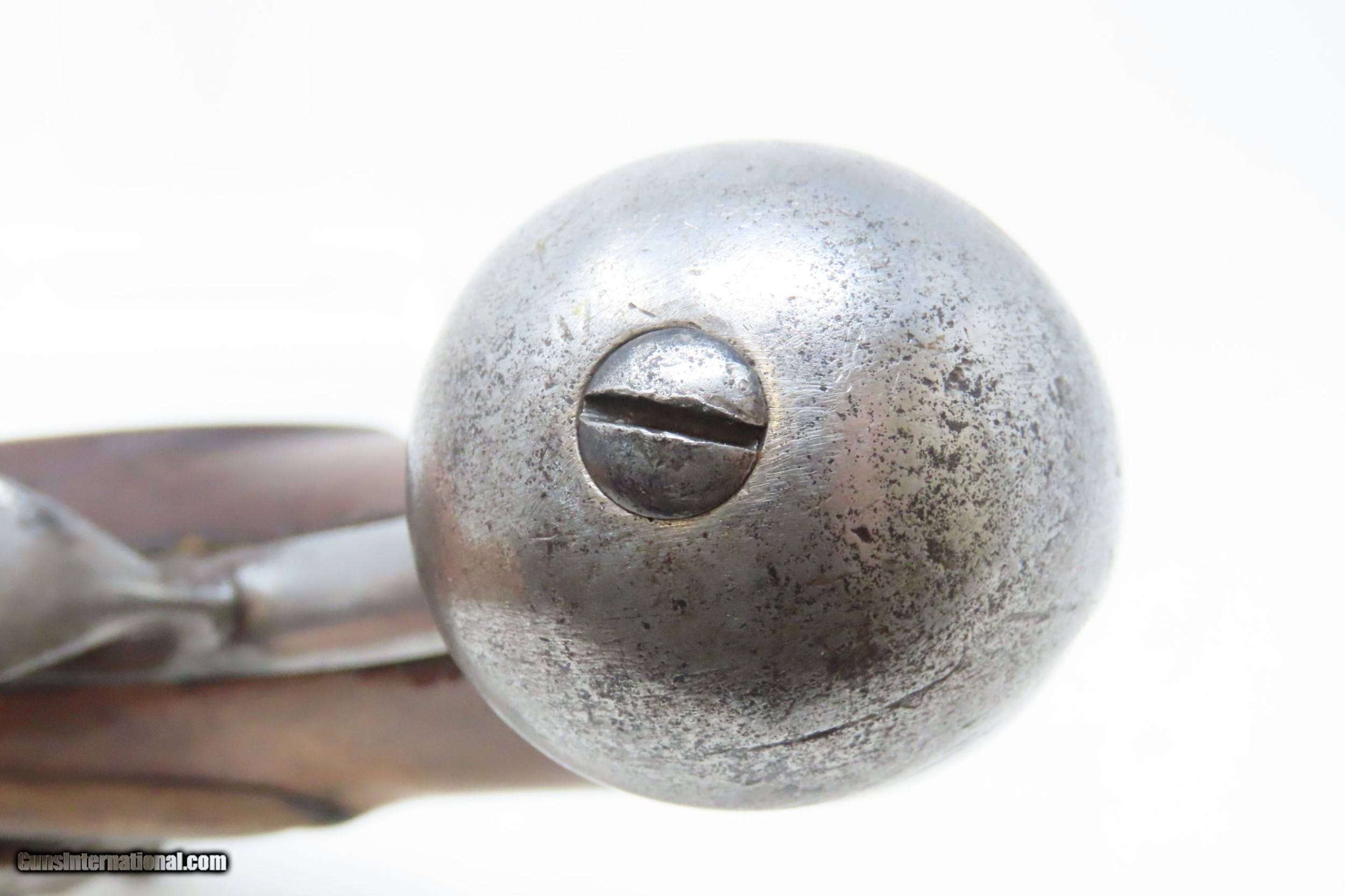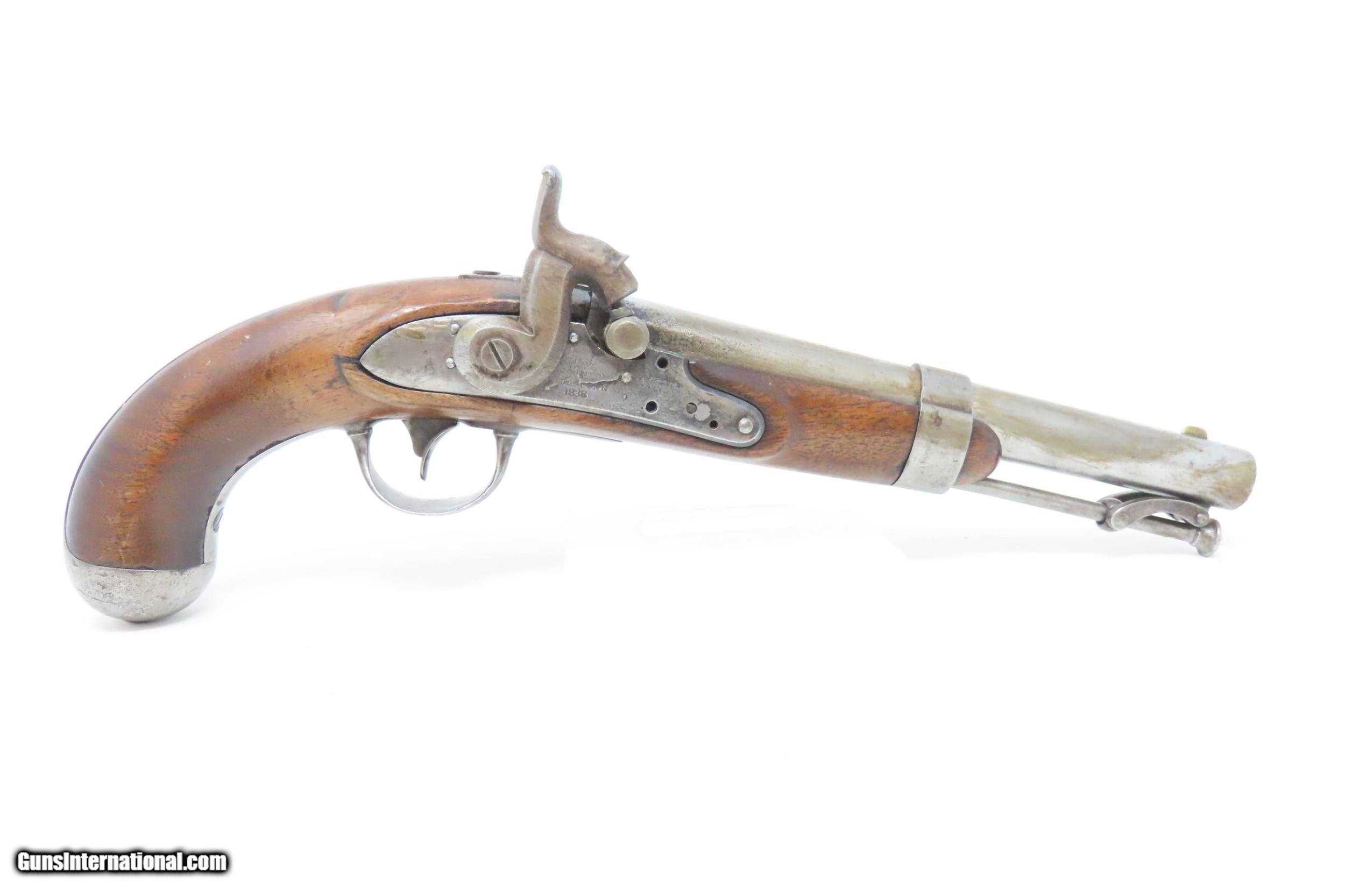 Description: Antique ROBERT JOHNSON US Model 1836 .54 Cal. Smoothbore Conversion Pistol STANDARD ISSUE of the MEXICAN-AMERICAN WAR! Here we present an antique Robert Johnson Model 1836 Percussion Conversion Pistol dated 1838 in Middletown, Connecticut. This .54 caliber smoothbore, percussion pistol would have started out life as a flintlock and converted when the more reliable percussion firing system was introduced and is one of approximately 18,000 Model 1836 pistols manufactured by Robert Johnson. The Model 1836 was widely considered to be the best designed and manufactured flintlock pistol. The pistol has an 8 1/2-inch round barrel with a brass front sight blade, swivel ramrod with button head and iron mountings. The barrel, ramrod, butt cap, barrel band and trigger guard are "bright" finish. The lock plate, hammer, and tang were once casehardened. The right lock is marked "US / JOHNSON / MIDDN.CONN. / 1838". Inspection and proof marks US / TW / P are visible atop the barrel. The Model 1836 Flintlock Pistol was the standard issue handgun of the Mexican War. The overall condition is good. Strong action. Good bore, clear and aged. Solid stock/grip with an average amount of handling wear from use (minor dents and dings). “1838” dated lock. The ramrod is a little loose and falls out with gravity. Own the original! This is a legitimate antique and not a reproduction. Barrel is 8 inches. Caliber: .54 Percussion Overall condition as seen in photos. Very Fast. Very Safe. FREE SHIPPING WORLDWIDE. Delivered directly to your door by express mail! Guaranteed AUTHENTIC & Includes CERTIFICATE OF AUTHENTICITY. ancestryguns $1200 #217692 SOLD Antique: Yes |