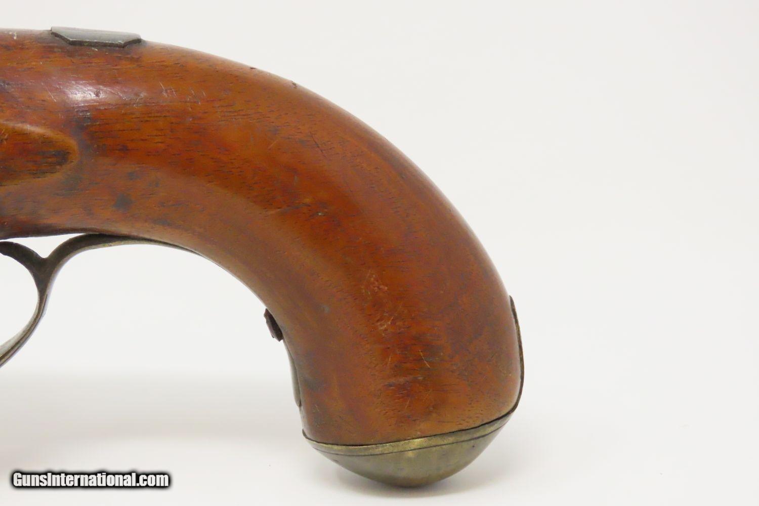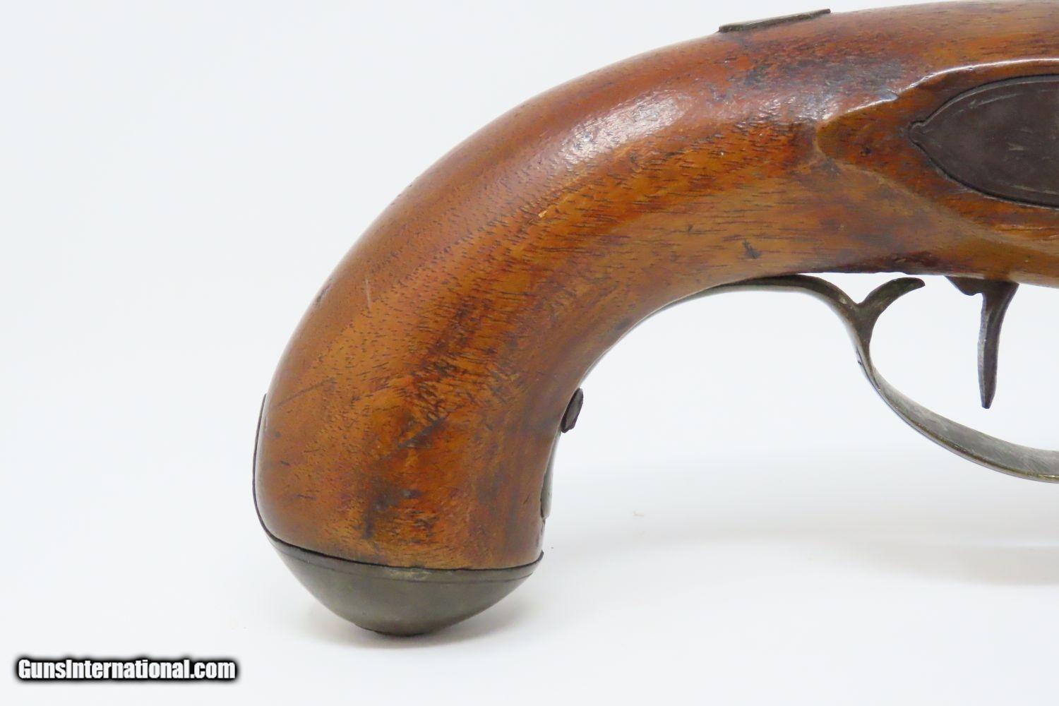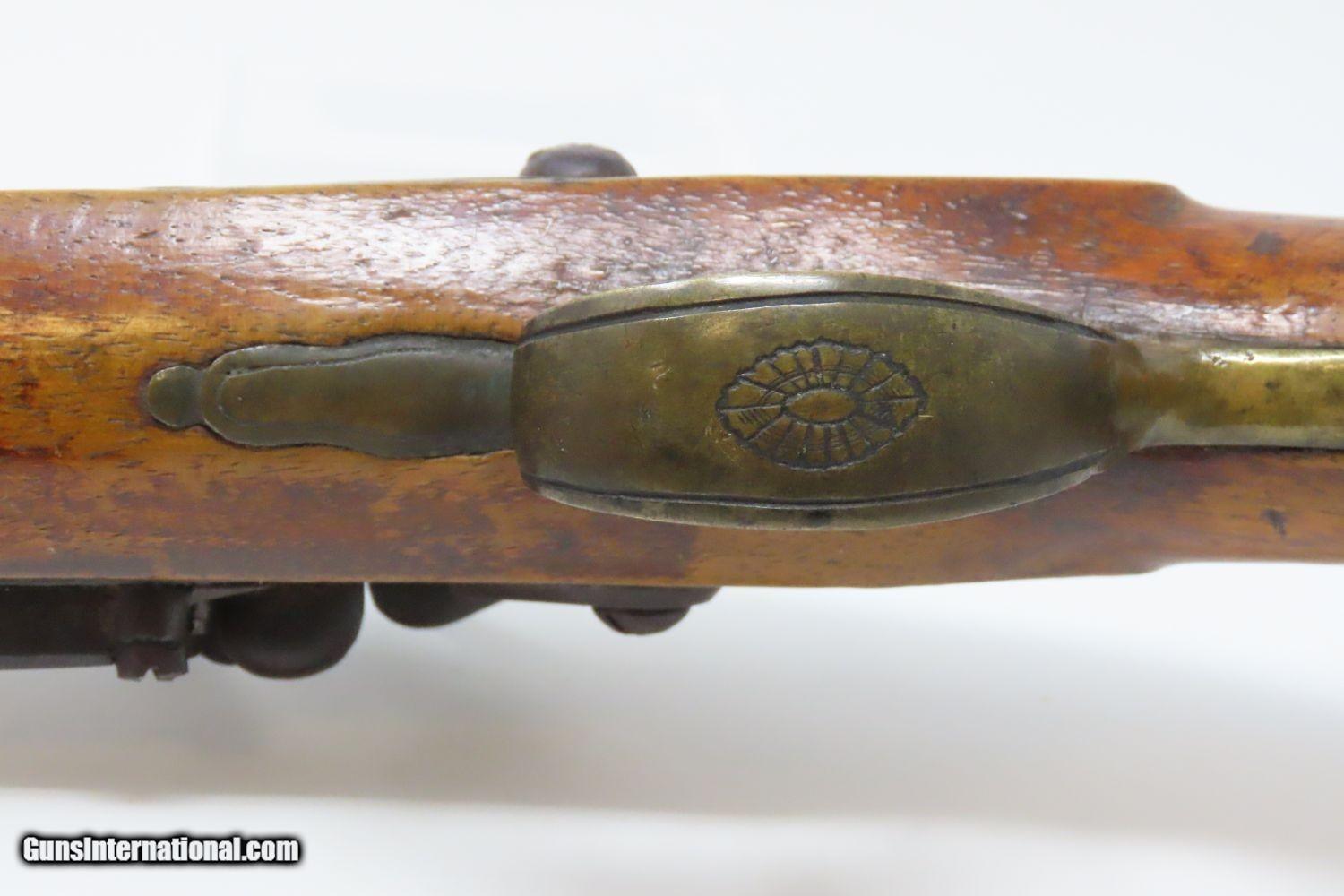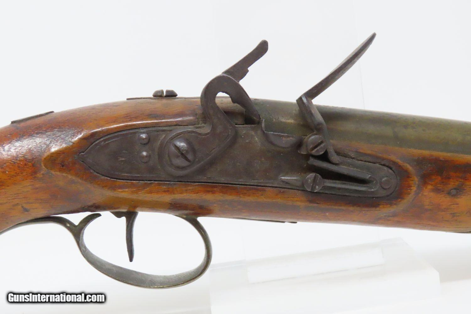 Description: Antique SHARPE of LONDON “Extra Sharpe Proof” Flintlock INDIAN TRADE Pistol British with Birmingham Proofs & Brass Barrel Here we present an antique Sharpe Flintlock Trade Pistol, made circa the early 1800s in Birmingham, England. This London Gun maker "SHARPE" was in business from around 1800 until 1840. He initially contracted with the Hudson Bay Company to supply these good quality Flintlock pistols that were traded to the Indigenous Indians in exchange for fur pelts that were eagerly desired in the European Fashion Trade. The Hudson Bay company was founded in May of 1670 primarily serving in the fur trading industry in its early years and has continued for 350 years to present day in London, England. This pistol was designed to make massive holes in things. This pistol would have been a horse carried pistol or perhaps even worn on a belt. The overall condition is good. The lock reads “SHARPE”. Atop the barrel “EXTRA/SHARPE/PROOF” is engraved. The action is strong, although the top jaw is missing. The bore is smooth and dark. The stock is solid and remains in great shape. Own the original! This is a legitimate antique and not a reproduction. Barrel is 8 inches. Caliber: .60 Overall condition as seen in photos. Very Fast. Very Safe. FREE SHIPPING WORLDWIDE. Delivered directly to your door by express mail! Guaranteed AUTHENTIC & Includes CERTIFICATE OF AUTHENTICITY. ancestryguns $1565 #20671 SOLD Antique: Yes |