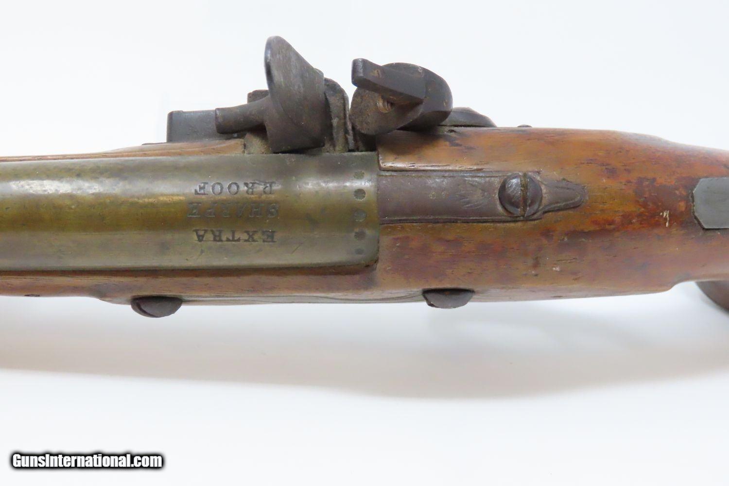Antique SHARPE of LONDON “Extra Sharpe Proof” Flintlock INDIAN TRADE Pistol British with Birmingham Proofs & Brass Barrel