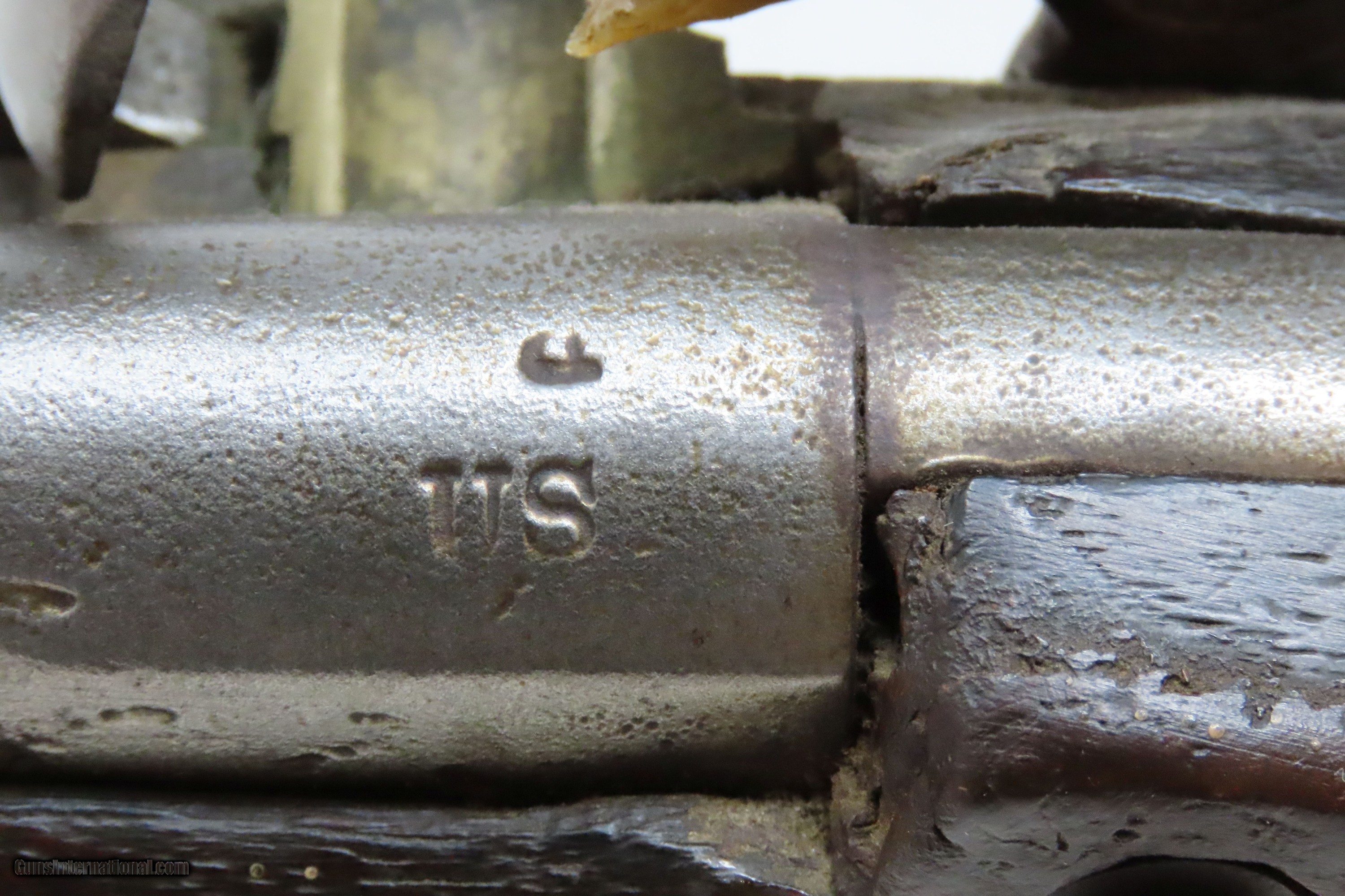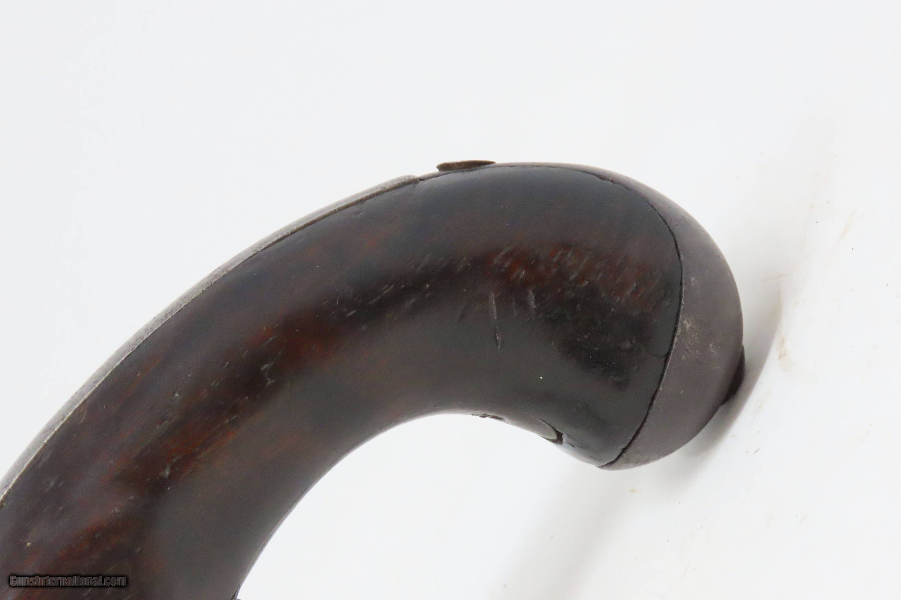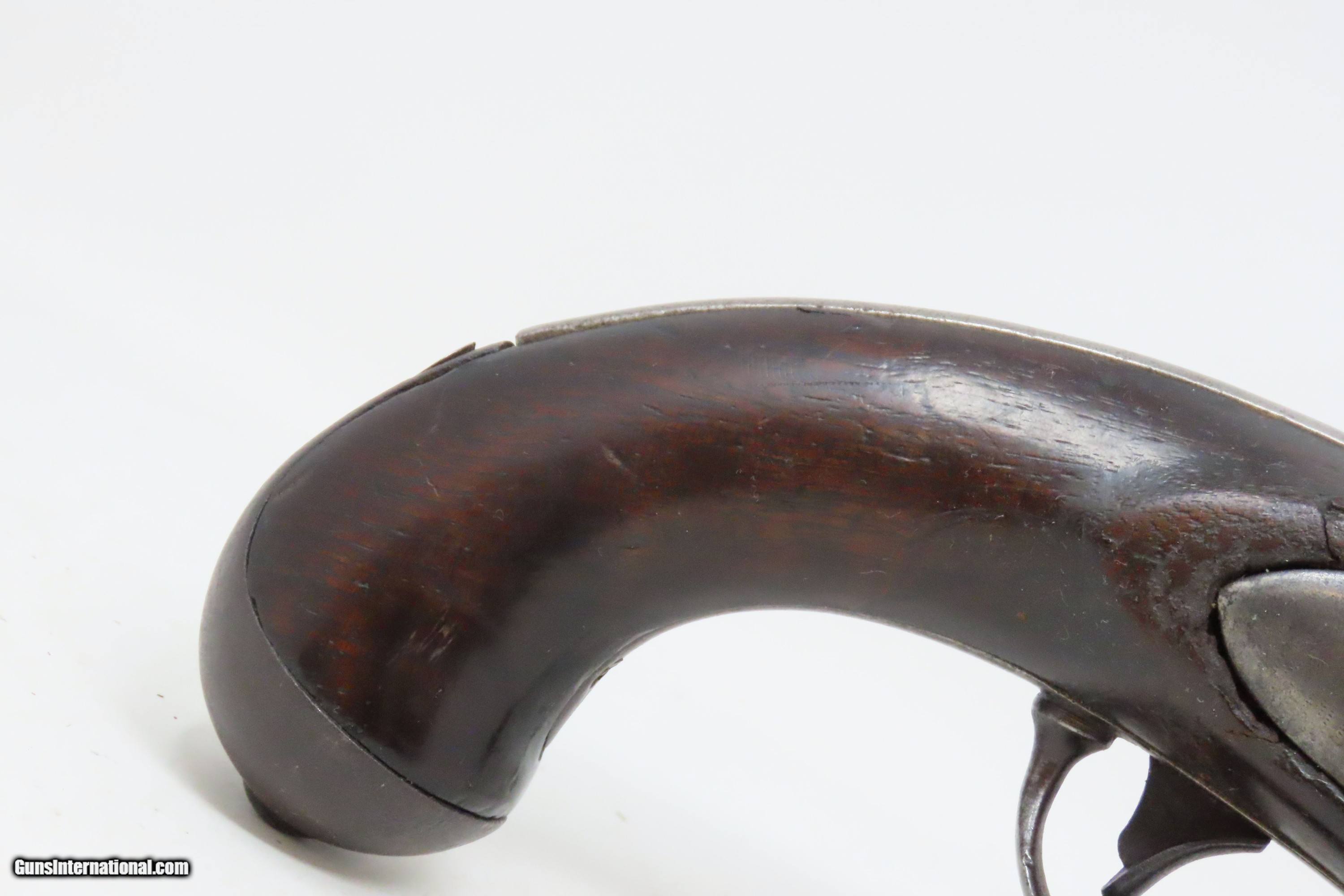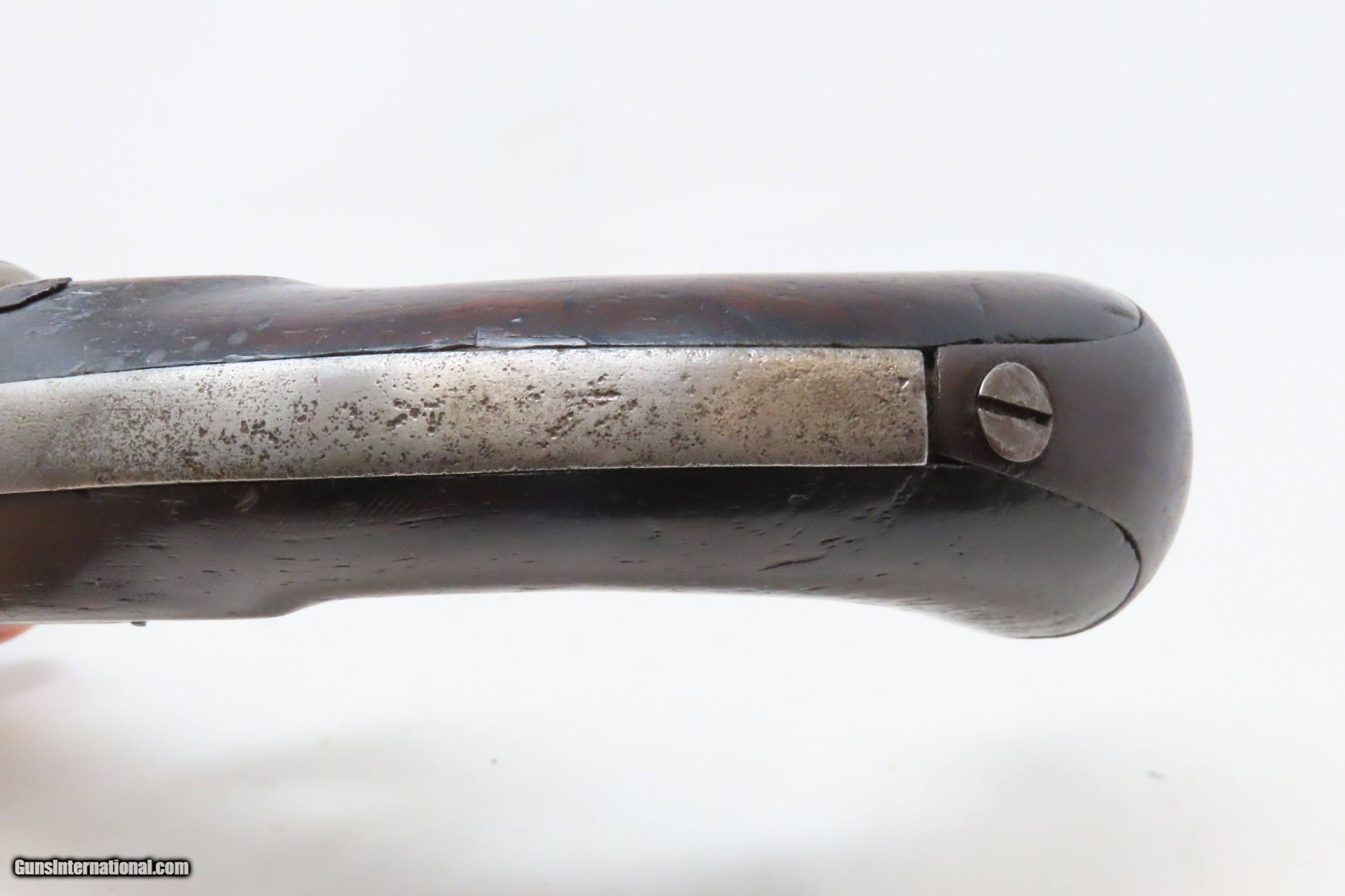 Description: Antique SIMEON NORTH U.S. M1816 .54 Military FLINTLOCK Pistol KIT CARSON U.S. CONTRACT Early American Army & Navy Sidearm Here we present an antique Simeon North U.S. Contract Model 1816 Flintlock Pistol, manufactured between 1817-20 in Middletown, Connecticut. 19,374 of these were made for the U.S. military. Many were updated to the much more reliable percussion system in the 1830s. The service life was quite long for this pistol. The famous scout and Indian fighter Kit Carson fought with one of these, still in its original flintlock form, during the Mexican-American War from 1846-48. Even though percussion arms, including pistols, had been adopted by the U.S. in the 30s, it was not unusual for flintlocks to still be in use. Primary conflicts that would have involved this piece during its service life were the Seminole Wars, the Pawnee Expedition, the Mexican-American War and even the American Civil War. The lock is marked “S. NORTH, US, MIDL. CON.”. along with the Federal Eagle. The barrel is also marked “US”. The overall condition is rough. Reconverted to flintlock. The action does not go to the full-cock position. The bore is smooth and patinated. The stock has been broken and repaired all the way around the lock inlet area. Own the original! This is a legitimate antique and not a reproduction. Barrel is 9-1/8 inches. Caliber: .54 Flintlock Overall condition as seen in photos. Very Fast. Very Safe. FREE SHIPPING WORLDWIDE. Delivered directly to your door by express mail! Guaranteed AUTHENTIC & Includes CERTIFICATE OF AUTHENTICITY. ancestryguns $1200 #233546 SOLD Antique: Yes |