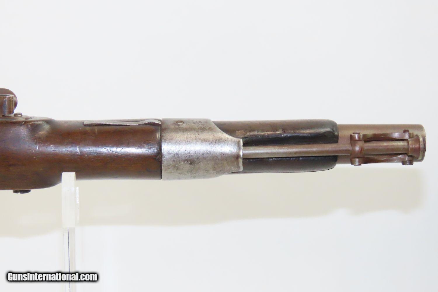 Description: Antique SIMEON NORTH US CONTRACT Model 1819 .54 Caliber FLINTLOCK Pistol Early American Army & Navy Sidearm With 1822 Dated Lock Here we present an antique US Model 1819 Simeon North flintlock pistol, made circa 1822 in Middletown, Connecticut. Many were updated to the much more reliable percussion system in the 1830s. The service life was quite long for this pistol. The famous scout and Indian fighter Kit Carson fought with one of these, still in its original flintlock form, during the Mexican-American War from 1846-48. Even though percussion arms, including pistols, had been adopted by the U.S. in the 30s, it was not unusual for flintlocks to still be in use. Primary conflicts that would have involved this piece during its service life were the Seminole Wars, the Pawnee Expedition, the Mexican-American War and even the American Civil War. Again, though many of these pistols were converted to percussion, here is a true survivor in its original flintlock form. The front sight is a brass blade and the rear sight is oval on the tang. This example has survived in its original flintlock state. The overall condition is very good. The action is as strong as ever. The bore is good. “S. North/US/MIDLTN CONN.” can be read on the lock. The lock is also dated “1822”. Refinished. “JD/P/US” has been stamped on the barrel top, the initials for US Ordnance Inspector J. Dowler. Four notches have been struck on the left stock. A great piece of US history! Own the original! This is a legitimate antique and not a reproduction. Barrel is 10 inches. Caliber: .54 Overall condition as seen in photos. Very Fast. Very Safe. FREE SHIPPING WORLDWIDE. Delivered directly to your door by express mail! Guaranteed AUTHENTIC & Includes CERTIFICATE OF AUTHENTICITY. ancestryguns $2895 #20368 SOLD Antique: Yes |
