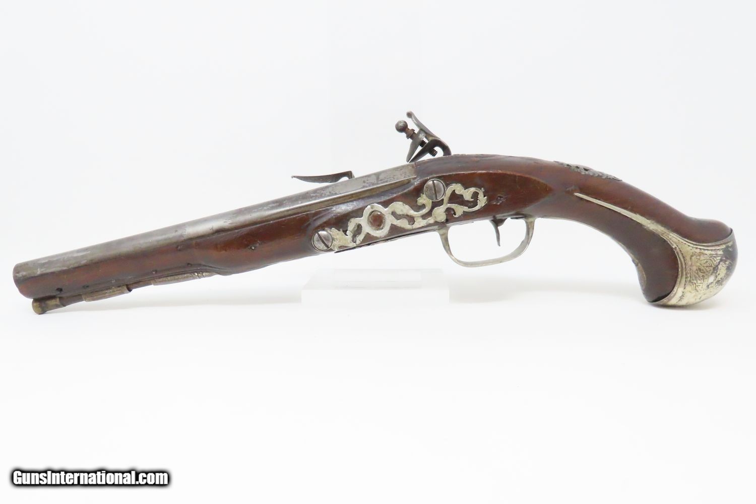 BALOCHE of PARIS Antique SILVER Mounted FLINTLOCK Officer’s PISTOL 18th Century “1st French Colonial Empire” Flintlock Pistol