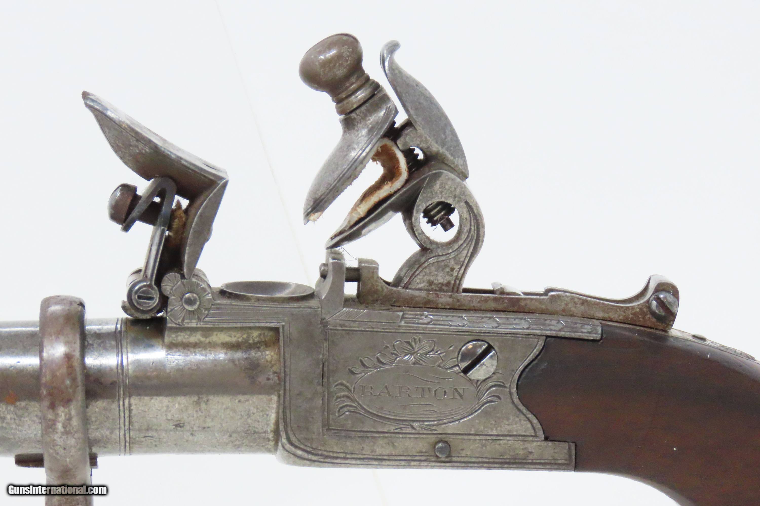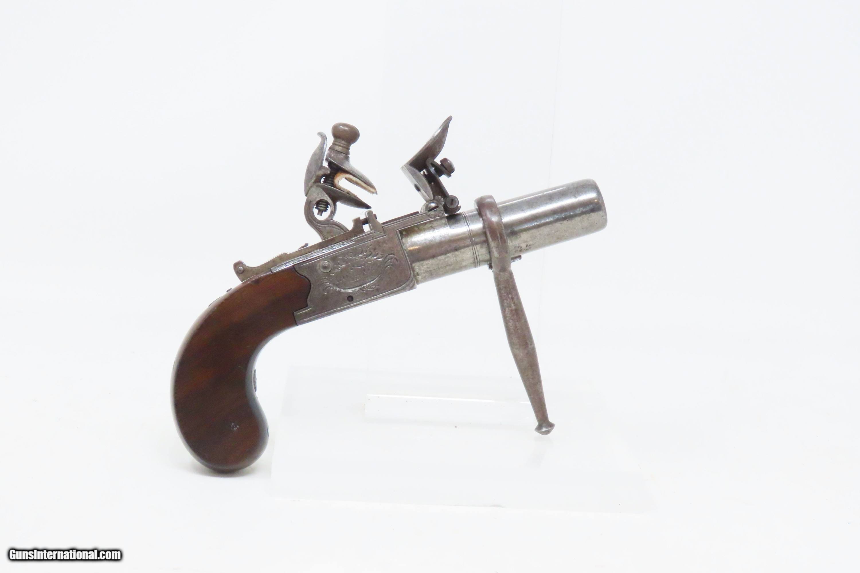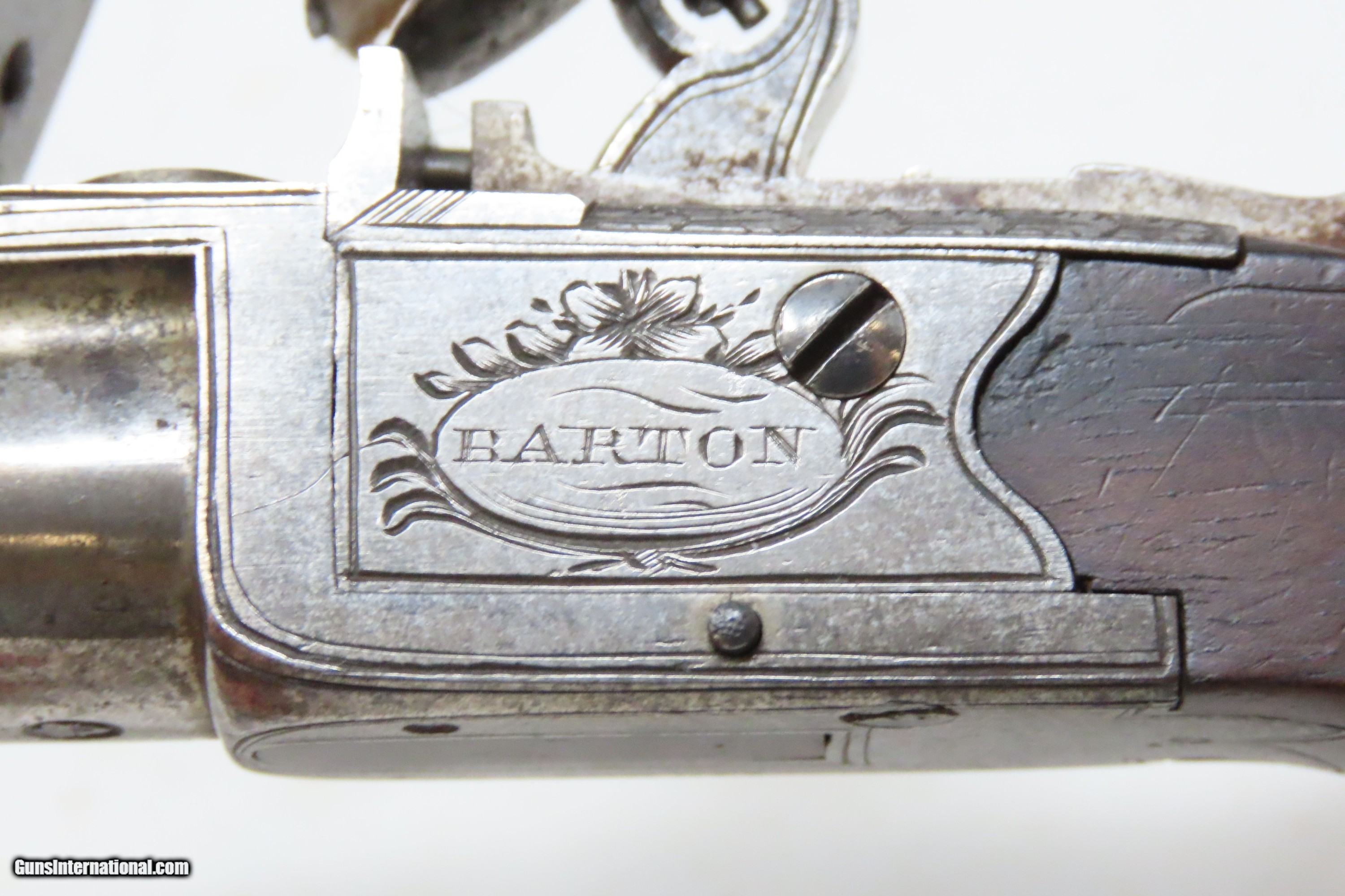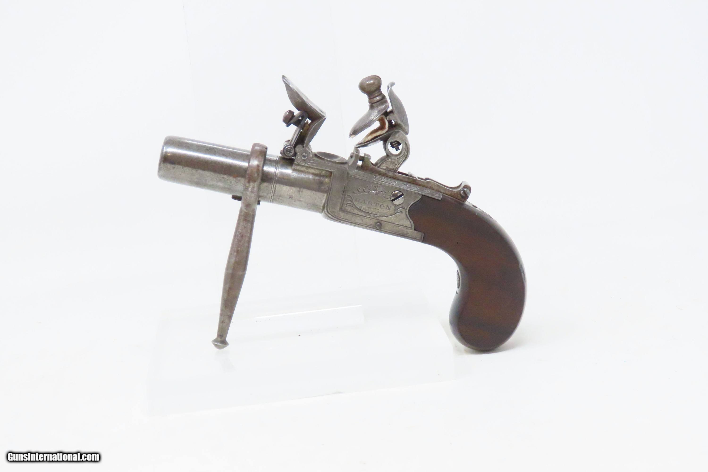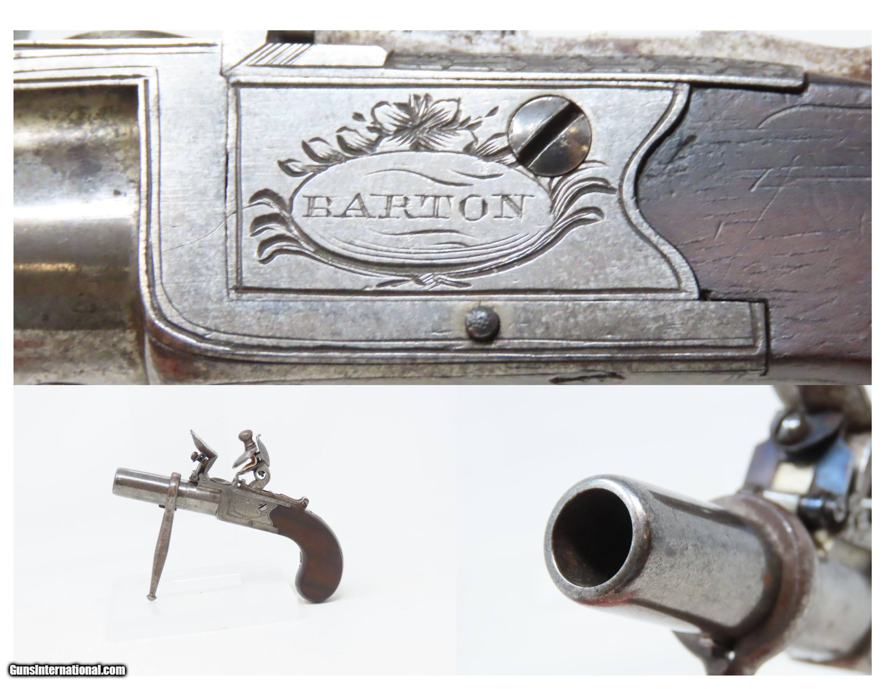 BARTON of LONDON Antique BOXLOCK British FLINTLOCK .44 Pocket/Muff Pistol