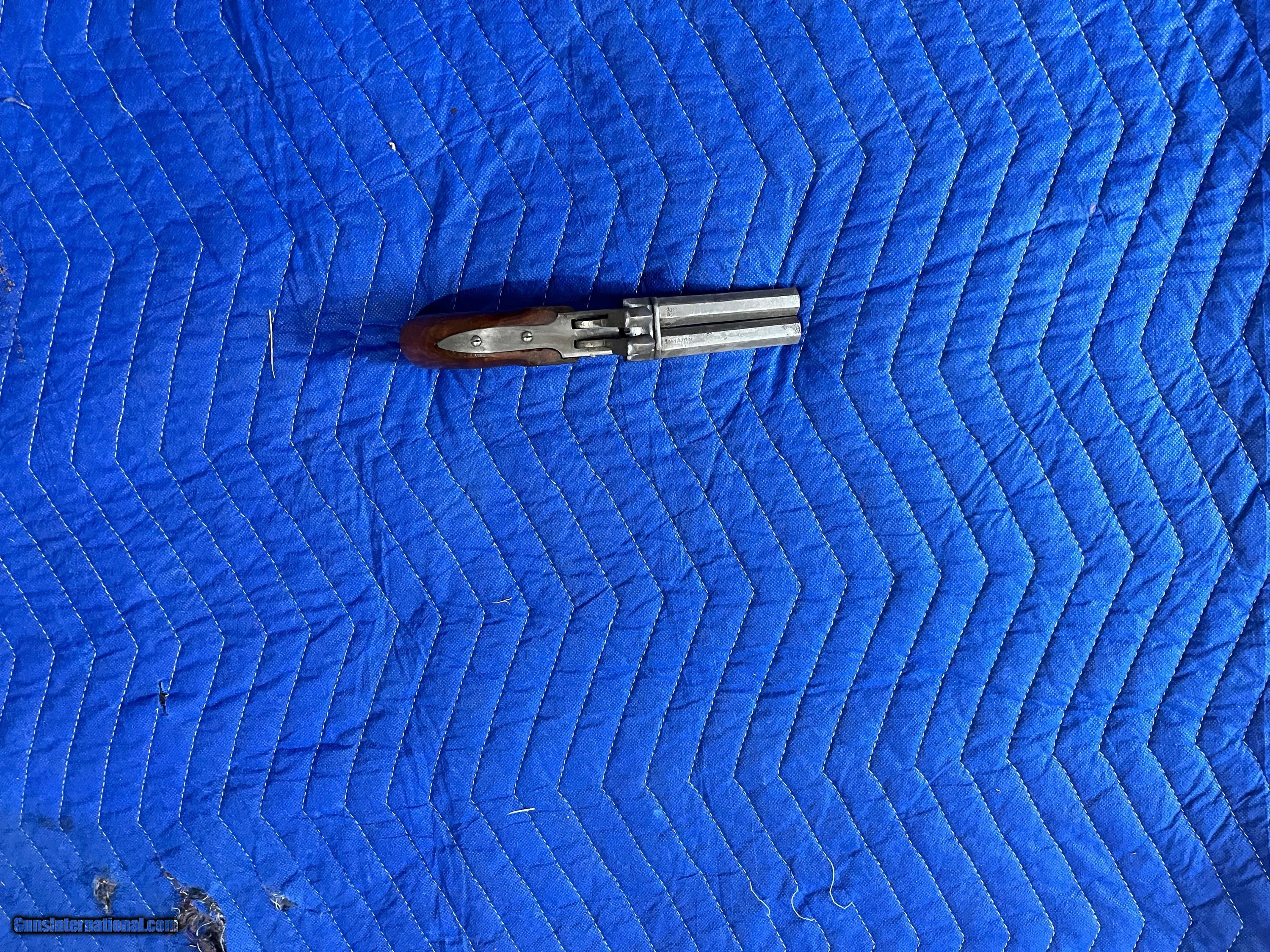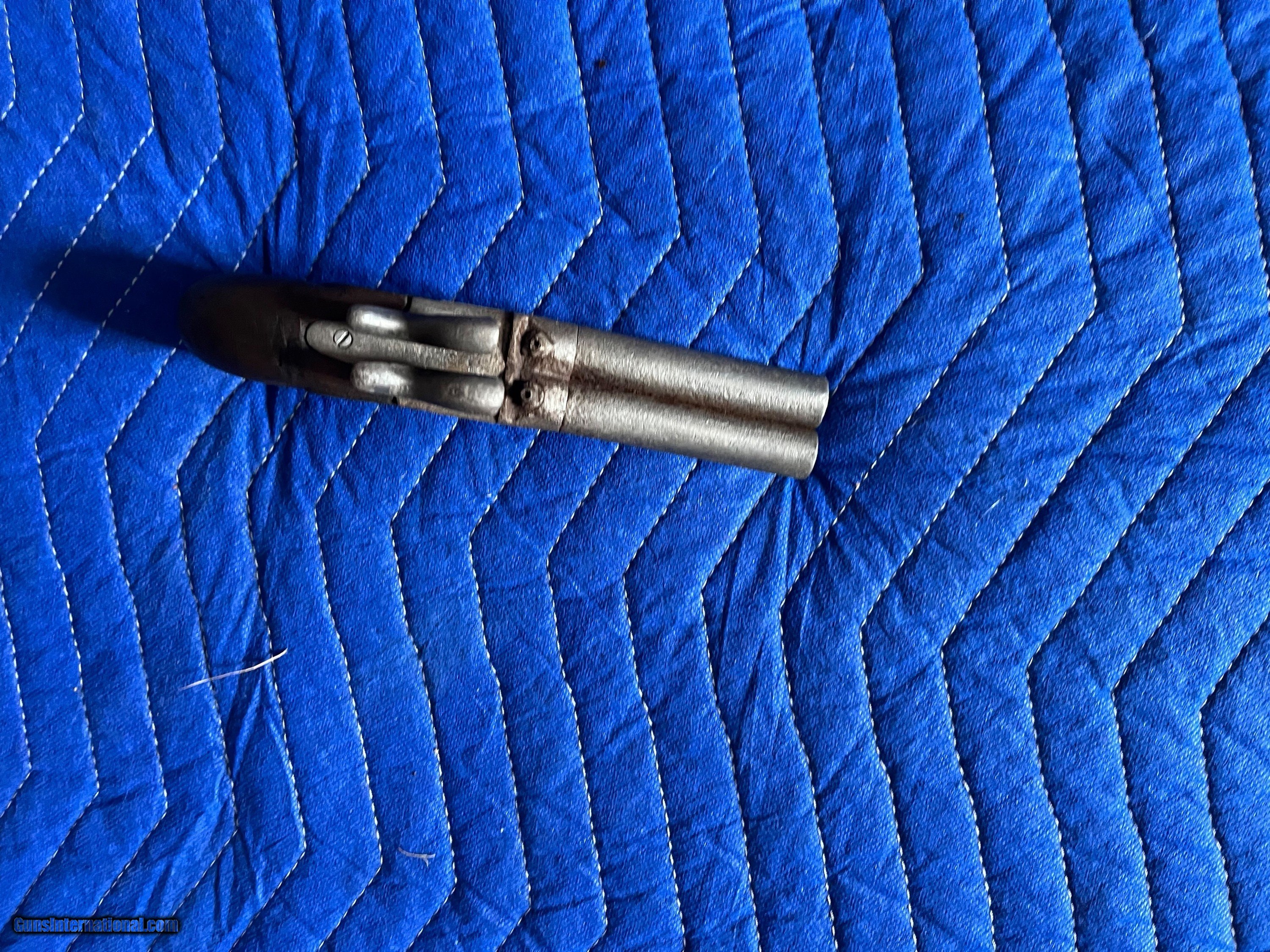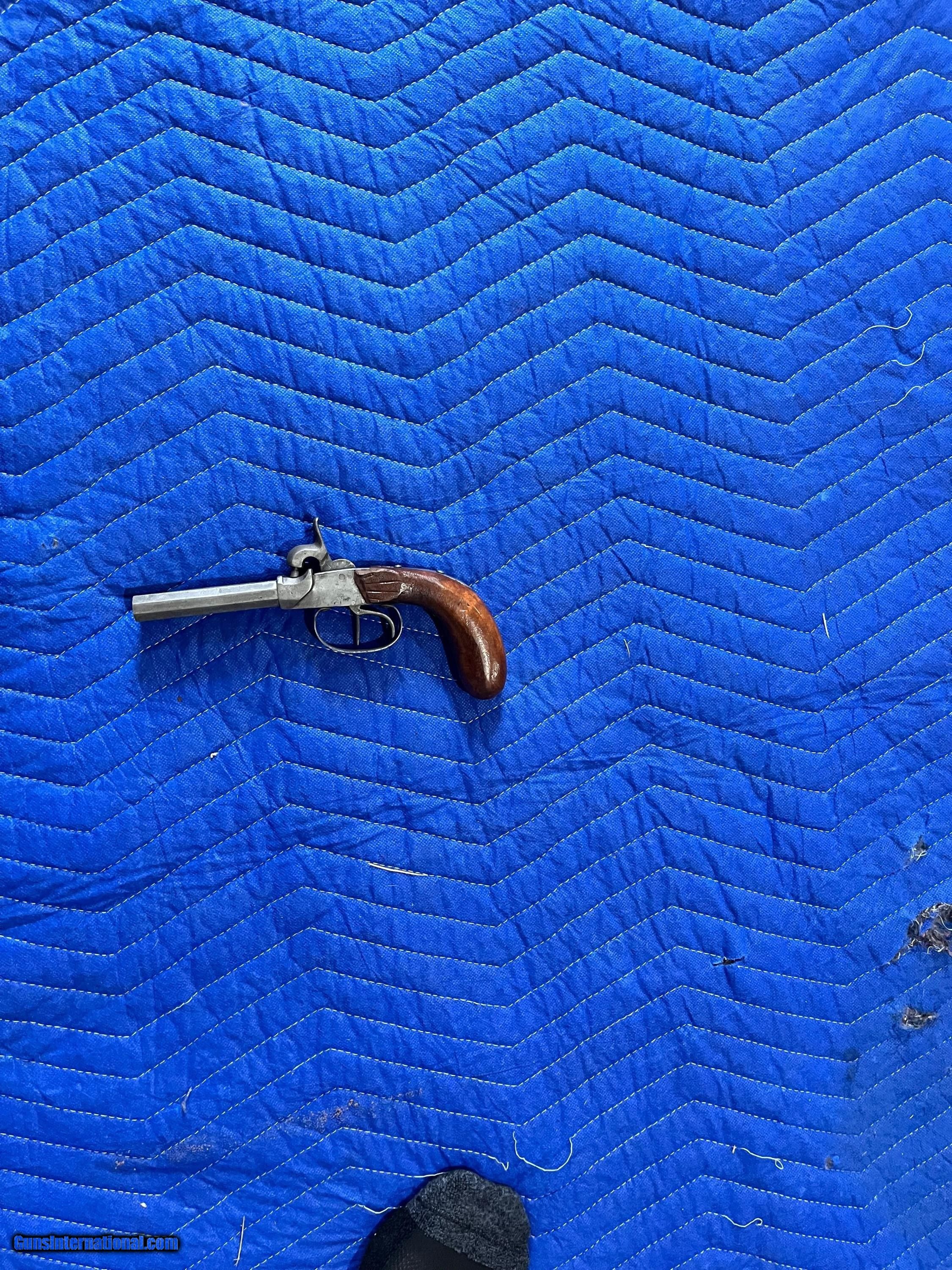 Description: Original Victorian Era Double barrel pocket percussion pistol, circa 1840. serial number 85 all matching hex smooth bore barrel serial number 7841,both are matching. Several proof marks present Action is tight, ammunition type: lead ball powder with percussion cap. Bore diameter .39 condition of this firearm is very good. SOLD Antique: Yes |